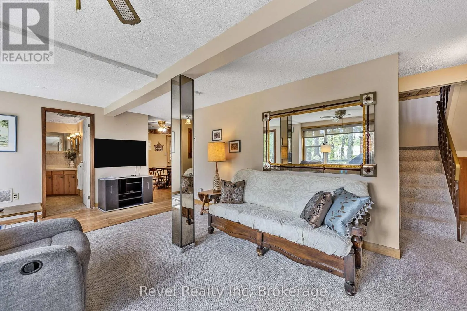 Cross Streets: TBRN / Desroches. ** Directions: Lafontaine Road W to left on TBRN to Desroches. Offered for the first time, this charming year-round home or cottage captures the timeless appeal of Lafontaine living. Tucked away on a quiet street in one of the area's most desirable communities, it sits on a beautifully landscaped, gently rolling lot surrounded by mature trees and natural serenity. Step outside and enjoy multiple walkouts to spacious decks, ideal for morning coffee, family gatherings, or peaceful evenings beneath the stars. Inside, the home offers 3 bedrooms, 2 full bathrooms, and a warm, classic layout designed for relaxed, easy living. A double garage with inside entry, paved driveway, and breezeway connecting indoor and outdoor spaces add both comfort and convenience. Well-maintained and thoughtfully cared for, this inviting property is equally suited for full-time living or weekend escapes. The location is unbeatable - just a short stroll to public beach access on Georgian Bay and minutes from Lafontaine Beach Park, with its sandy shoreline and family-friendly playground. Enjoy local favourites like Tiny Treats, Wendy B's, and La Baguette within a 3-minute drive, or head to the charming waterfront towns of Penetanguishene and Midland for full amenities less than 20 minutes away. Need to stay connected? Bell high-speed internet is available. Whether you're ready to start a new chapter or continue a legacy of lakeside living, 31 Desroches Trail is ready to welcome you home. (id:27476)