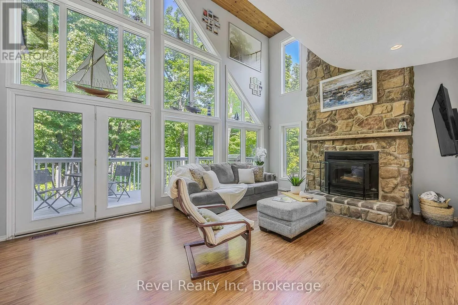 Cross Streets: CHAMPLAIN ROAD TO ONEIDA, LEFT ON MUSQUAKE COURT. ** Directions: Robert Street W to Champlain to Oneida to Musquake. **You'll want to keep a spare set of keys for the kids and grandkids - because once they experience this lifestyle, they'll be visiting often.** Charming Viceroy home nestled in the heart of nature, just a short stroll from the pristine public beaches of Georgian Bay. Designed for those seeking peace, space, and connection, this 5-bedroom, 4-bathroom home offers the ideal retreat for retirees, families, or professionals looking to work from home with Bell Fibe high-speed internet.Built in 2008, the main living area features an open-concept kitchen, dining room, and great room with soaring cathedral ceilings and expansive windows that fill the space with natural light. A wood-burning stone clad fireplace centers the room, creating a warm and inviting atmosphere for cozy evenings after a day outdoors. Laminate, and ceramic flooring throughout means low-maintenance living with no carpet to look after.The fully finished basement provides additional room to spread out, complete with a spacious family room, bar and entertainment zone, an additional bedroom, and a full bathroom - perfect for hosting extended family comfortably. A walkout leads to the large, fully fenced backyard featuring a patio and firepit, offering the ideal setting for morning coffee, summer barbecues, or quiet evenings under the stars.Situated just north of the GTA, this location offers a serene, nature-rich lifestyle with convenience still close by. From waterfront walking trails and beach parks only a five-minute walk away, to Awenda Provincial Park, nearby marinas, local restaurants, and shops just a short drive, everything you need is within reach.Whether welcoming family for holidays, enjoying peaceful days by the water, or savoring the calm of forested surroundings, 10 Musquake Court offers the space, comfort, and setting to slow down, breathe deeper, and truly enjoy life. (id:27476)