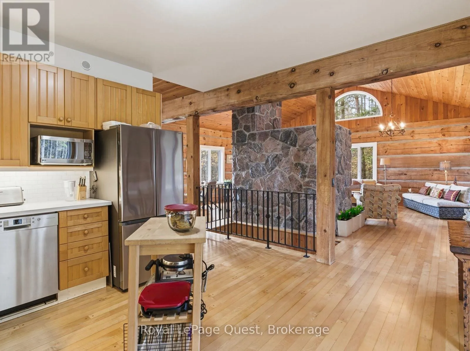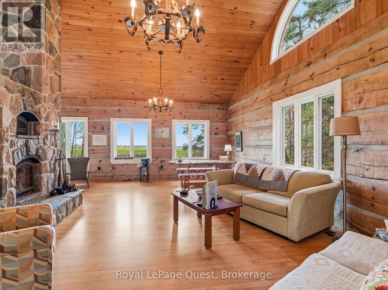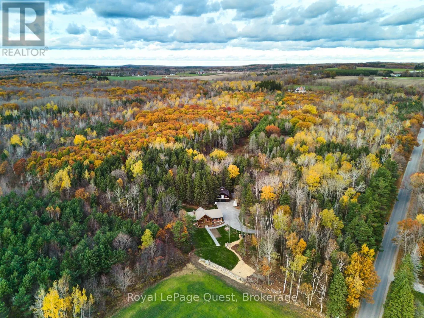 Cross Streets: Simcoe County Rd 6 and CON 14. ** Directions: Going North on Simcoe County Rd 6, turn left onto CON 14 W. After 1km, the property is on your right-hand side. The house is hidden by trees. Only enter the property by appointment. Custom home on 50.6 acres +/- with stunning views of Georgian Bay, farm land, and Blue Mountain seen from the living room, primary bedroom, and covered porch. The home offers privacy from the road, the convenience of a wrap-around driveway, and finished garage/shop.10 minute drive to all major shopping in the area and a three minute drive to the sandy beach at the bottom of Con 14 W. Note: The treed acreage is part of the Ontario managed forest tax incentive program. Also, one of the bedrooms was converted into a large walk-in closet for the primary, which can be changed back if the buyer wishes. The exterior of the home was just refinished (including new chinking) by an expert log home builder. Landscaping was also done this year and the view across the bay has been opened up. Come see this beauty! (id:27476)