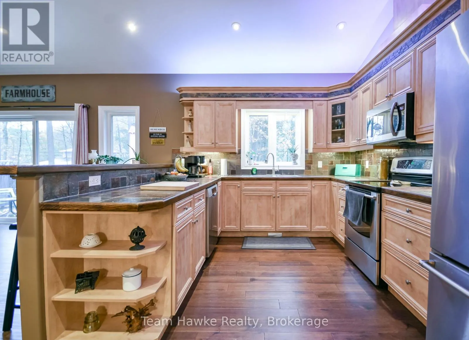 Cross Streets: Desroches Trail + Tiny Beaches RD N. ** Directions: Concession RD 16 - Tiny Beaches - Desroches Trail. Located in the peaceful community of Tiny Township, this spacious 6-bedroom, 3-bath home offers an excellent opportunity for families or those looking for extra space in a quiet setting. The bright, open-concept main level features a large kitchen with vaulted ceilings and plenty of natural light, creating a warm and inviting atmosphere. The comfortable layout includes a main floor master suite, ideal for convenience and privacy, while the walkout basement offers great in-law potential or additional living space to suit your needs. A double car garage with inside entry provides added functionality for everyday living. Just a short walk to the water and minutes from Barrie and HWY 400, this property allows you to enjoy the relaxed lifestyle Tiny Township is known for, with beautiful beaches, friendly neighbours, and plenty of outdoor recreation nearby. Whether you're looking for a family home or a getaway near the lake, this property is full of potential. (id:27476)