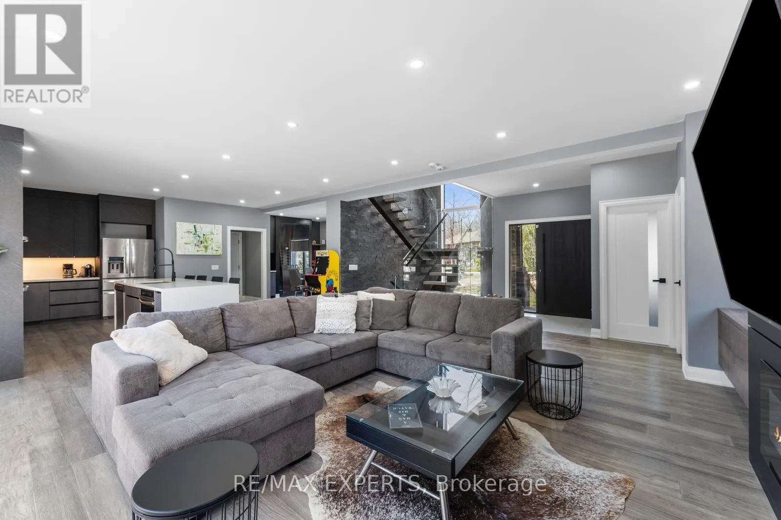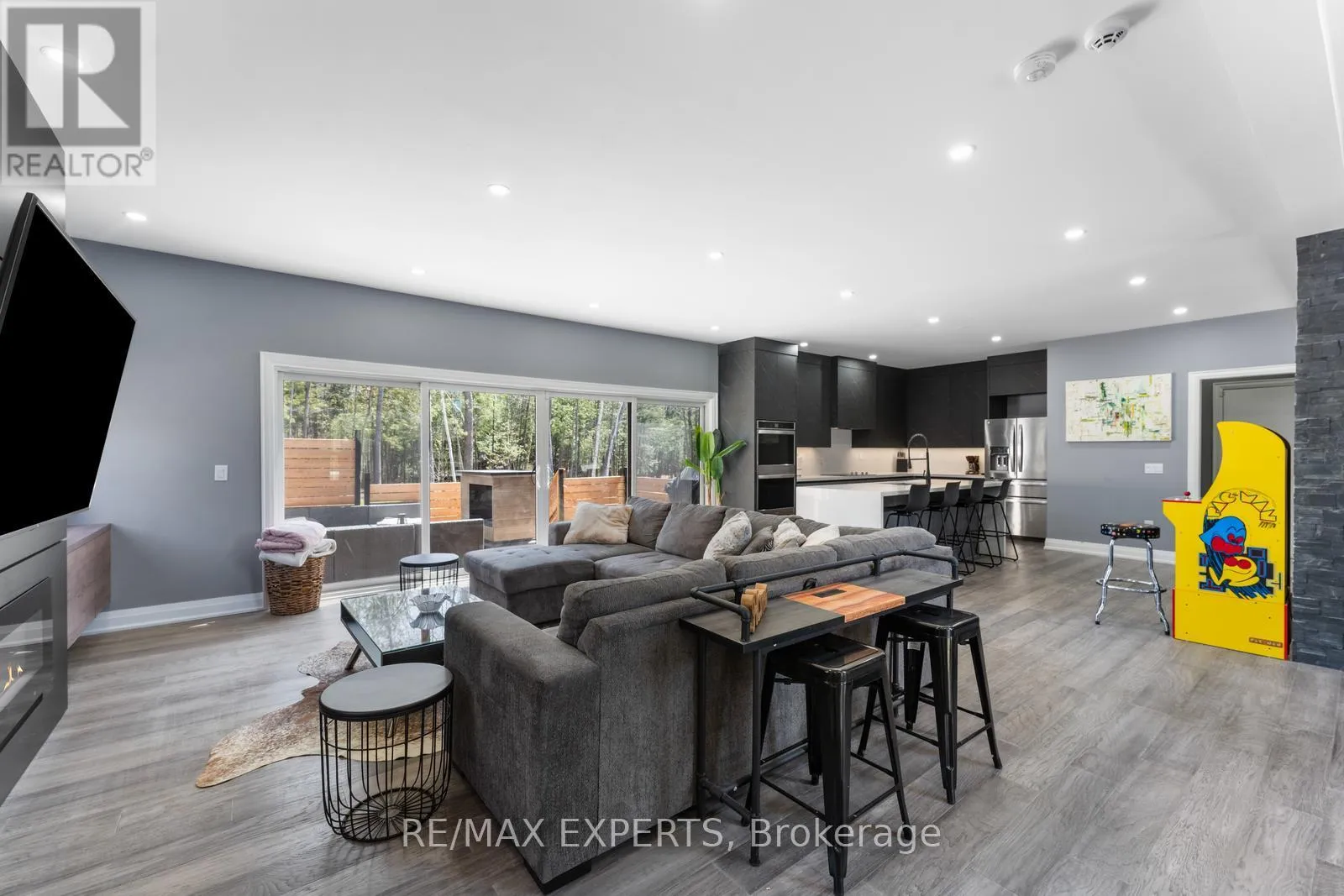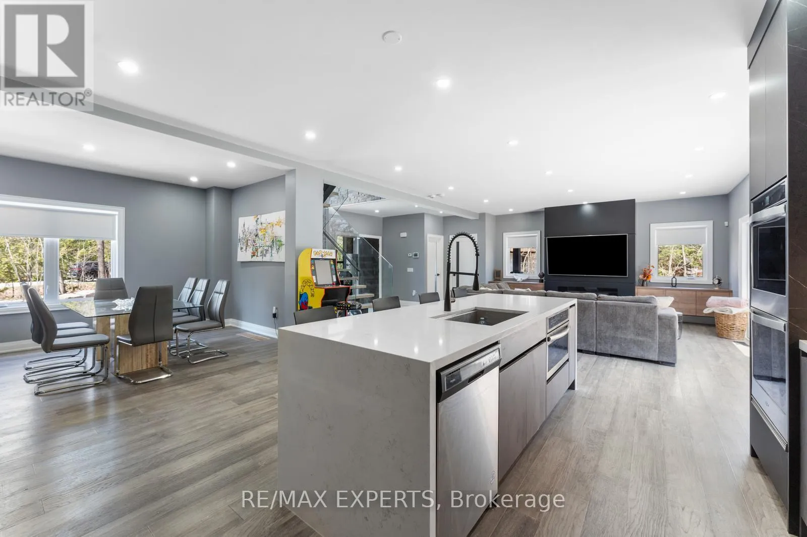 Champlain Rd and Joliet Cres Welcome to your lakeside retreat, where modern sophistication meets timeless elegance. Nestled in the heart of Tiny Township, this stunning 5-bedroom home offers deeded access to private beaches, scenic park trails, and the warmth of a vibrant community.Inside, natural light floods the living room through expansive sliding glass doors that open to a spacious backyard deck ideal for entertaining or unwinding under the stars. The gourmet kitchen is a true centerpiece, boasting a dramatic waterfall quartz island, premium stainless steel appliances, and custom cabinetry. A dedicated dining room with a bespoke wine cellar and built-in features makes hosting unforgettable gatherings effortless.The show-stopping glass staircase, framed by a soaring two-storey window, leads to the private quarters. The primary suite is a haven of light and luxury, with oversized windows, a spa-inspired ensuite featuring a double rain shower, and a grand walk-in closet awaiting your personal design. Four additional bedrooms offer ample space, beautiful views, and elevated finishes throughout.Set on an oversized lot, the property offers unmatched outdoor living with a sprawling deckperfect for summer dining, sunset views, and relaxing in nature. With Association approval, you may also add a private dock, offering direct access to the water and the ultimate lakeside lifestyle. For added convenience, furnishings are available for purchase, making this home move-in ready and effortlessly stylish. (id:27476)