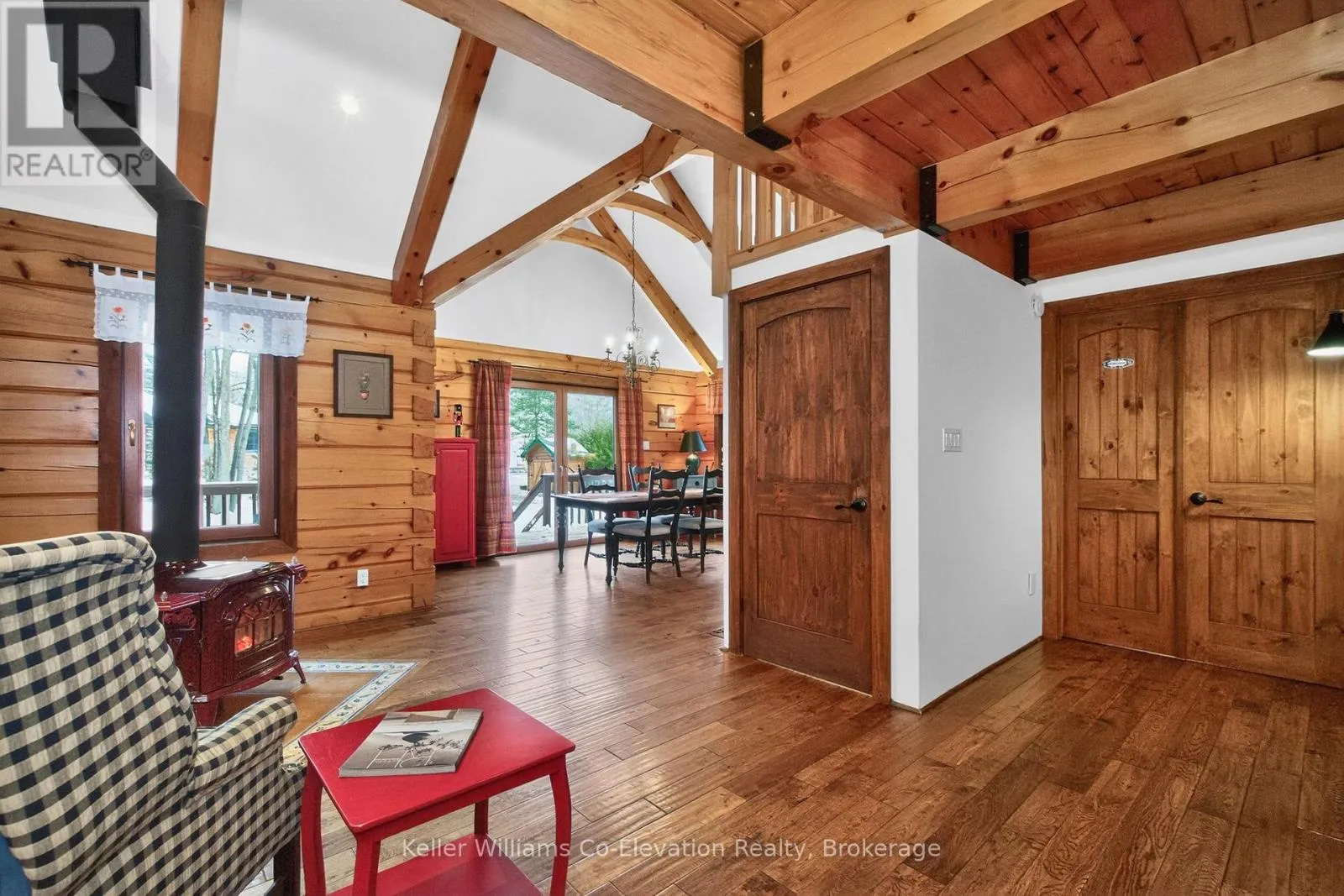 Cross Streets: Concession 17 W/Tiny Beaches Rd N. ** Directions: County Rd 6 N to Concession 17 W, R on Tiny Beaches Road N, L on Crown Crt. Welcome home to The Tiny Beaches: Your dream four season escape on the shores of Georgian Bay. This one of a kind custom built White Pine Log Home blends the charm of a cottage with the amenities of the city and has direct access to a fabulous private beach out your back door - reserved for members only; offering the utmost seclusion and privacy. Enjoy a serene lifestyle with easy access to water activities, exclusive walking trails, and the natural beauty and legendary sunsets of Georgian Bay with access to some of Georgian Bay's most desirable private shoreline. This custom home features an open-concept layout with soaring vaulted ceilings, exposed beams and warm wood finishes throughout. The array of windows seamlessly blend the inside and outside natural beauty of the home and property. The home was built in 2008 with generational longevity in mind boasting a main floor primary bedroom, a spacious loft bedroom, and a finished lower level with a rec room that provides space for additional sleeping accommodations/expansion if needed. The home itself is extremely well built and insulated and efficient from a level of comfort year round including forced air heating and cooling, a free standing wood stove, gas fireplace in the main living area, radiant in-floor heating in the lower-level bathroom, hot water on demand, a generator panel, 200 AMP service and European-style windows and doors for peace of mind/additional security. The other star of the property is the detached 32' x 18' garage with 9ft ceilings and a finished loft that was added in 2019. An annual association fee of $150 grants access to 4 private sandy beaches, waterfront parks and boat launch. Discover the lifestyle that awaits on the shores of Georgian Bay! This home offers exceptional value and abundant potential in an unbeatable location. See for yourself all this property has to offer. High Speed Internet available at the property. Owners are very accommodating on closing dates. Shows 10/10. (id:27476)