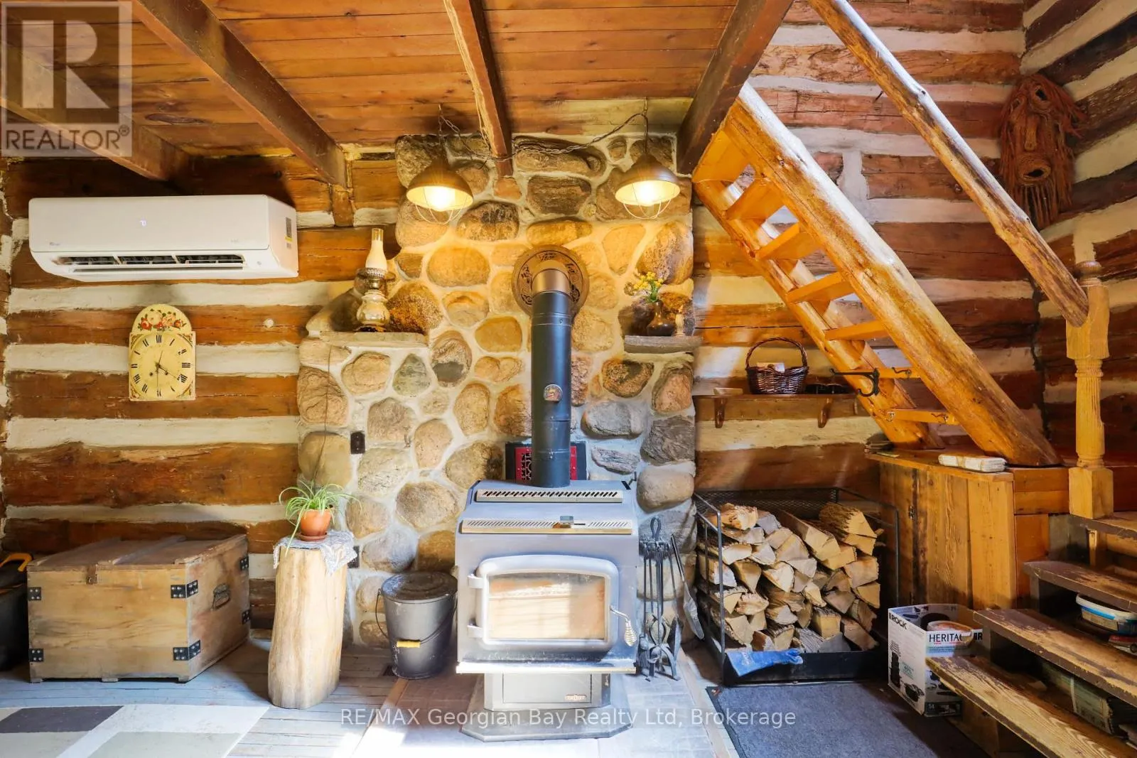 Cross Streets: Concession 18. ** Directions: Hwy 93 to Balm Beach Rd to County Rd 6 to Concession 17 to Thunder Beach Rd to Concession 18 to Cedar Point Rd - Sign On. Tucked away on a secluded 1.2-acre lot, this one-of-a-kind log home offers the perfect blend of rustic charm and peaceful living. If you're seeking space, privacy, and potential, look no further. Inside, you'll find a warm and inviting layout featuring a kitchen, cozy living room with fireplace, 3 bedrooms, and 2 bathrooms. Whether you're enjoying quiet nights in or hosting guests, this home has the space and comfort to accommodate your lifestyle. Outside, a large shop/garage provides plenty of room for hobbies and storage. Bonus: This property also generates extra income from a new Rogers tower, inquire for more details. Located in a serene setting, this is a rare opportunity to own a private retreat with both character and income potential. Don't miss out - call today to learn more! (id:27476)