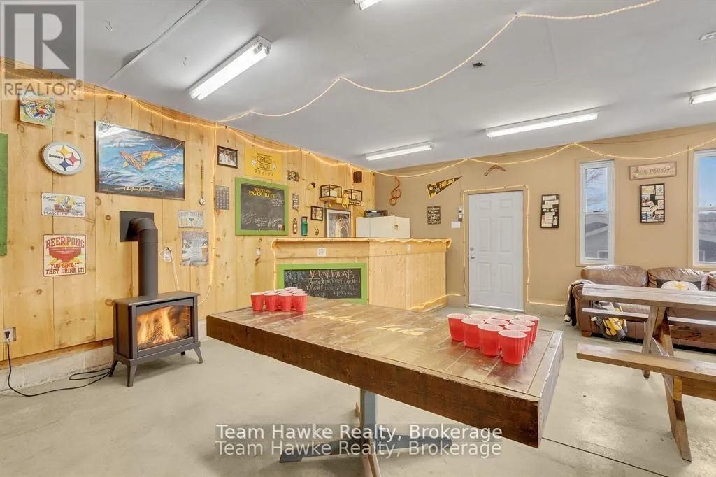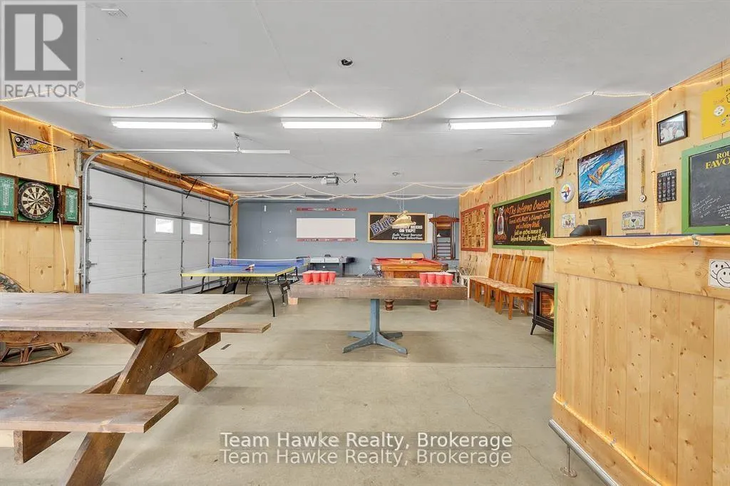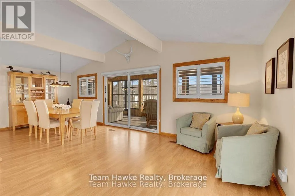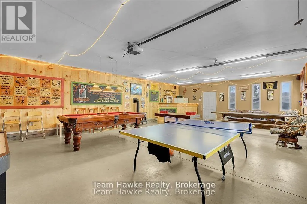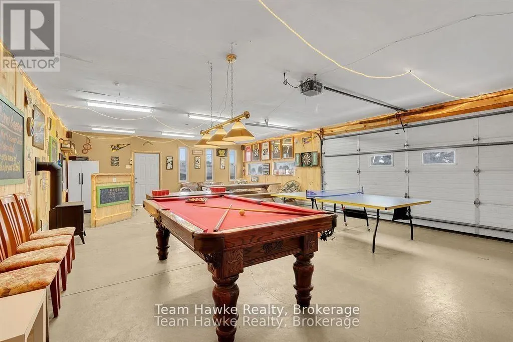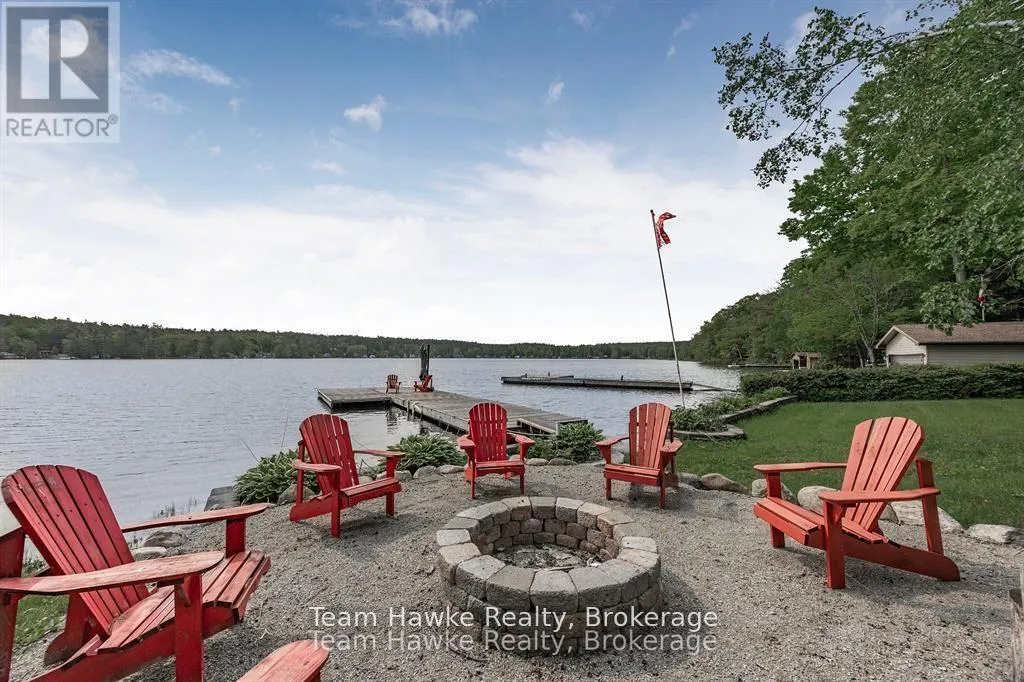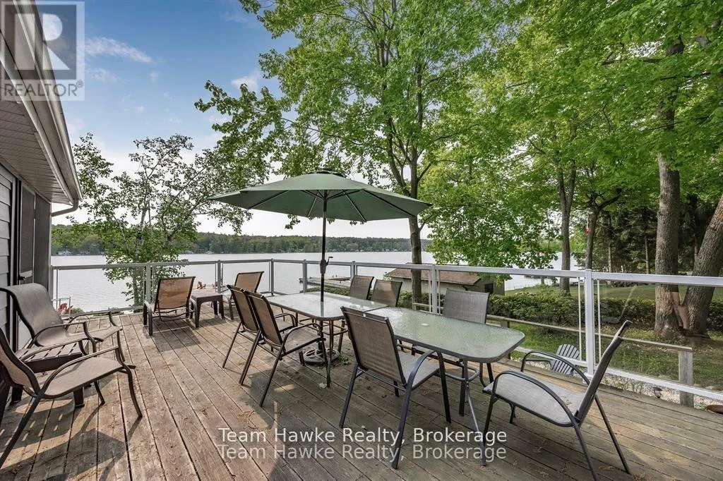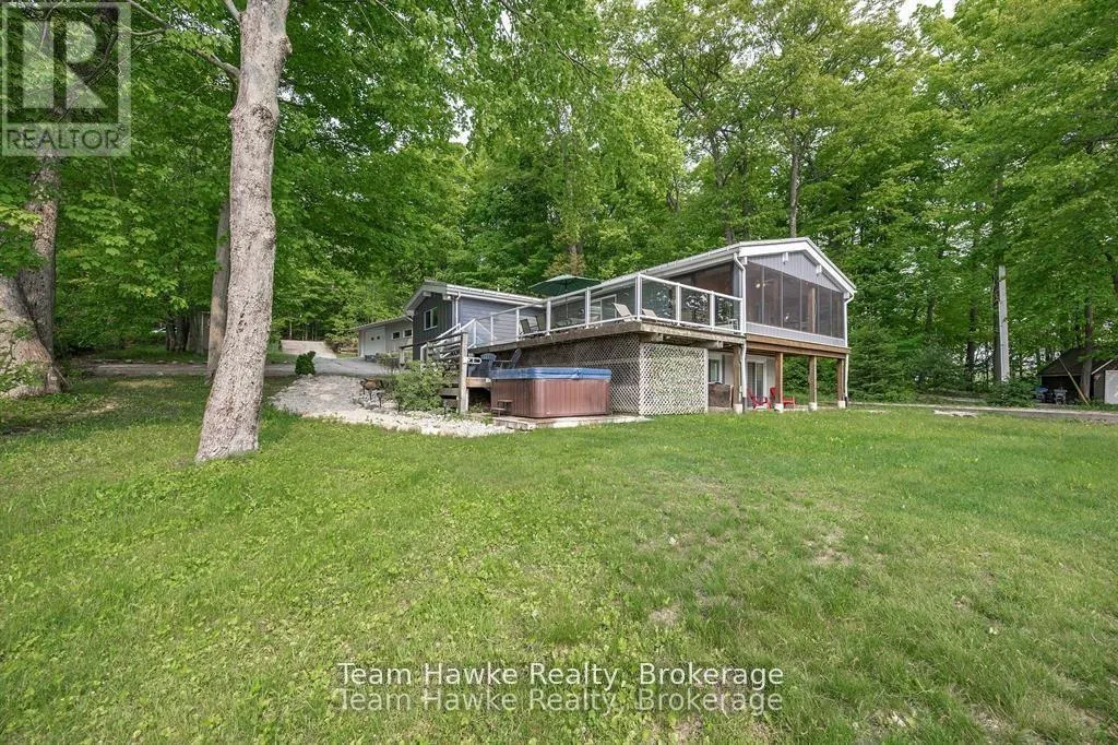 Timcourt Drive & Awenda Park Road Escape the city and embrace lakeside living! Located 15 minutes from Penetanguishene and under 2 hours from the GTA, this exceptional four-season lakefront home is nestled on a beautifully landscaped 3/4 acre lot with hundreds of feet of private shoreline. The calm, swimmable waters and shallow sandy entry create warmer temperatures that are ideal for families and swimming; a highly sought-after feature compared to larger, busier lakes. Offering just under 2,400 square feet of finished living space, this spacious and thoughtfully designed home features 3 bedrooms and 3 bathrooms, perfectly suited for full-time living or a luxury recreational retreat. The main-floor primary suite includes a private ensuite and custom built-in wardrobes, while the open-concept living and dining areas flow seamlessly into an enclosed, lake-facing sunroom with southeastern exposure - the perfect place to enjoy morning light and lake breezes. Sunroom windows can be removed for summer use, with screens remaining in place for convenience. The kitchen offers generous counter space, ample cabinetry, and a built-in dishwasher, making it ideal for entertaining family and guests. The walkout basement features an additional bedroom and two versatile bonus rooms, perfect for guests, a home gym, office, or hobby area. Outdoor living here is equally impressive. Relax in the hot tub, gather around the fire pit, or enjoy games on the bocce ball court, or horseshoe pits located on the point. The fully insulated and heated detached double garage (approximately 800 sq ft) is an entertainer's dream, complete with a bar, table games and lounge, making it the ultimate year-round hangout space. Additional highlights include a private dock, large paved driveway, forced-air gas heating, and central air conditioning for year-round comfort. Best of all, this turnkey waterfront property is being sold fully furnished, simply bring your swimsuit and start enjoying lake life from day one. (id:27476)
