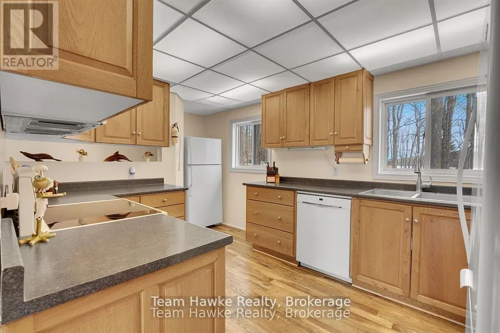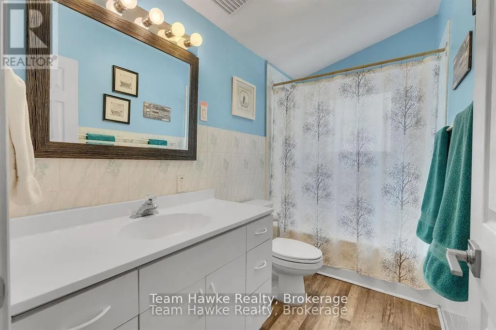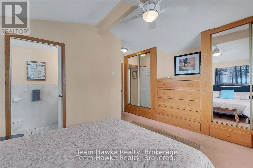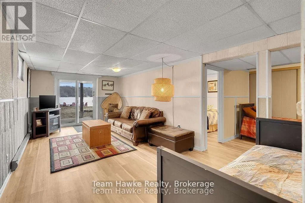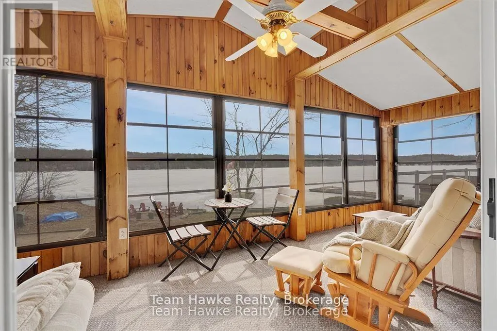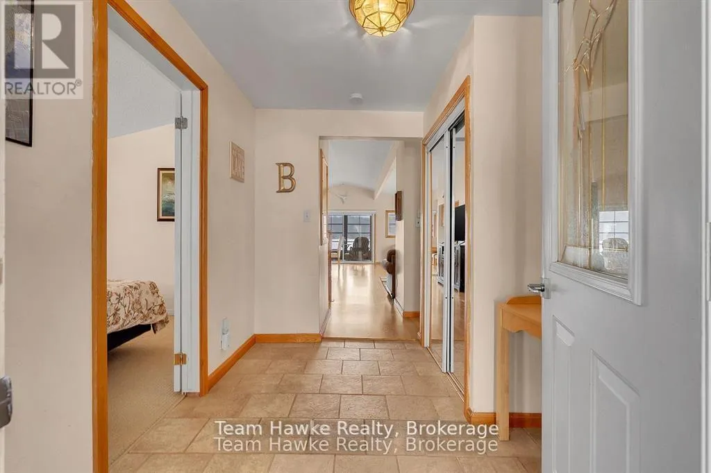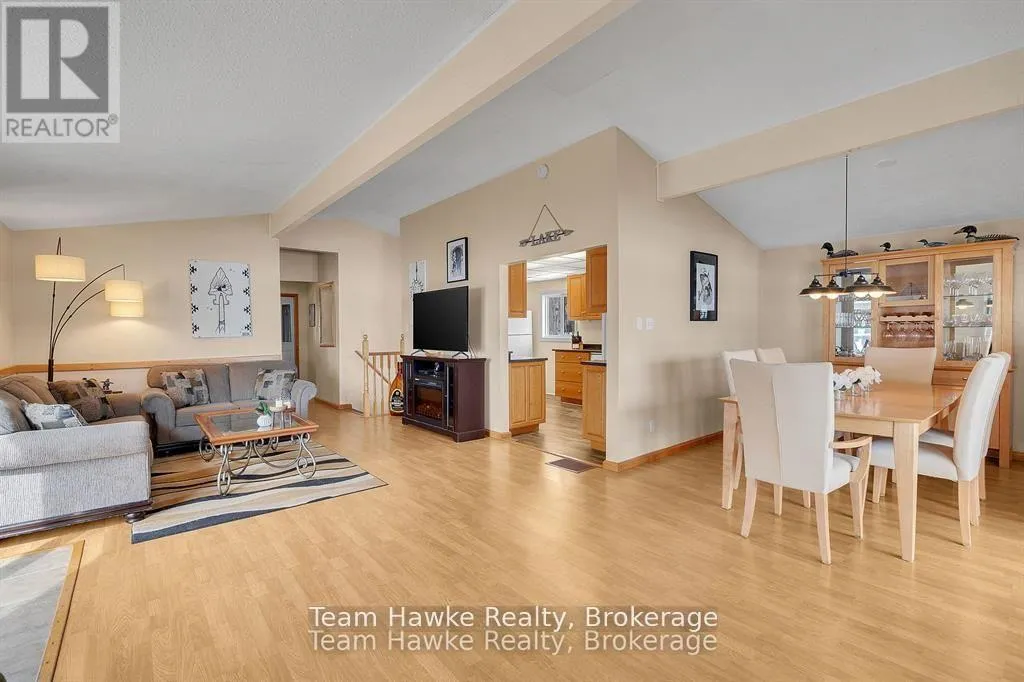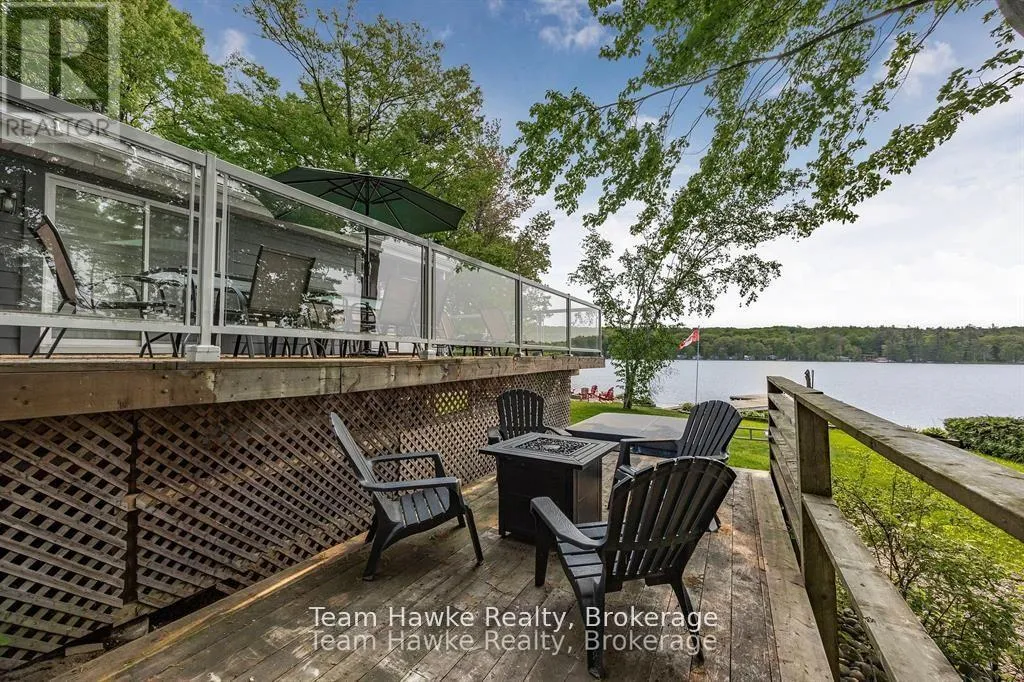 Timcourt Drive & Awenda Park Road Escape the city and embrace lakeside living! Located 15 minutes from Penetanguishene and under 2 hours from the GTA, this exceptional four-season lakefront home is nestled on a beautifully landscaped 3/4 acre lot with hundreds of feet of private shoreline. The calm, swimmable waters and shallow sandy entry create warmer temperatures that are ideal for families and swimming; a highly sought-after feature compared to larger, busier lakes. Offering just under 2,400 square feet of finished living space, this spacious and thoughtfully designed home features 3 bedrooms and 3 bathrooms, perfectly suited for full-time living or a luxury recreational retreat. The main-floor primary suite includes a private ensuite and custom built-in wardrobes, while the open-concept living and dining areas flow seamlessly into an enclosed, lake-facing sunroom with southeastern exposure - the perfect place to enjoy morning light and lake breezes. Sunroom windows can be removed for summer use, with screens remaining in place for convenience. The kitchen offers generous counter space, ample cabinetry, and a built-in dishwasher, making it ideal for entertaining family and guests. The walkout basement features an additional bedroom and two versatile bonus rooms, perfect for guests, a home gym, office, or hobby area. Outdoor living here is equally impressive. Relax in the hot tub, gather around the fire pit, or enjoy games on the bocce ball court, or horseshoe pits located on the point. The fully insulated and heated detached double garage (approximately 800 sq ft) is an entertainer's dream, complete with a bar, table games and lounge, making it the ultimate year-round hangout space. Additional highlights include a private dock, large paved driveway, forced-air gas heating, and central air conditioning for year-round comfort. Best of all, this turnkey waterfront property is being sold fully furnished, simply bring your swimsuit and start enjoying lake life from day one. (id:27476)