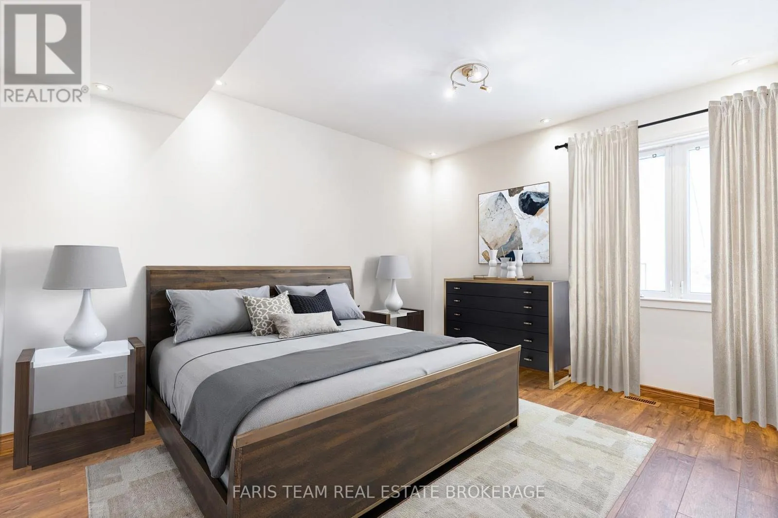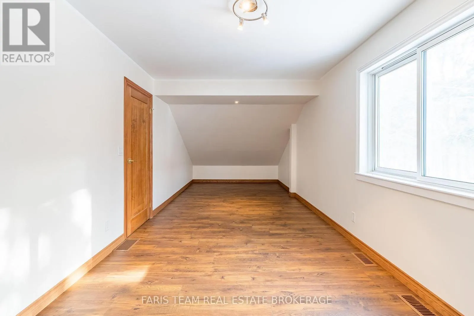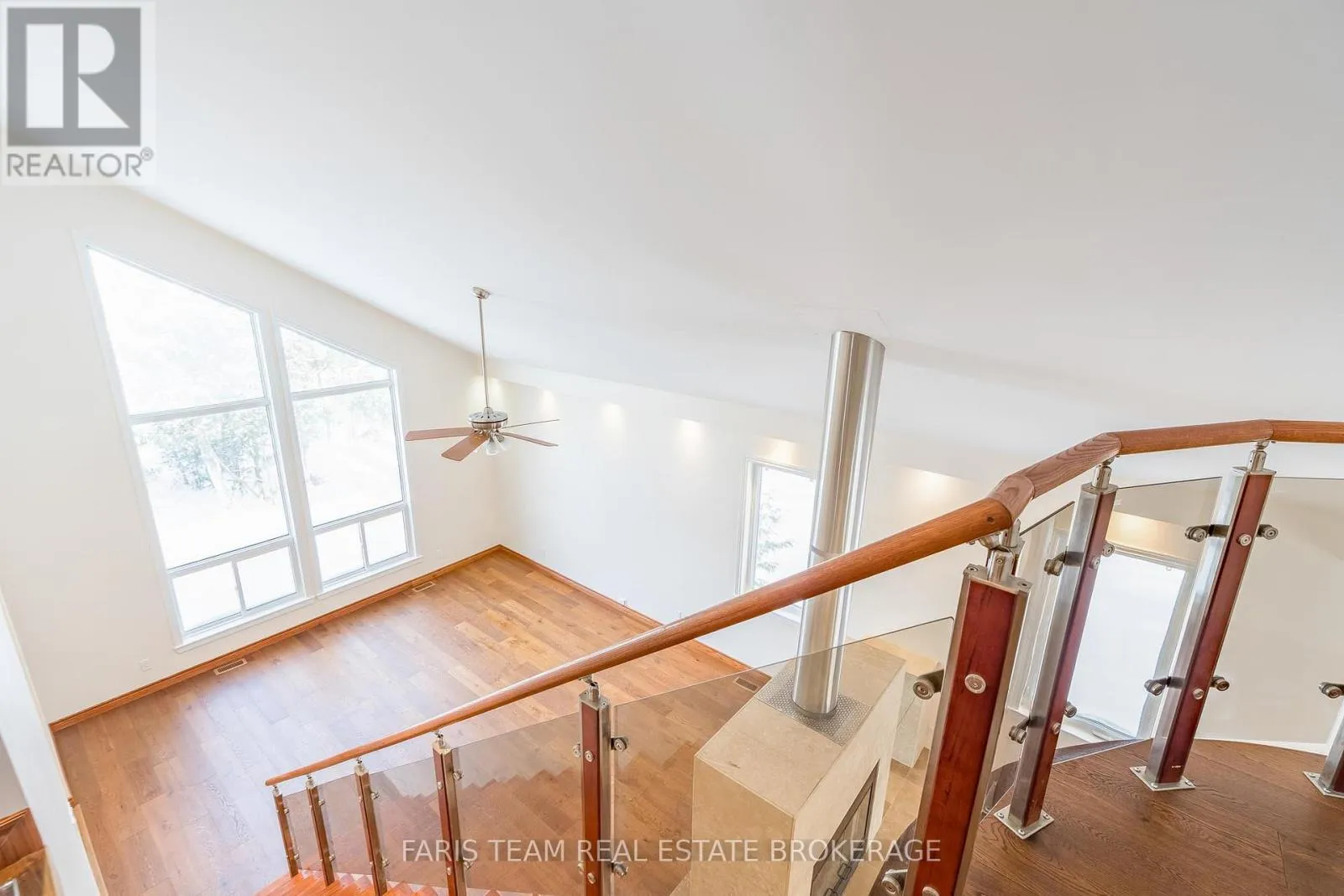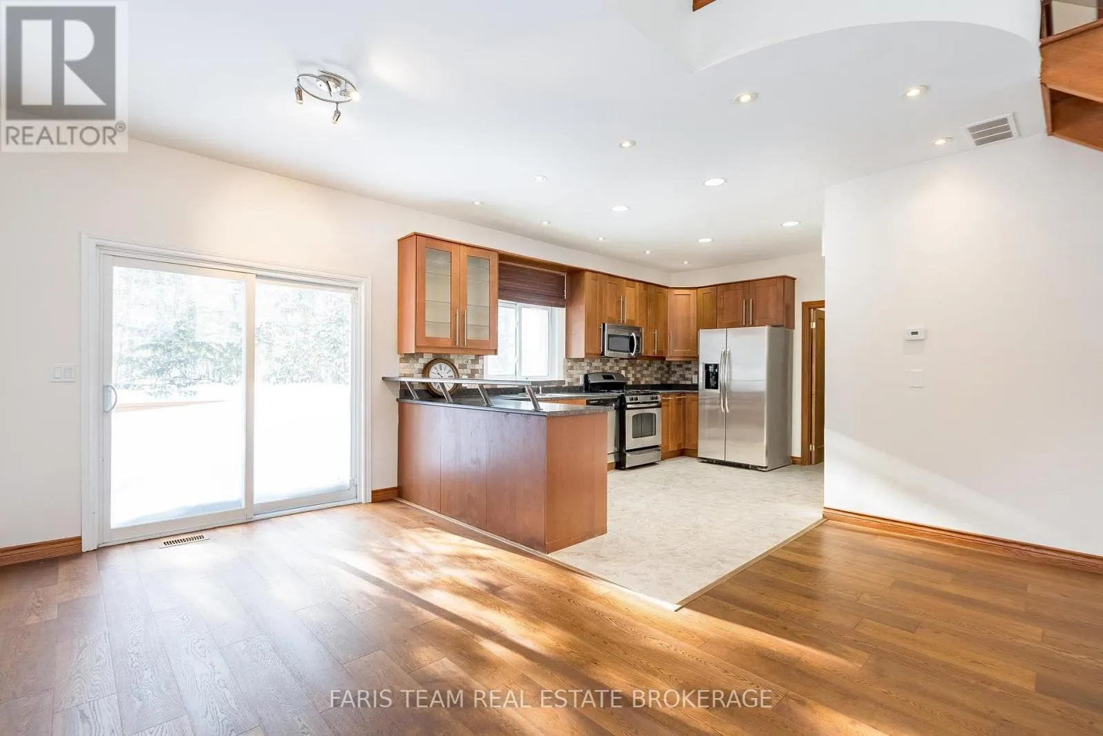 Tomahawk Cres/Champlain Rd Top 5 Reasons You Will Love This Home: 1) Custom-built and bathed in natural light, this welcoming four-season home offers a bright, open-concept design that invites easy living and effortless connection, all complemented by thoughtfully chosen, quality finishes throughout 2) The heart of the home features a beautifully appointed kitchen with premium stainless-steel appliances, recessed lights, a large window, and a breakfast bar, flowing seamlessly into the expansive living room highlighted by new engineered hardwood floors and a striking two-sided fireplace 3) Everyday living is elevated through mindful details, from the convenience of main level laundry to the indulgence of a private sauna, while the spacious primary bedroom offers a peaceful retreat with a walkout to the balcony, the perfect place to relax, breathe in the fresh air, and take in the surrounding views 4) Completely updated and truly turn-key, with a newer roof, furnace, flooring, interior doors, fresh paint, and refreshed outdoor spaces, including the deck, balcony, and porch 5) Set in a highly desirable neighbourhood just a short stroll to the lake and minutes from Awenda Provincial Park and several beautiful beaches. 1,853 fin.sq.ft. *Please note some images have been virtually staged to show the potential of the home. (id:27476)