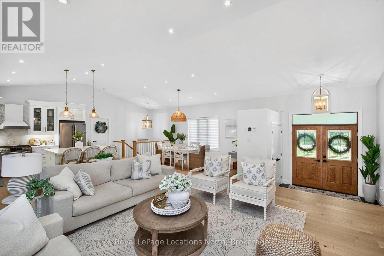 Cross Streets: Rue Jules Leger. ** Directions: Tiny Beaches Rd N to Rue Jules Leger to Pinecone. Welcome to Pinecone Ave, a quiet picturesque street in Tiny- where refined living meets the relaxed pace of life by Georgian Bay. This exceptional bungalow offers the perfect combination of modern craftsmanship, timeless style & practical design, making it an ideal choice for those seeking either a full-time residence or a peaceful retreat just minutes from the water. From the moment you step inside, you'll notice the attention to detail & quality finishes that set this home apart. Wide plank engineered hardwood floors extend across the open-concept main living space, creating a sense of warmth & continuity. At the heart of the home is a custom-designed kitchen featuring sleek quartz countertops, an oversized island with abundant storage & thoughtful design elements that make both everyday cooking & entertaining effortless. The kitchen seamlessly flows into the dining/living areas, where tall windows welcome natural light & a dramatic floor-to-ceiling fireplace serves as the inviting focal point of the room. Step outside to your tranquil backyard. The spacious deck is complemented by a large metal gazebo, offering the perfect spot for summer gatherings. The 3-car garage provides plenty of room for all your toys, while the full-height unfinished basement offers endless potential to design the space you've always imagined. & of course it's ICF construction. This property is more than just a house, it's a lifestyle. Located minutes from sandy beaches, scenic trails & peaceful parks, you'll have endless opportunities to enjoy the outdoors. Imagine days spent swimming, kayaking, or paddleboarding on the Bay, followed by evenings gathered around the fireplace or relaxing on the deck under the stars. With its seamless blend of modern comfort, low-maintenance living & proximity to everything that makes Tiny such a beloved community, this bungalow is a rare find. This coastal vibe bungalow is waiting for its next owner to enjoy all that Georgian Bay living has to offer!! (id:27476)