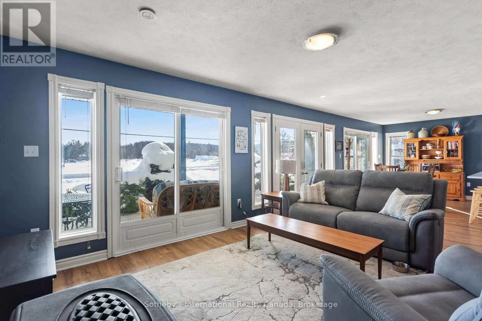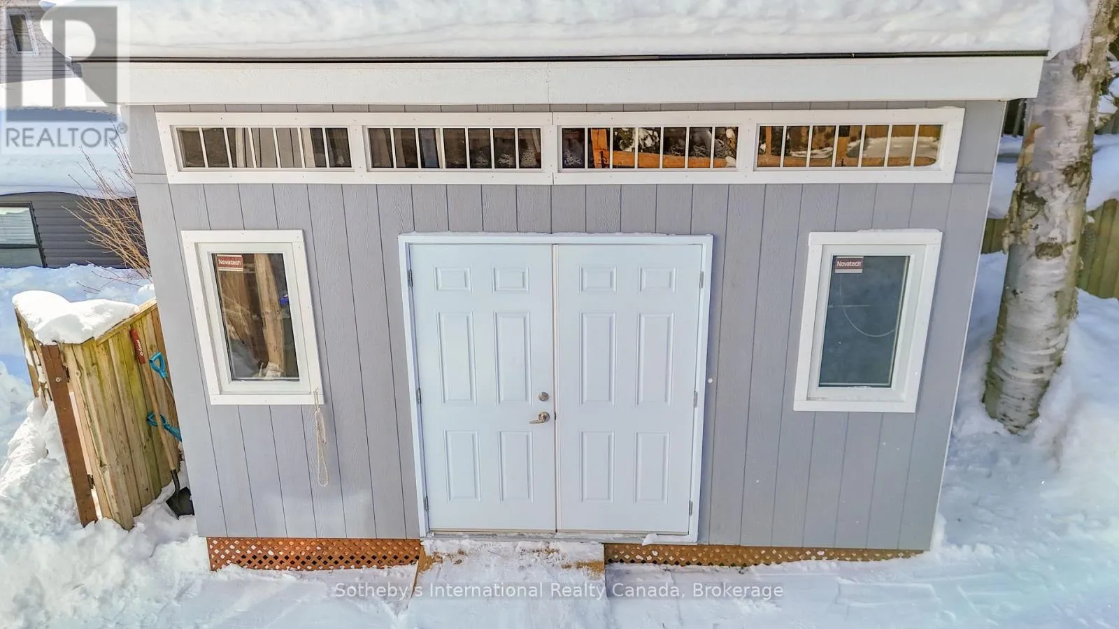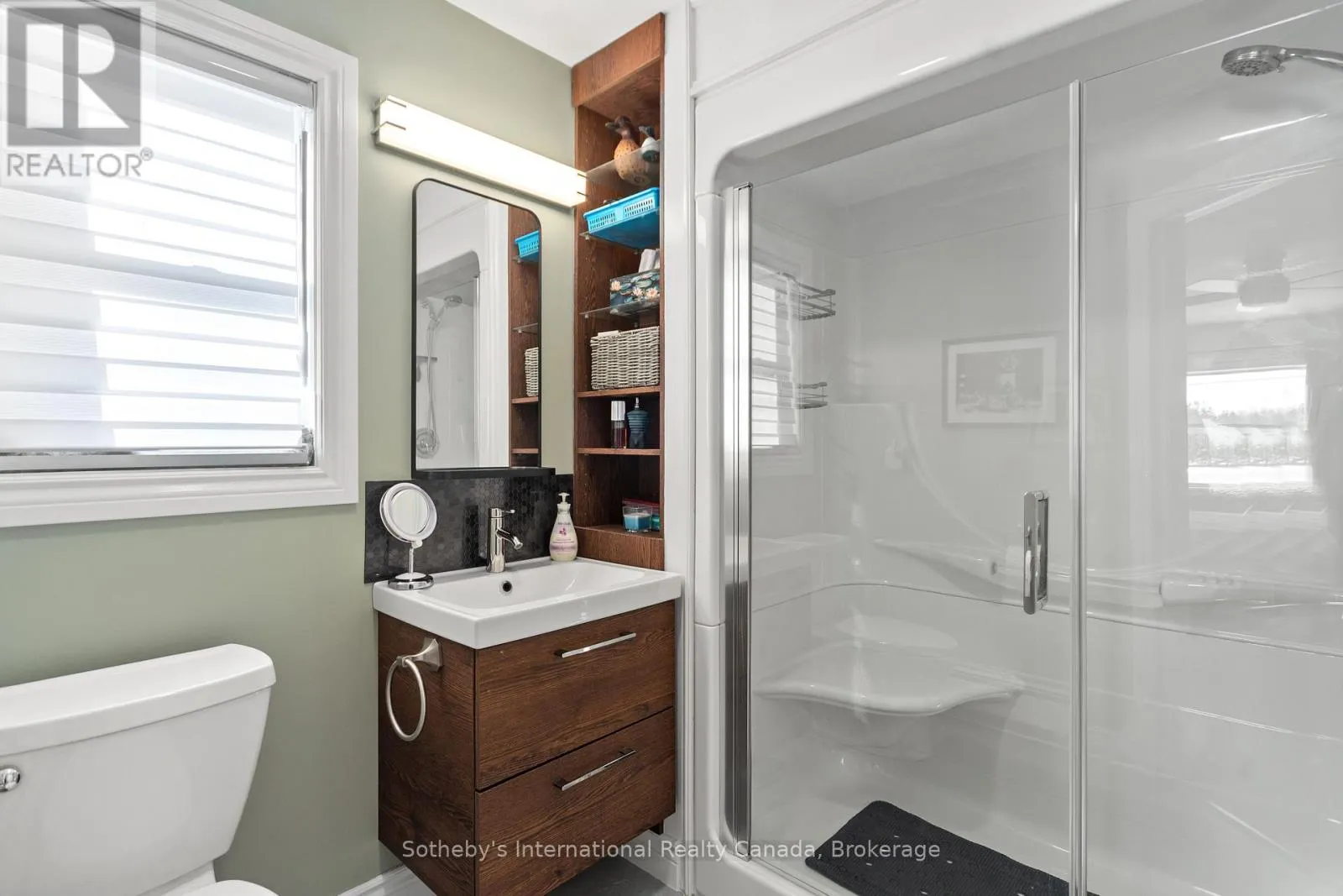 Cross Streets: Champlain Road , between York Street and Peek-a-Boo Trail - Sign on Property. ** Directions: Roberts St W. to Champlain Road to 604. Waterfront living on Georgian Bay with views from almost every room. This bright, well-designed home offers exceptional natural light and a layout ideal for both everyday living and entertaining. The kitchen features new quartz countertops, stainless steel appliances, and a large island. The living room includes a natural gas free-standing fireplace with a walkout to the front porch. A formal dining room, currently used as the primary bedroom, captures stunning water views, while a spacious rear foyer provides excellent storage and functionality. The 4-piece bathroom, utility room and a bedroom finish out the main floor. Upstairs are three bedrooms, including a primary with a private ensuite and a shared ensuite for the remaining two bedrooms. The upper level also offers a living space with panoramic lake views, a walkout to a balcony, and a kitchenette with new cabinets and counters. Abundant storage throughout with numerous closets. The backyard is fully fenced at the back and sides and features a hot tub under a pergola, multiple seating areas, and a large shed/workshop. Enjoy your own private dock and shallow water entry with direct access to the sparkling waters of Georgian Bay. This property is set up for entertaining in a year-round playground, offering the ideal backdrop for gatherings, relaxation, and outdoor adventure. Located just minutes from Penetanguishene and close to amenities, scenic mountain-bike routes, walking trails, and the expansive Awenda Provincial Park. Summer brings endless boating through the renowned 30,000 Islands, while winter offers exceptional snowmobiling with OFSC trails nearby. The fishing is excellent year-round, whether you're casting from the boat just offshore or setting up for ice fishing in the colder months. (id:27476)
