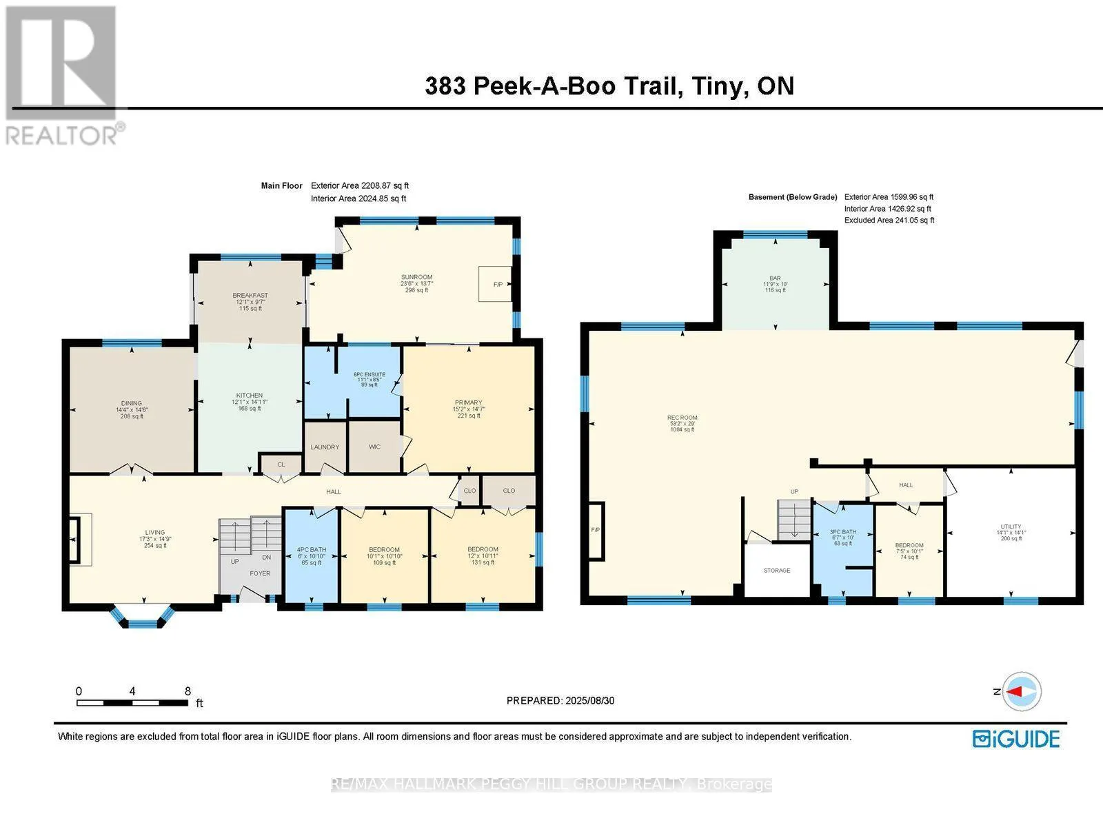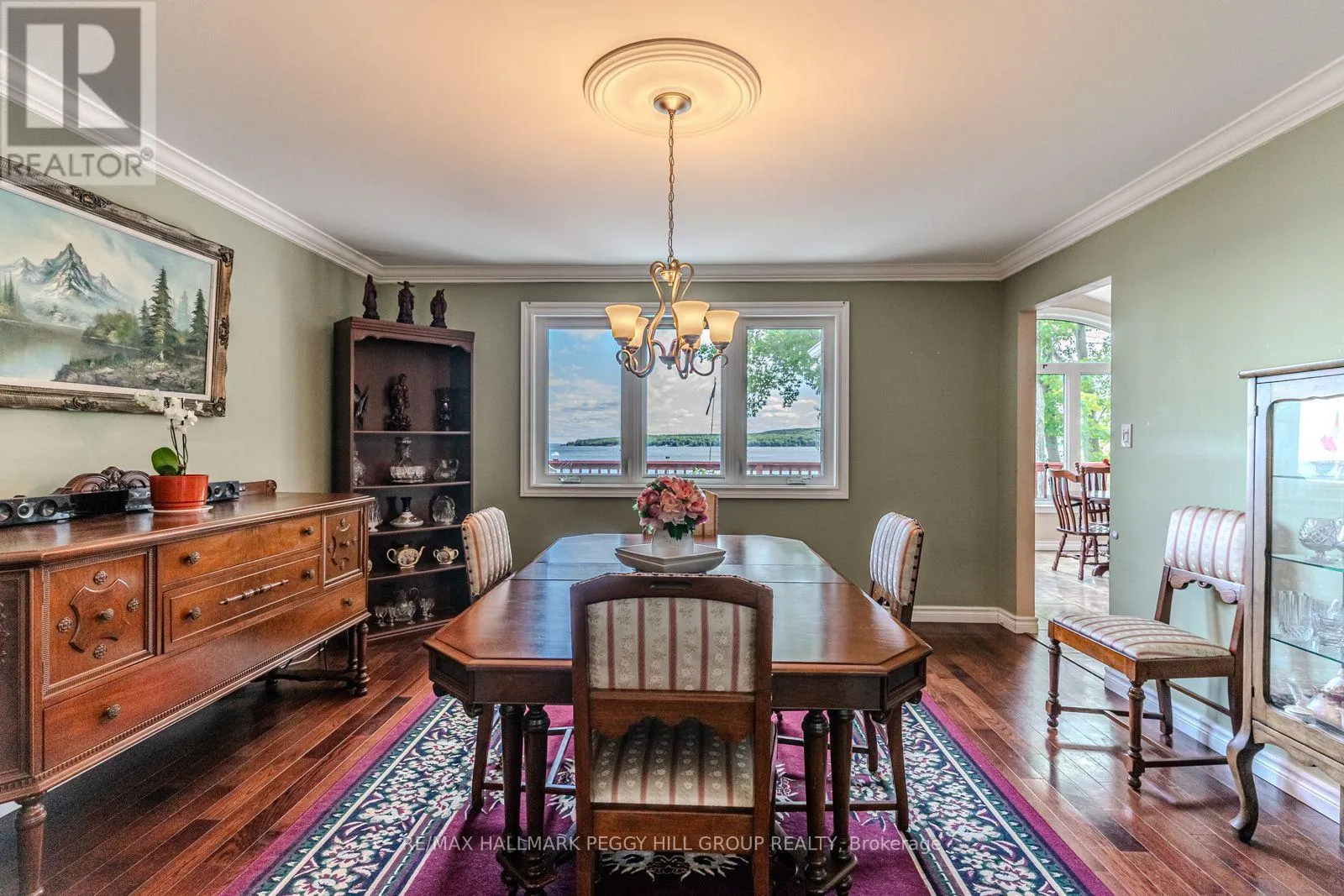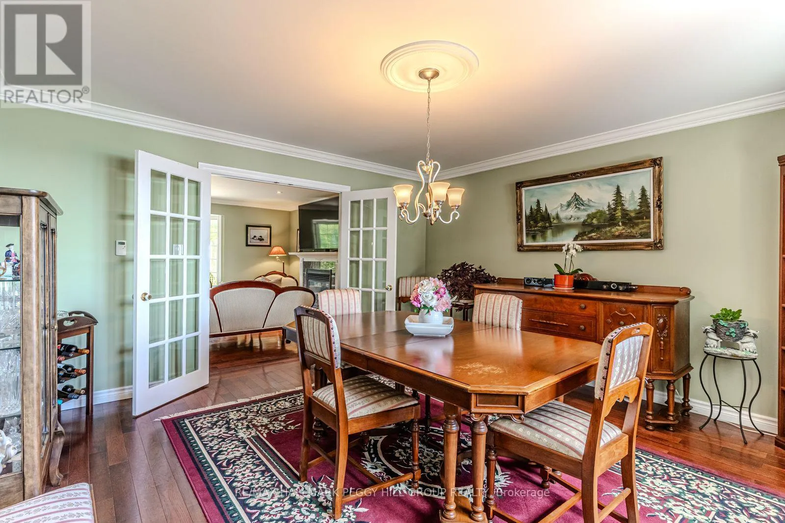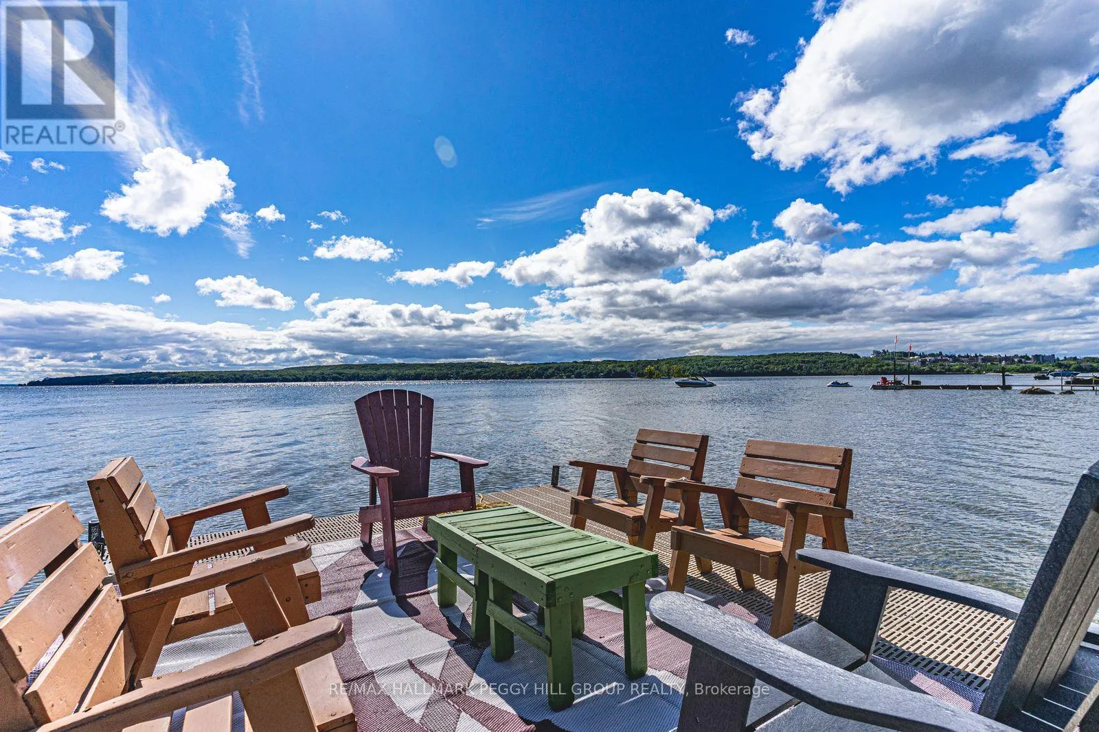 Cross Streets: Champlain Rd/Peek-A-Boo Trl. ** Directions: Concession Rd 16 E/Champlain Rd/Peek-A-Boo Trl. LUXURIOUS GEORGIAN BAY ESTATE WITH 83 FT OF SANDY SHORELINE, SECOND COTTAGE, DETACHED GARAGE & ALMOST HALF AN ACRE! 83 feet of Georgian Bay frontage with eastern exposure presents a private sandy beach with gradual entry, clear waters, and sunrise views that define the waterfront lifestyle. Set on nearly half an acre with a large back deck, the property is further enhanced by an expansive L-shaped dock with a bump-out that extends into the bay, offering an impressive setting for entertaining, lounging, and docking motorcraft. Located on a coveted cul-de-sac along sought-after Peek-A-Boo Trail and just steps from Tee Pee Point Park, the property delivers exclusivity and tranquillity while remaining approximately 10 minutes to local essentials and a short drive to Penetanguishene and Midland for expanded amenities. The primary residence introduces itself with a stately front entry, covered porch, manicured landscaping, and a detached two-car garage with six-car driveway parking. The kitchen is appointed with rich wood cabinetry topped with crown, granite counters, stainless steel appliances, and a built-in desk area. The living room features a bay window, crown moulding, fireplace, and French doors, while the spectacular sunroom boasts soaring ceilings, shiplap accents, pot lights, a dramatic fireplace, and a walkout. The primary bedroom highlights its own walkout to the sunroom, a walk-in closet, and a spa-like 6-piece ensuite. Extending the living space, the finished walkout basement showcases a massive rec room with a third fireplace, pot lights, and room for a pool table, along with a fourth bedroom and full bath, with the entire level opening directly to the yard and waterfront. A versatile second cottage with two bedrooms, a bathroom, a kitchen and a living area, and a private deck enhances the property's functionality for family and guests, while main floor laundry, in-floor radiant heating, central vac, and ERV/HRV systems add to the overall comfort. (id:27476)