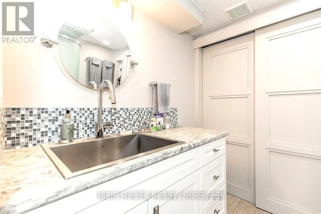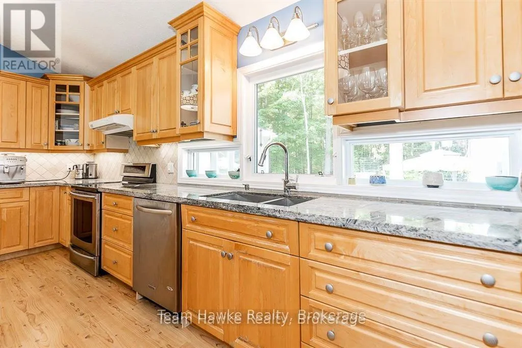 Cross Streets: Tiny Beaches Rd. S & Deanlea Blvd. ** Directions: Tiny Beaches Rd. S to Deanlea, R on Rosemary. Imagine walking 5 minutes to a private wide sandy beach in Deanlea Beach, Tiny Township. Your backyard looking onto a municipal forest. This spacious 4 bed, 3 bath bungalow is larger than it looks with almost 2,000 sq ft of living space on the main floor including the screened in porch. Renovations in 2014 have added a steel roof, new septic, double garage, primary suite wing, designer kitchen, screened in porch. It also included the lower level which has 2 bedrooms, a 3-piece bath, and a spacious games room. Plenty of room to host multigenerational gatherings. The large interlocking driveway fits 6 vehicles. An open concept kitchen with loads of storage and extensive granite counters and island is a cook's and entertainer's dream. Heated floors keep your feet toasty on chilly days. High speed fibre-optic internet makes it easy to work from home. Looking out from the kitchen and dining room is avista of low maintenance natural gardens, flagstone pathways and forest. Quality construction and finishes throughout. A dry stream riverbed traverses the flagstone path to the front door. Walking down to the beach for a stroll on the long sandy beach or to view the sunset, who could ask for more? Annual Deanlea Beach Association fee of $75.00. Annual municipal water fee of $1,114.00. (id:27476)
