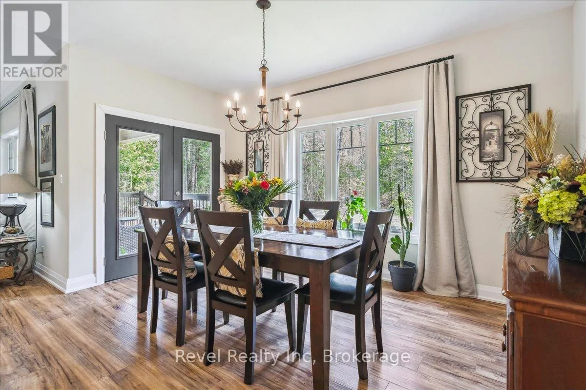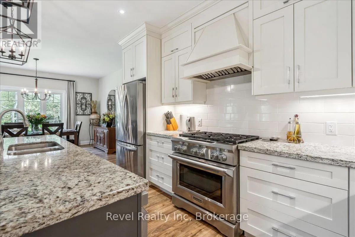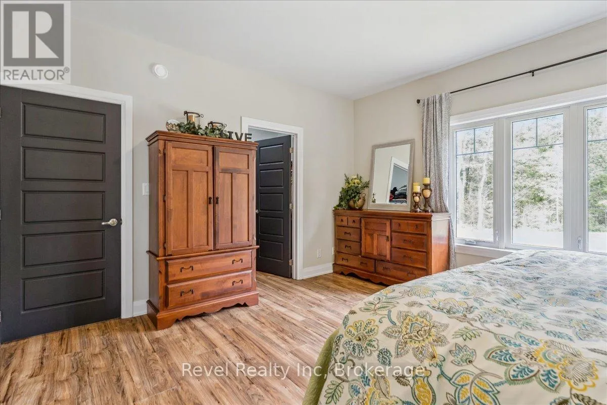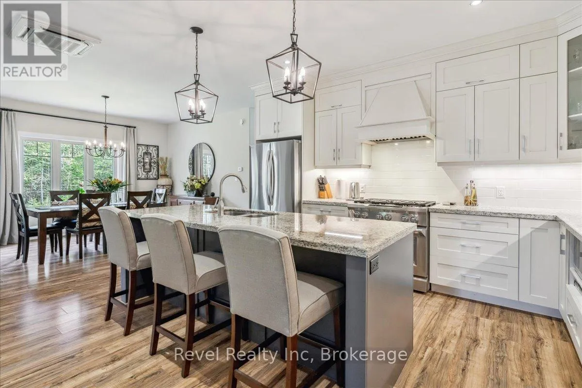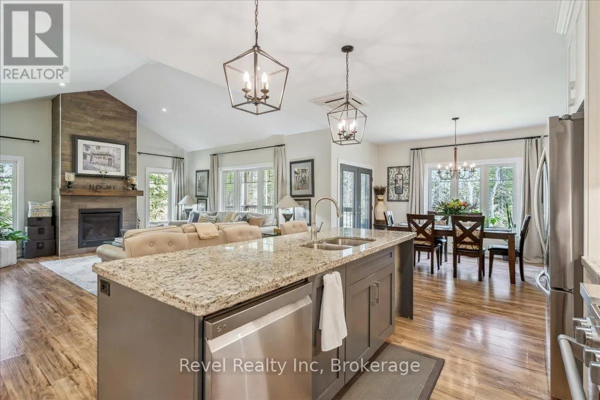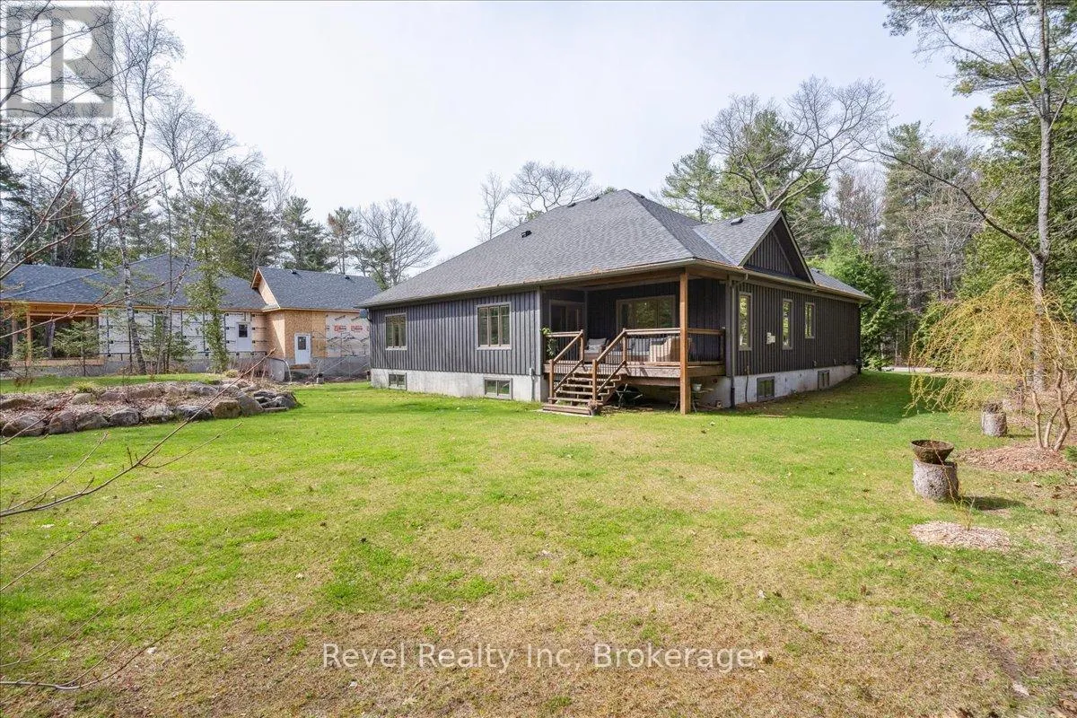 Cross Streets: Conc 18 W & Trout Lane. ** Directions: Conc 18 W to Trout Lane. Your Four-Season Escape Near Georgian Bay! Embrace relaxed living in a serene, nature-filled setting just a short walk from the sparkling shores of Georgian Bay. Here, you'll enjoy peaceful surroundings without sacrificing convenience - high-speed internet, charming local delis, and cozy restaurants are close by, while major retailers, theatres, museums, and historic attractions are only 20 minutes away. This nearly new modern ranch bungalow offers over 2,000 sq. ft. of beautifully finished main-floor space, including three generous bedrooms and two full bathrooms. The bright, full-height basement is ready for your vision, already roughed-in for a third bath. Comfort is built in with in-floor radiant heating on both levels, a welcoming gas fireplace in the great room, and discreet in-ceiling air conditioning for warm summer days - all naturally shaded by mature trees. Step outside to a thoughtfully landscaped yard with full irrigation and a private wooded backdrop, perfect for quiet evenings around the fire or relaxing on the covered deck. The open-concept kitchen is designed for gathering, featuring a large island, granite countertops, and premium appliances. A double-car garage with inside entry leads to a convenient main-floor laundry room, adding everyday practicality to this exceptional home. If you're seeking the perfect blend of nature, comfort, and modern ease, this is the lifestyle you've been waiting for. (id:27476)