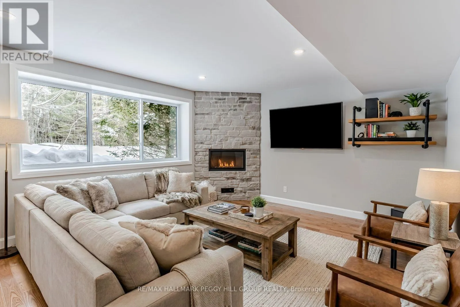 Cross Streets: Gardiner's Corner Rd/Marshall Rd. ** Directions: Hwy 93/Gardiner's Corner Rd/Marshall Rd. 6.85 ACRES, 595 FT OF RIVERFRONT & A FULLY REIMAGINED BUNGALOW WITH A MAJOR ADDITION & A DREAM SHOP! Set on 6.85 acres with 595 ft of shoreline along the Wye River, this extensively renovated bungalow with a recently completed addition delivers turnkey waterfront living with real privacy and finishes that feel thoughtfully chosen from top to bottom. A newer detached shop is a true standout with over 1,000 sq ft on the main level, a finished loft ideal for fitness or hobbies, radiant in-floor heating, a boiler system and WiFi battery backup garage door openers, complemented by a double attached garage with inside entry, openers, and a radiant in-floor heating rough-in. Board-and-batten with brick, timber post-and-beam detailing, expansive windows, and a wraparound covered deck with a vaulted wood-plank ceiling and integrated lighting bring architectural presence the moment you arrive. The interior is anchored by a great room with pot lights, a walkout to the deck and a linear natural gas fireplace with a wood mantel, flowing into a statement kitchen finished with sage green lower cabinetry, white uppers, glass cabinet inserts, quartz counters, a large island with seating, stainless steel appliances, subway tile backsplash, open shelving and a coffee bar. Designed as its own escape, the primary suite offers a walkout to the deck, a walk-in closet and a refined ensuite with a floating double vanity, heated floor, and an LED backlit mirror. The finished basement adds hardwood flooring, a separate entrance, a rec room with a stone-surround fireplace, a 4th bedroom, laundry, and a mudroom area. Outside, a firepit area, greenhouse and shed sit within the treed setting, while major upgrades, including a natural gas furnace and central air, an updated septic with a 4,500 L concrete tank, an owned instantaneous tankless hot water heater, 200 amp service, owned water softener and owned solar panels with premium MicroFIT income, bring long-term confidence to this #HomeToStay. (id:27476)