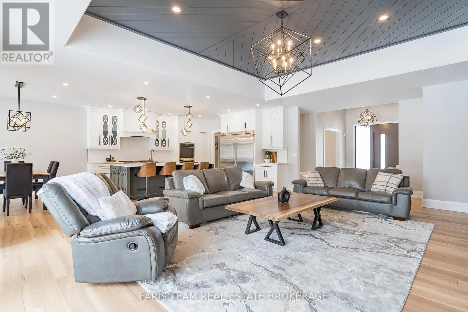 Concession Rd 5 W/Reynolds Rd Top 5 Reasons You Will Love This Home: 1) Rare offering in one of Wyevale's most coveted pockets, showcasing six bedrooms and five bathrooms with nearly 3,000 square feet on the main level and an impressive 5,771 square feet of finished living space throughout, complemented by a massive 1,200 square foot heated garage that is as functional as it is remarkable 2) Retreat to the luxurious primary suite designed to impress, complete with a spacious walk-in closet and a stunning ensuite featuring a dual sink vanity, an expansive walk-in shower, a corner soaker jetted tub ideal for unwinding, and a private water closet for added separation, all finished with direct access to your own private deck for a breath of fresh air 3) Appreciate coffered ceilings that bring elegance to both the living room and primary bedroom, a future TV room with built-ins already framed and awaiting your vision, generous guest bedrooms providing exceptional comfort for family and friends, and a butler's pantry providing an entertainer's dream, complete with an additional dishwasher, full fridge, and abundant storage 4) The fully finished basement truly elevates the home with three bedrooms, an exercise room, and a sprawling recreation room perfect for movie nights and game days, all enhanced by in-floor heating, an ICF foundation for energy efficiency, and convenient direct access to the heated garage 5) Enjoy being just steps from Wyevale School, Jug City, nearby parks, and the scenic Tiny walking trail, with Bluewater Beach only a short drive away for summer weekends and Barrie just 25 minutes away for shopping and dining. 2,980 above grade sq.ft. plus a finished basement. *Please note some images have been virtually staged to show the potential of the home. (id:27476)