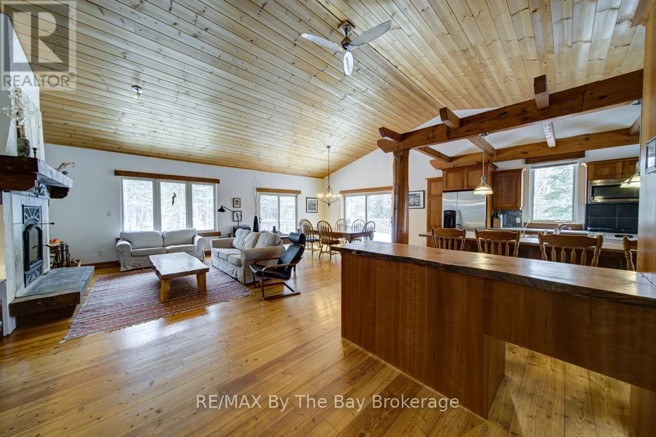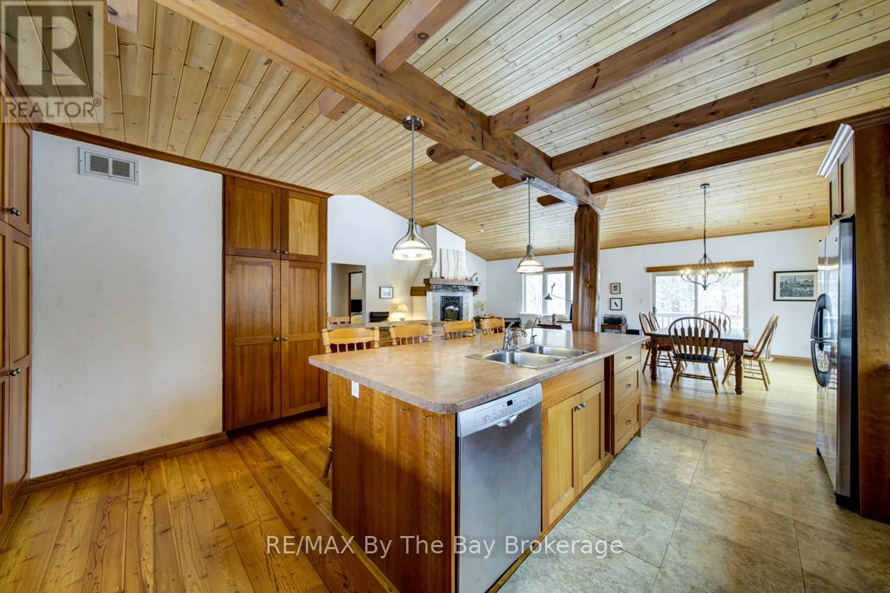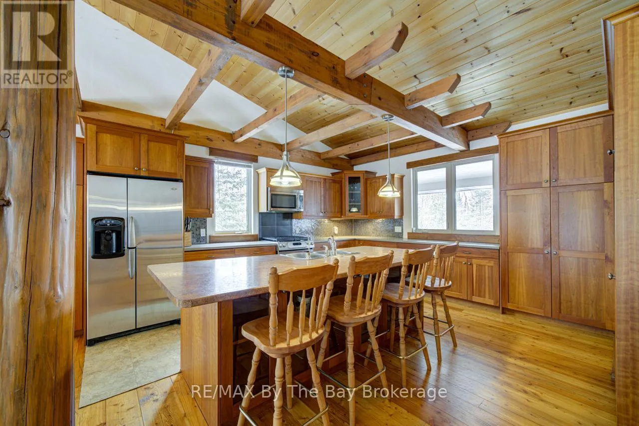 Cross Streets: Chem du Loup Rd. ** Directions: Take County Road 6 N, (this turns into Chem du Loup Rd.). Take a Right onto Silver Birch Dr. Follow to sign, on the right. Welcome to your luxurious country retreat in the prestigious Silver Birch Beach area near Thunder Beach. This stunning 2-story home, custom built in 2005, boasts approximately 3000 sq.ft. of finished living space and sits on an Acre of forested land. The Home features 3 bedrooms, 3 bathrooms, and a spacious attached garage with plenty of storage and onsite parking. Step inside and be greeted by the warmth of Tamarak wood flooring and vaulted wood beam ceilings in the Great Room, complete with a cozy wood-burning fireplace. The expansive custom kitchen features cherry wood cabinetry, an eat-in center island, and stainless steel appliances. The dining area has both a side and rear walkout, excellent for BBQing on warm summer nights. The primary bedroom offers a tranquil escape with vaulted ceiling, ensuite bathroom complete with glass & tile shower, walk-in closet, and additional storage room. Downstairs, you'll find two large bedrooms, a versatile rec room, a full 4-pc bathroom, as well as a laundry/utility room. Step outside and enjoy the beauty of nature from the covered front porch, and wrap around deck, overlooking more than a half an acre of private forested rear yard. With access to the lake, sandy beach, and breathtaking sunsets just a short stroll away, this property is truly a slice of paradise. Don't miss your chance to make this dream home your own in this sought after community! Home owners also receive Parking Passes issued by the Township to access parking for the main beaches of Thunder Beach and the surrounding area. (id:27476)