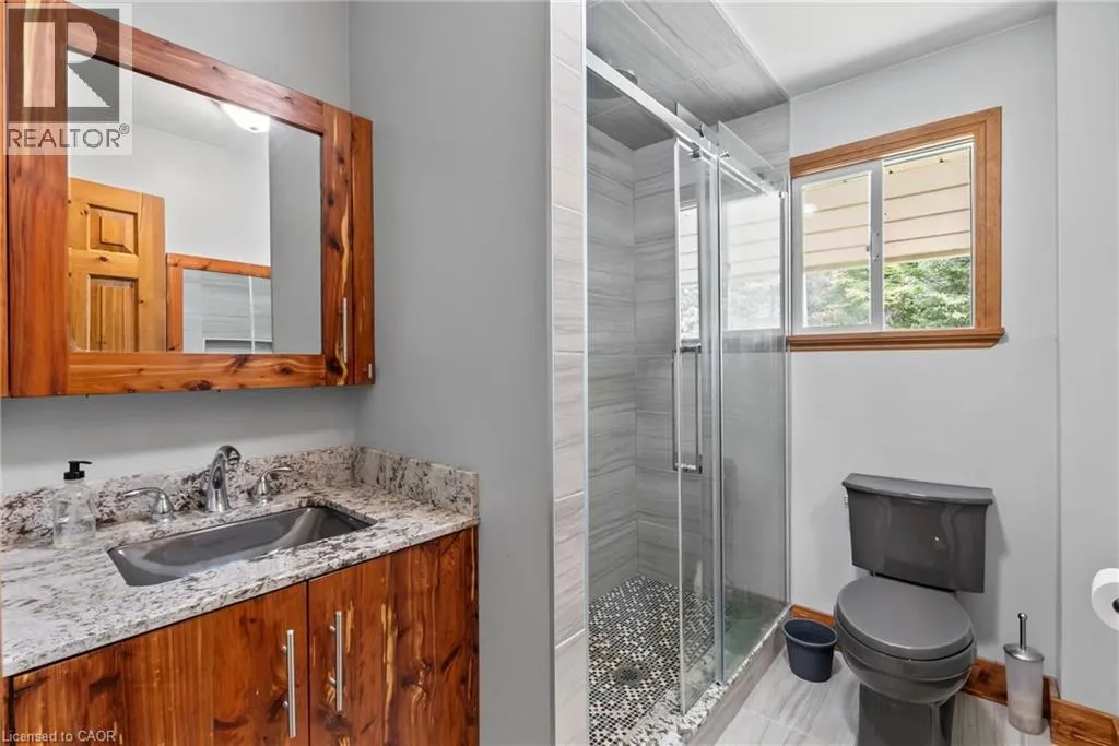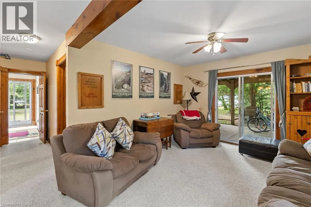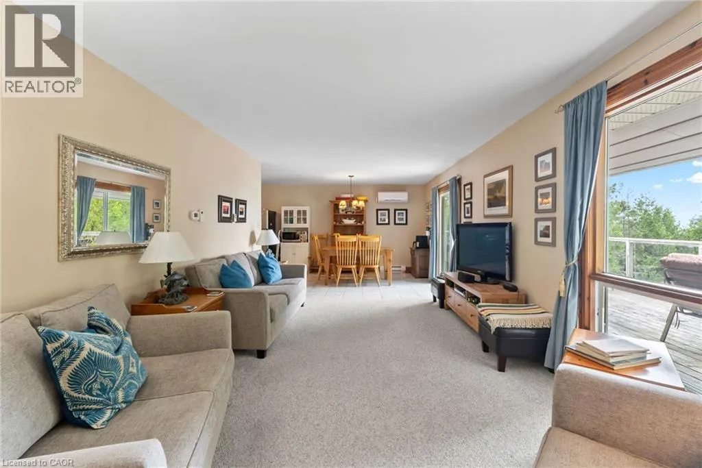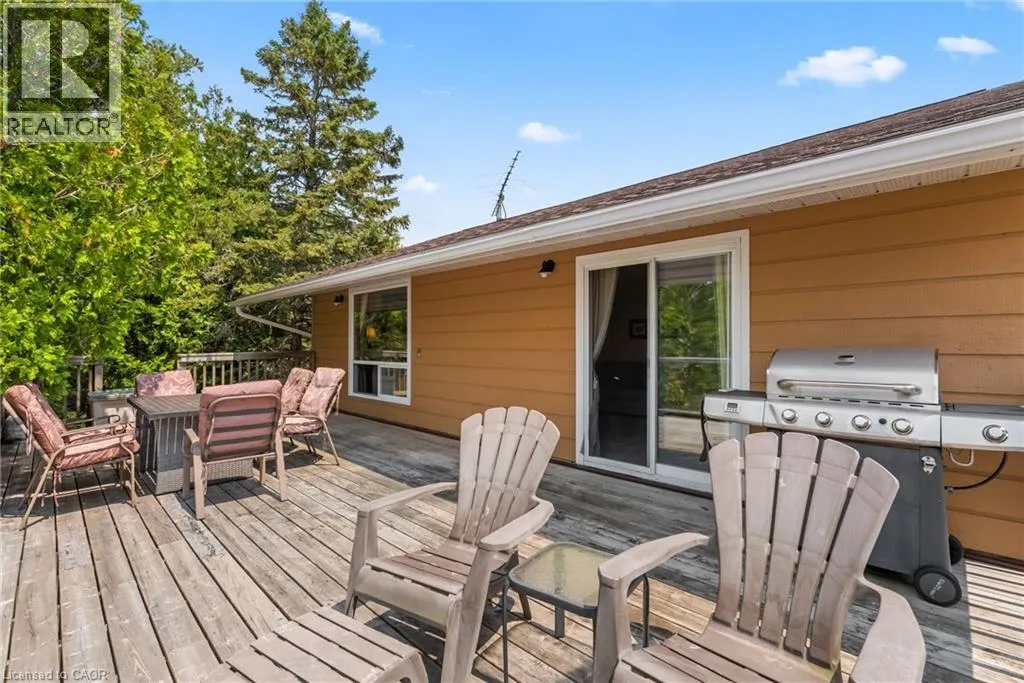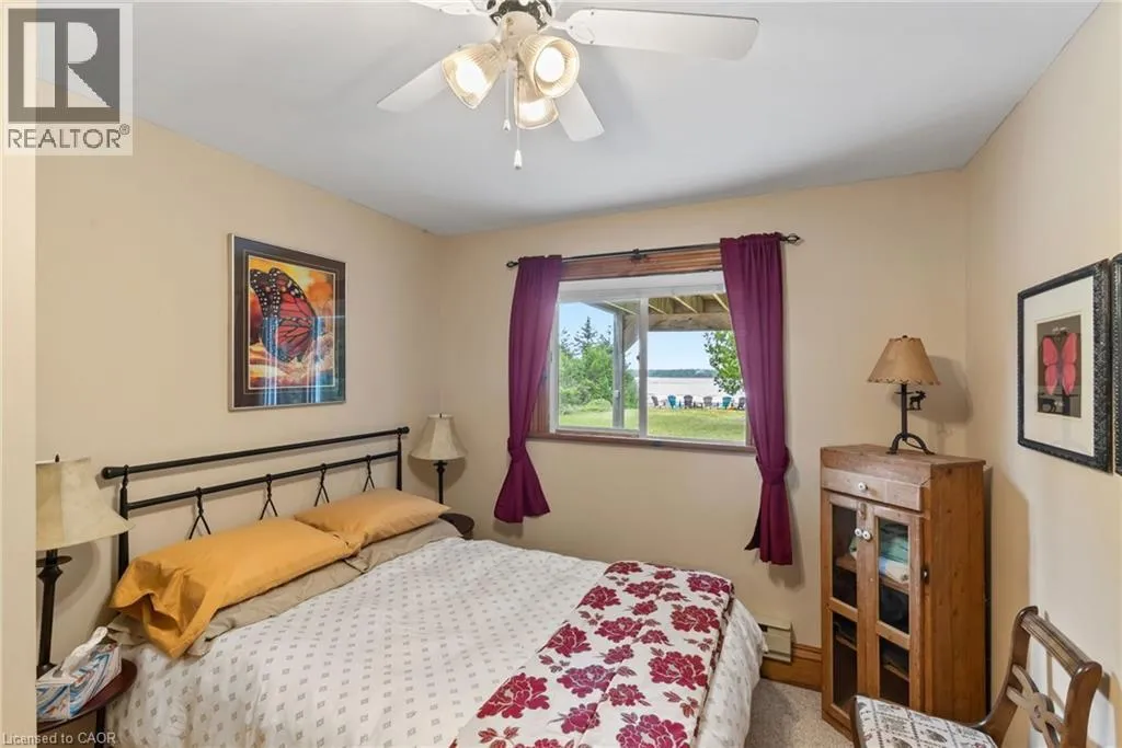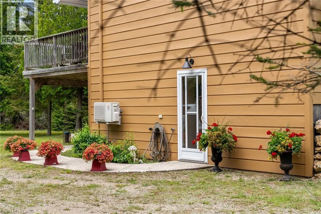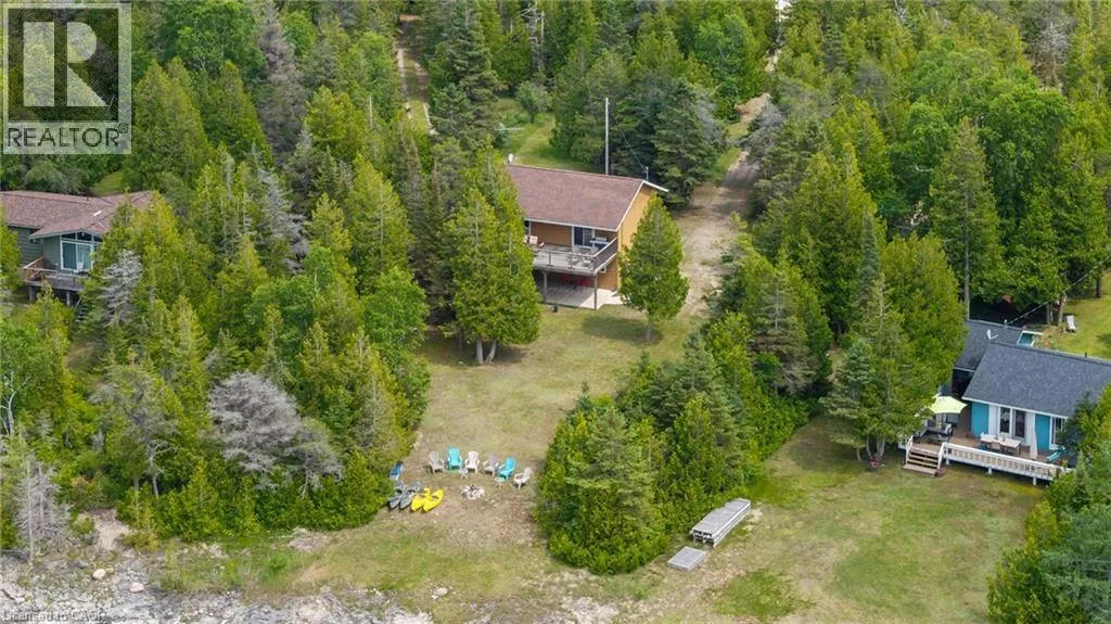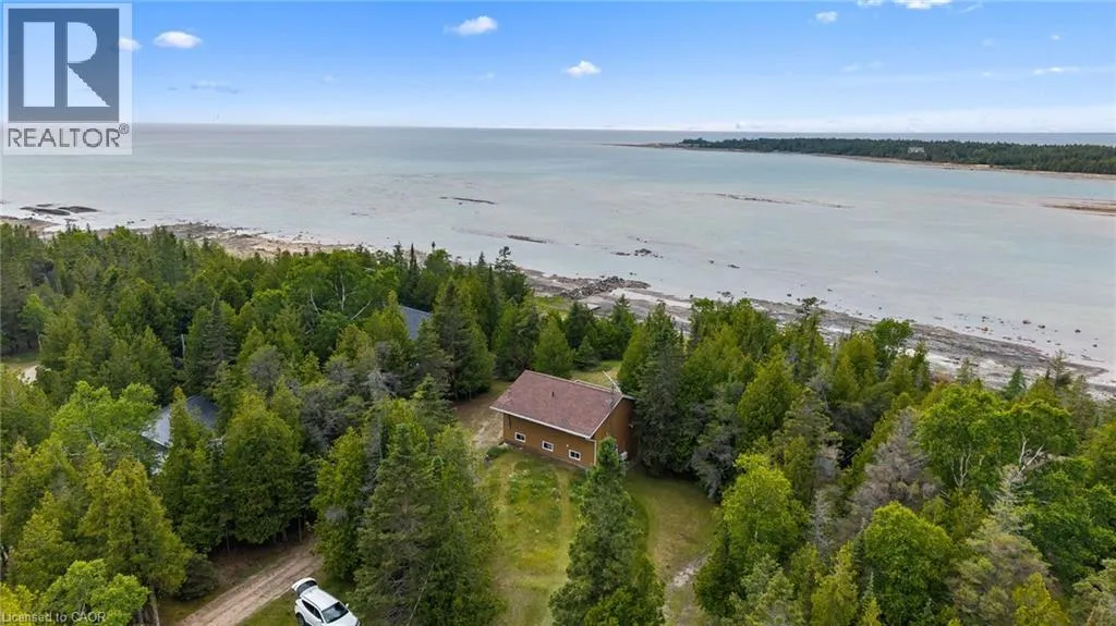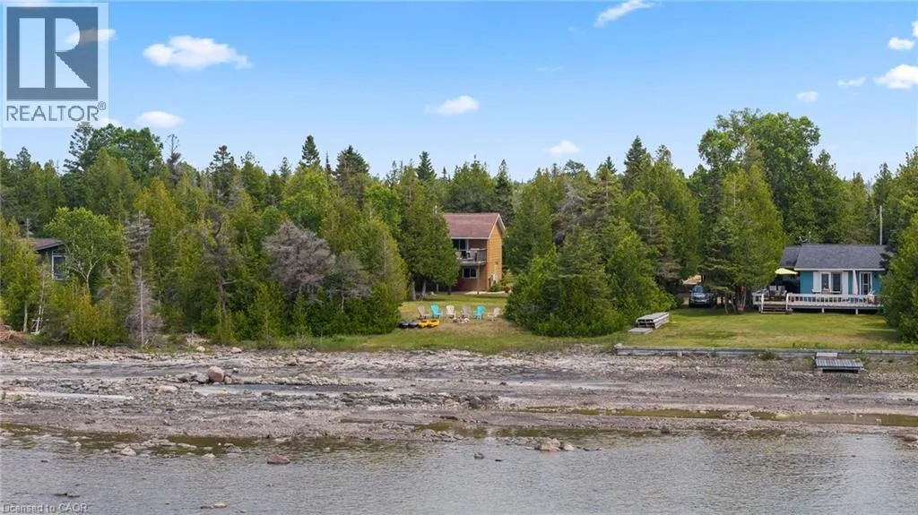 From Highway 6 N turn left on Johnsons Harbour Road then right onto Dorcas Bay Road YEAR ROUND WATERFRONT LIVING IN TOBERMORY. This beautiful property is fully winterized and lovingly maintained by current owners, who have exclusively enjoyed it for their private use for many years. You'll have your own view of the Northern Bruce's famous stunning sunsets from your large back deck or seated by the fire right at the water. When you enter the residence from the spacious driveway you will find two bedrooms, an open living room, eating area and laundry space w/walkout to covered patio, plus a 3 pc bathroom. Upstairs is the large primary bedroom, recently renovated bathroom with heated floors, large, bright open living room/dining/kitchen that opens out onto your huge deck w/unobstructed views. All interior doors & trim handcrafted from local pine. The two levels could easily be separated for in-law suite. Heating and A/C provided by 3 high efficiency Mitsubishi mini-split air-sourced heat pumps. Heating back up provided by baseboard heaters & propane fireplace. Massive outdoor space with large flat open area suitable for outdoor sports & activities. Enjoy your own butterfly sanctuary in the large pollinator garden. New Roof in 2014, Exterior Professionally painted in 2025. Large Storage Shed. Most Furniture in included. Very quiet/private location & a short drive to the world famous Grotto, Singing Sands Beach or into town where you will find shopping, restaurants, boat tours & more. This is a truly exceptional property. (id:27476)