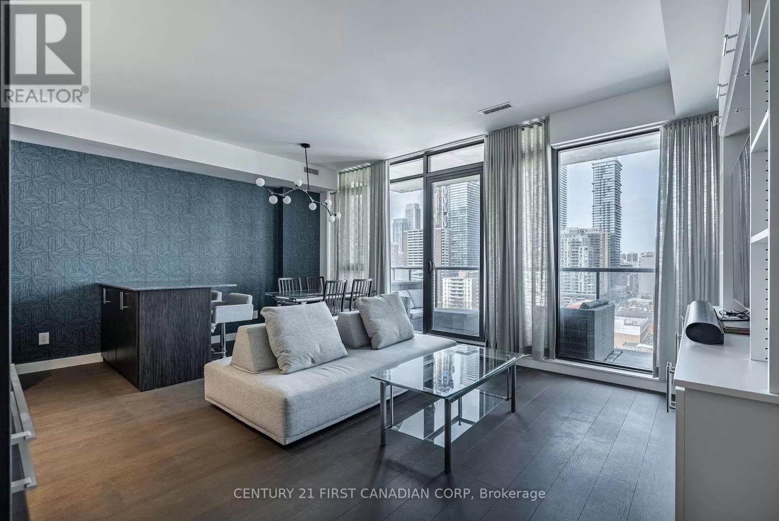 Cross Streets: Church and Wellesley. ** Directions: Heading north on Yonge, turn right onto Wellesley, building will be on your right. Welcome to unit 1405, this stunning 2-bedroom, 2-bathroom condo at 81 Wellesley, perfectly situated in the heart of downtown Toronto and 1 block from Wellesley subway station. Built in 2023, this sleek and contemporary building offers the perfect blend of luxury and comfort with amenities just steps from the front door, that make everyday life a little bit easier. Boasting over 1,100 sq. ft. of modern living space, this sleek unit features floor-to-ceiling windows that flood the space with natural light. Both bedrooms are generously sized, with views of the CN tower from the primary bedroom. The second bedroom has a high end custom made wall bed, for functionality and convenience with guests. The incredible kitchen is a true standout, with sleek, modern finishes, a custom built in island, upgraded modern appliances and ample counter space, perfect for preparing meals or entertaining guests. The open concept living space is designed to maximize both style and functionality. With access to the large balcony, overlooking the city skyline from the 14th floor. 81 Wellesley includes amazing amenities for residents, including a spacious high end fitness room, meeting space for guests and a spacious terrace to enjoy in the summer months. Located just steps from everything downtown Toronto has to offer world-class dining, shopping, entertainment, and easy access to public transit you'll have everything you need right at your doorstep. *This unit includes 1 owned parking space. (id:27476)