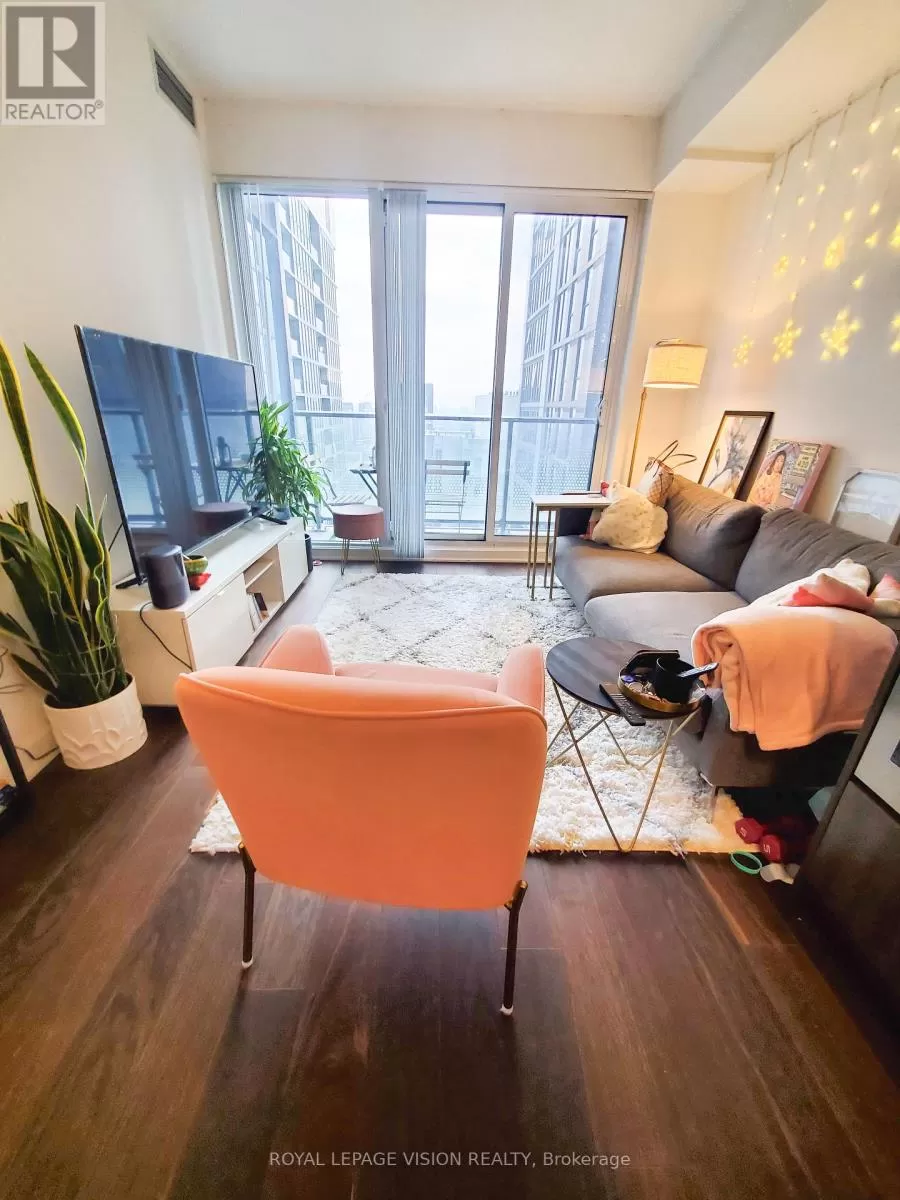King Street & Peter Street Elizabeth Model, One Bedroom + Den with 1 Bathroom in the heart of entertainment district, bright one bedroom plus media with balcony. The wait is over for this luxurious king blue condo! Be the 1st to live in this unit, Laminate flooring t/o! Luxury 4 pc bath w/marble tile & surround! Floor to ceiling windows! Ensuite laundry! 98 walk score, TTC@ your door, walk to shops, bars, restaurants, theaters & more! Amazing amenities! Courtyard for car/limo pickup/drop off. **EXTRAS** Fridge, stove, built-in dishwasher and microwave. Washer & dryer. All existing electrical light fixtures included, indoor pool, outdoor deck, gym, party rm, yoga rm, retail shops, concierge, security, guest suites, theater room. (id:27476)