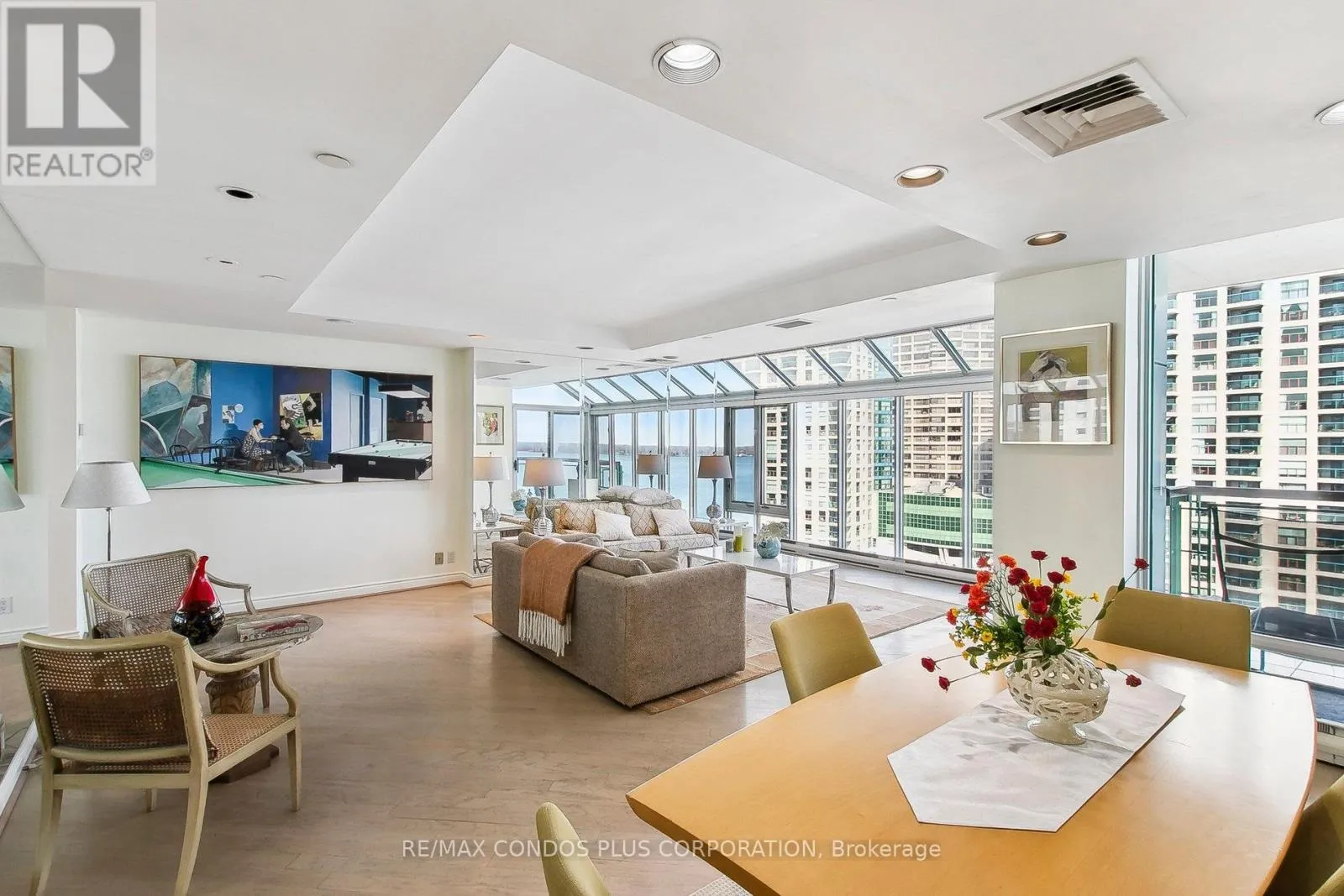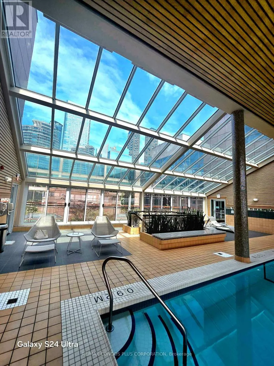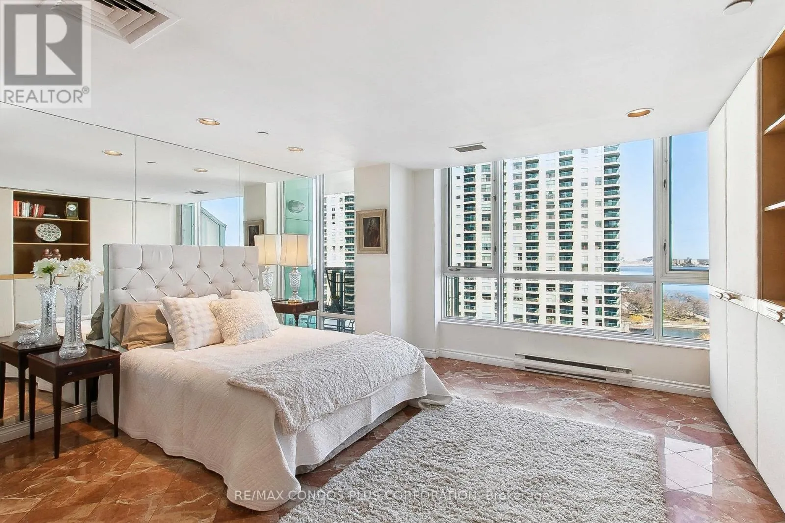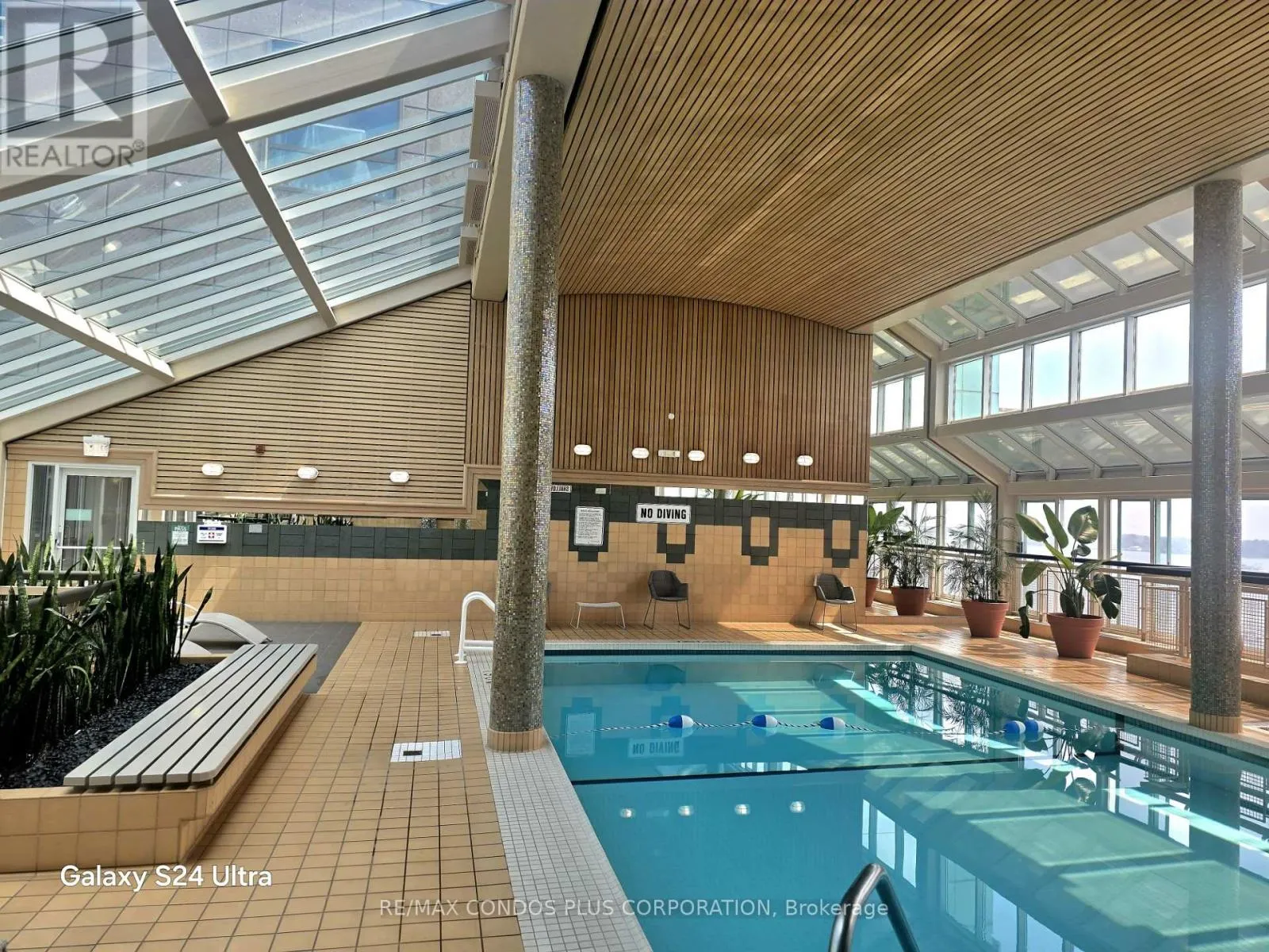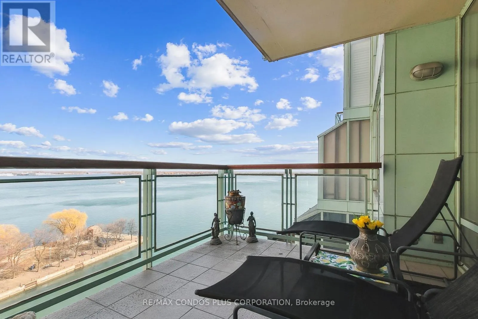 QUEENS QUAY + YORK Two bedroom plus den, over 2000 sq ft of spacious and lovely light filled layout in Prestigious Boutique Building (Queens Quay Terminal). Unit has captivating lake views, functional and well designed layout with generous room sizes. Private balcony overlooks scenic lake views and backdrop of Love Pond in newly built city park. Large size locker and parking in heated garage included. Valet parking, 24 hr. concierge, indoor pool with south facing sundeck overlooking harbour and sauna. Restaurants, barber shop and grocery store located in the building, below condo units. Can easily function as three bedroom. (id:27476)