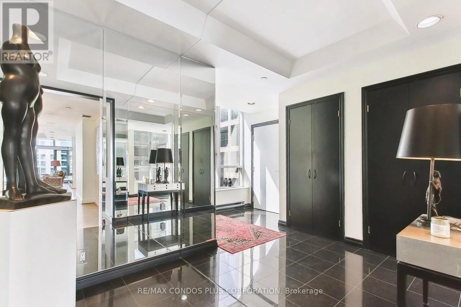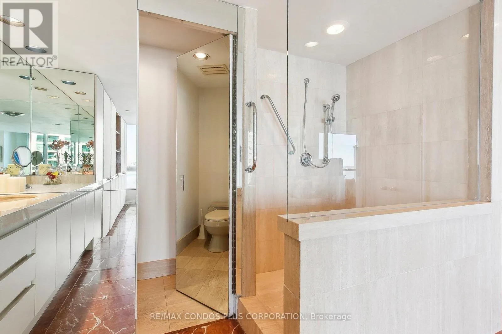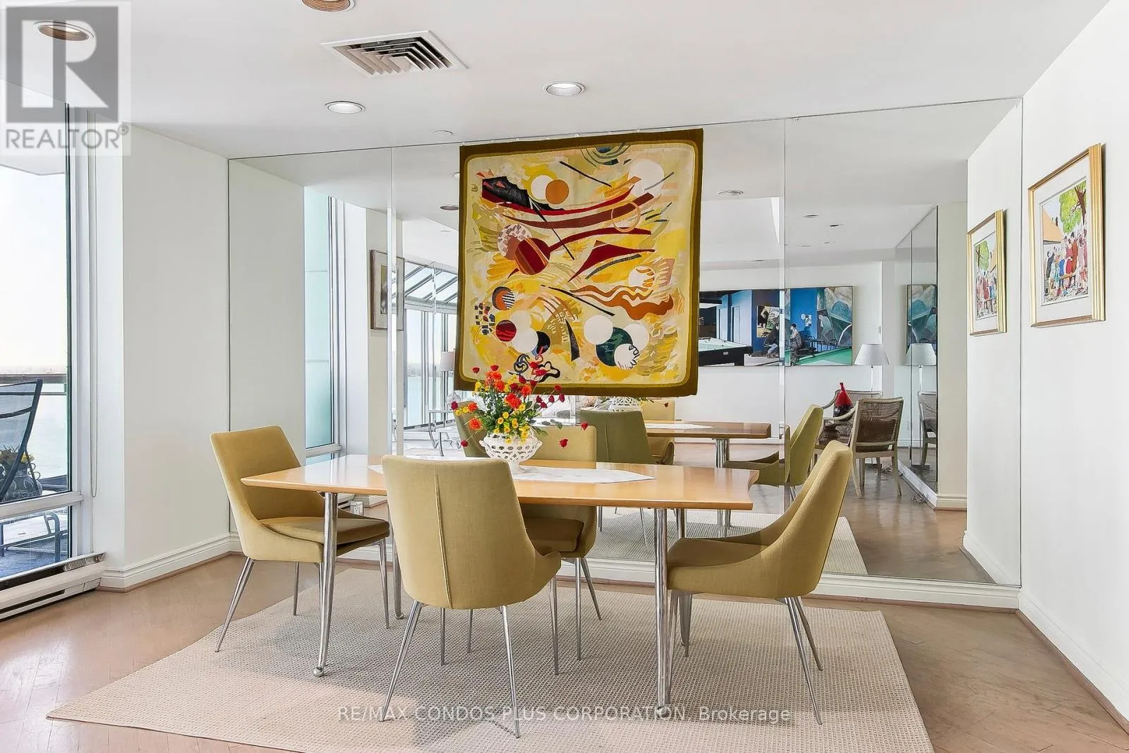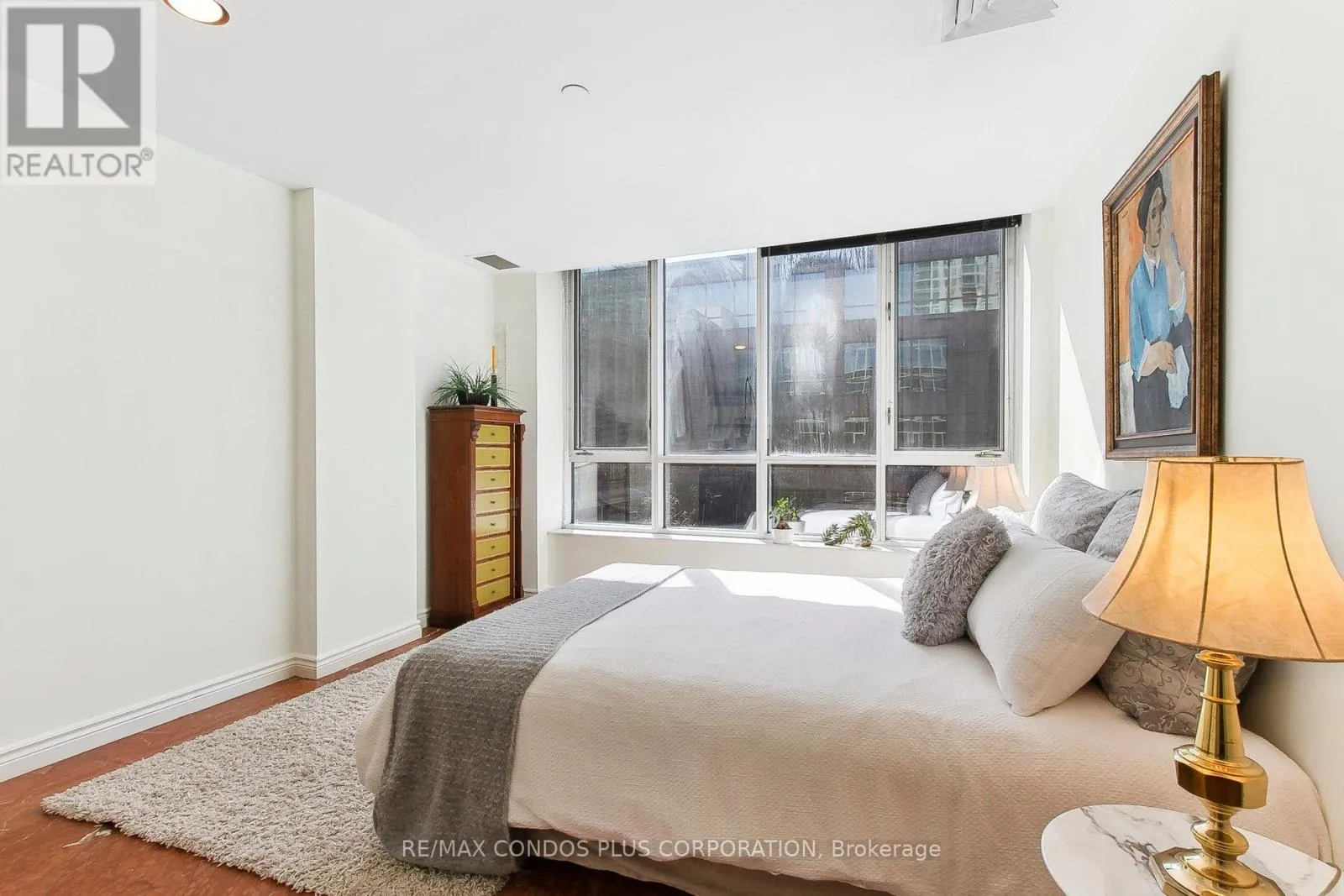 QUEENS QUAY + YORK Two bedroom plus den, over 2000 sq ft of spacious and lovely light filled layout in Prestigious Boutique Building (Queens Quay Terminal). Unit has captivating lake views, functional and well designed layout with generous room sizes. Private balcony overlooks scenic lake views and backdrop of Love Pond in newly built city park. Large size locker and parking in heated garage included. Valet parking, 24 hr. concierge, indoor pool with south facing sundeck overlooking harbour and sauna. Restaurants, barber shop and grocery store located in the building, below condo units. Can easily function as three bedroom. (id:27476)