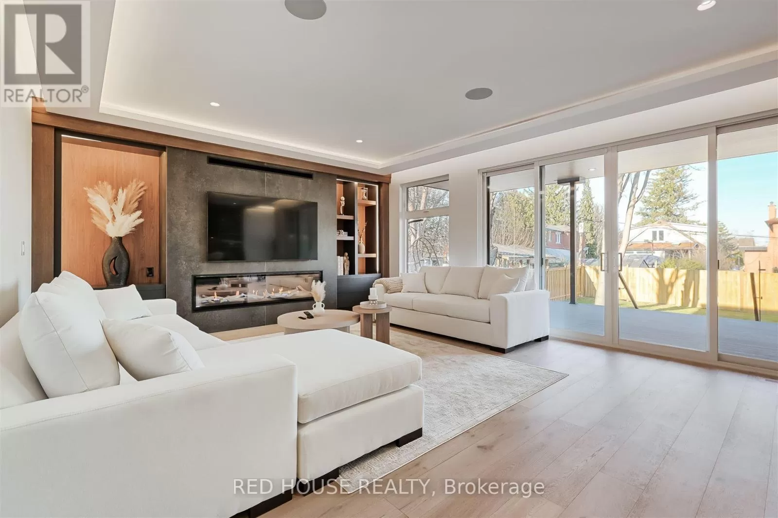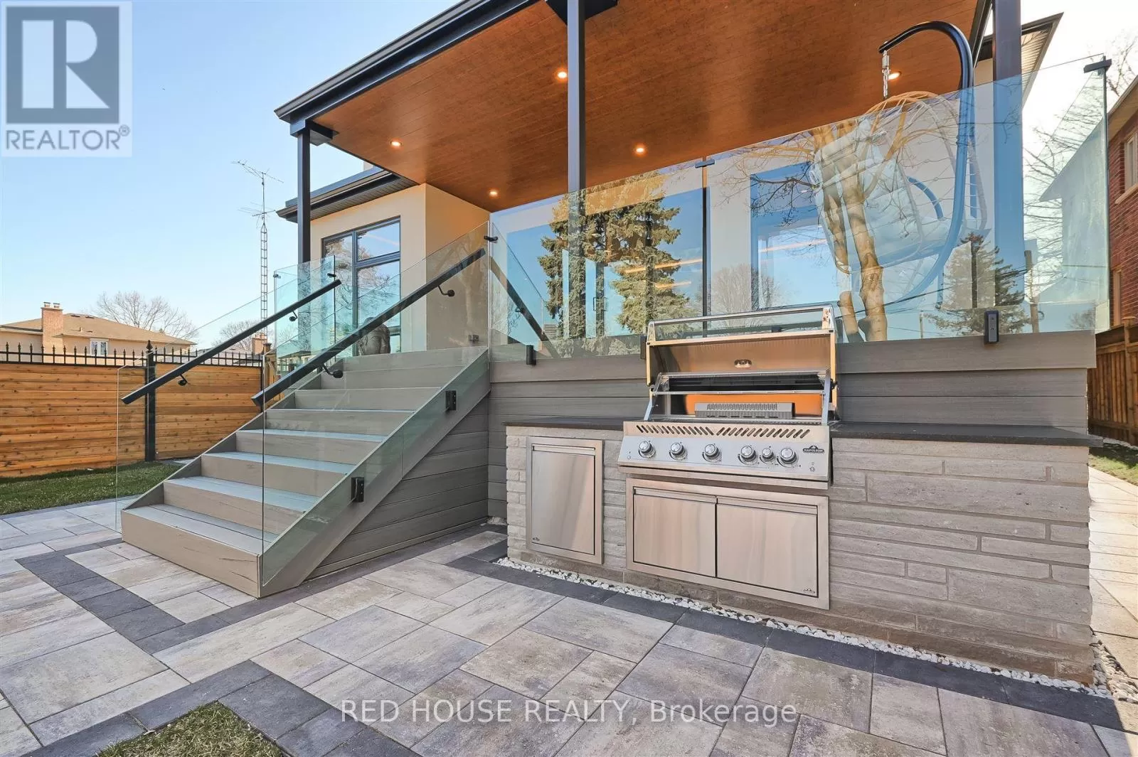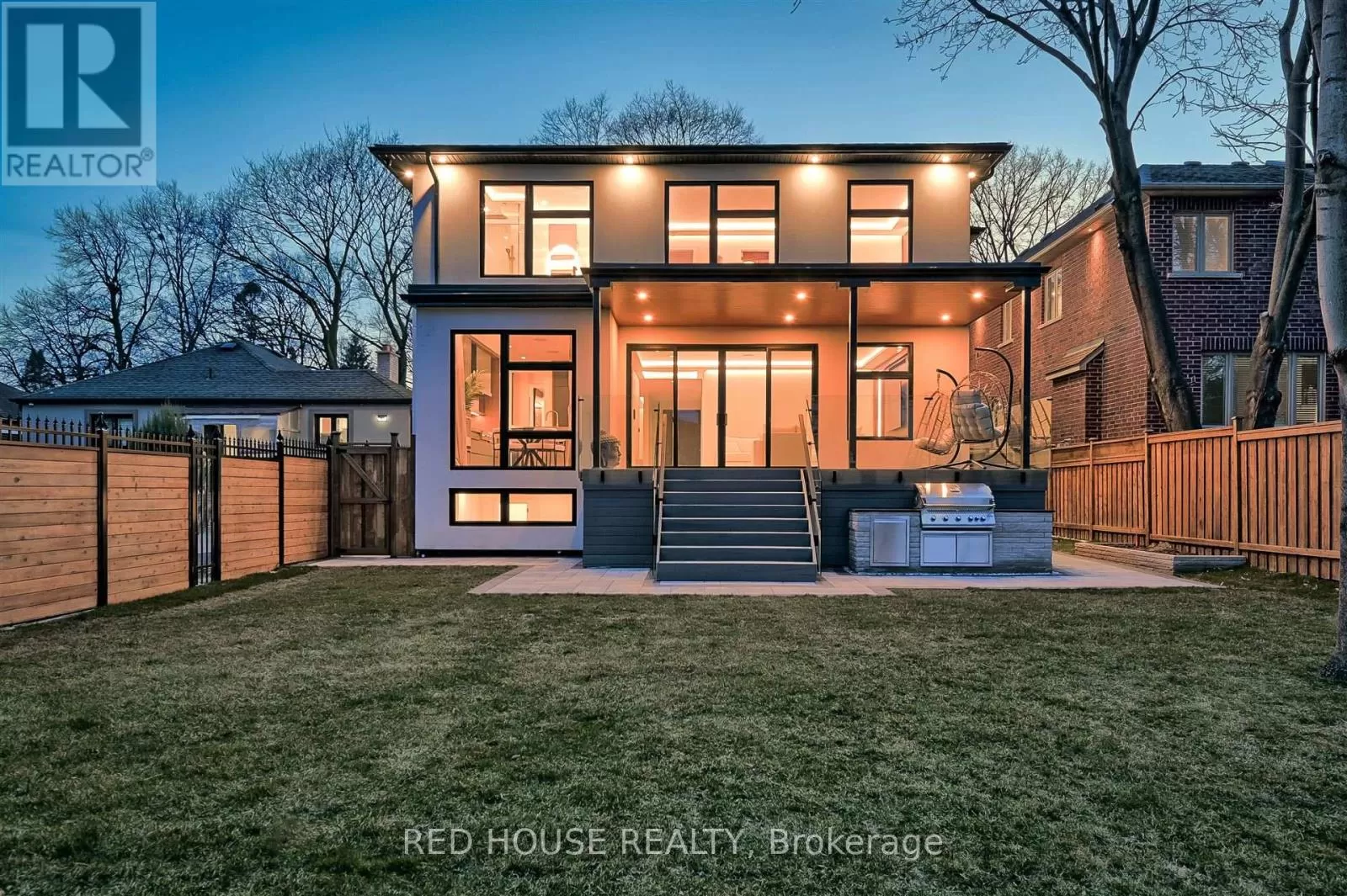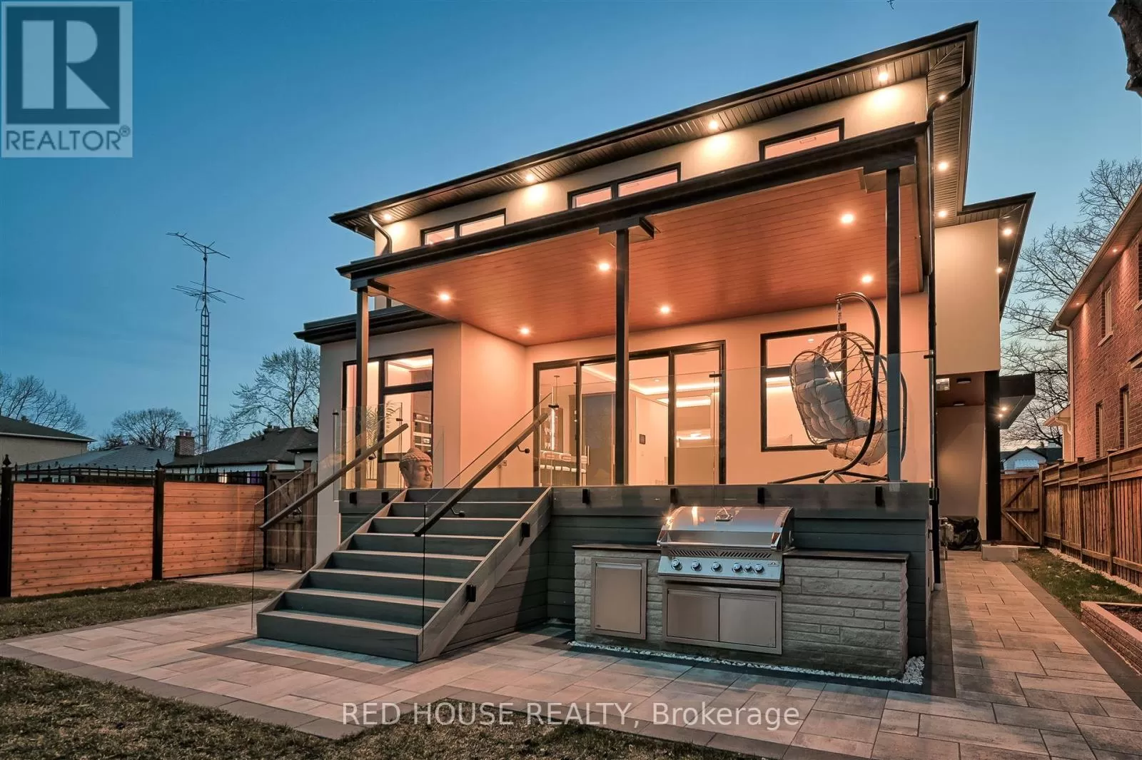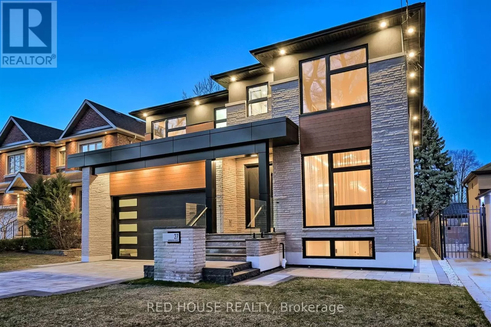 Cross Streets: Parklawn Rd And The Queensway. ** Directions: 27 Inverlegh Drive, Toronto. Welcome to this show-stopping custom-built home in one of Toronto's most desired communities steps to top-rated schools, scenic parks, skating rinks, tennis courts, fine dining and more! Designed for the modern family and elevated entertainer, this nearly 5,000 sq.ft. masterpiece blends timeless architecture with future-proof smart home technology. Step inside to discover rich Canadian white oak flooring, soaring ceilings, and a striking façade wrapped in natural indiana limestone and premium Canadian aluminum panels. The heart of the home is a chefs dream: a designer kitchen with built-in Jenn Air appliances and sleek cabinetry, overlooking a spectacular open-concept living space; excellent for both relaxation and entertainment! With 5 expansive bedrooms, 5.5 luxury bathrooms, every detail is intentional and inspiring including the jaw-dropping primary suite with a stunning closet and spa-like ensuite. Step outside to a serene entertainers oasis on a 45 x 137 lot featuring a custom patio, covered dining area, built-in Napoleon BBQ, and professionally landscaped grounds. Bonus: 7 separate speaker zones, modern & timeless wine cellar, a double garage with 14-ft ceiling with hoist potential, 3 fireplaces, voice-activated automated curtains throughout and all the space you need to live exquisitely. (id:27476)
