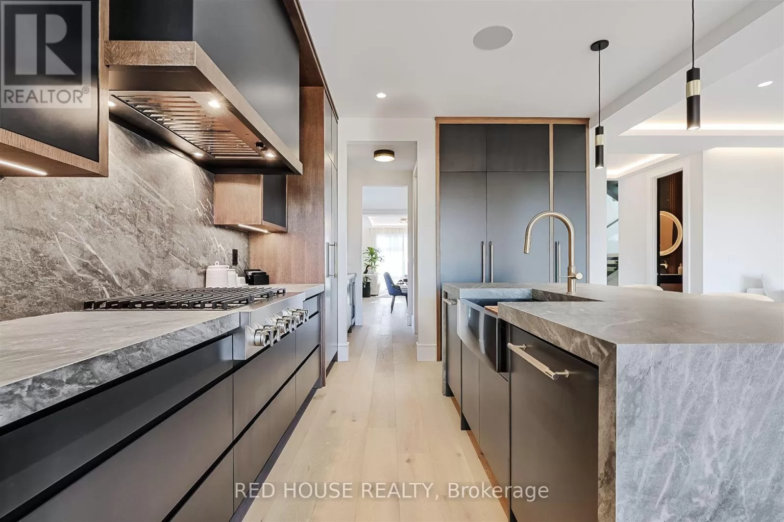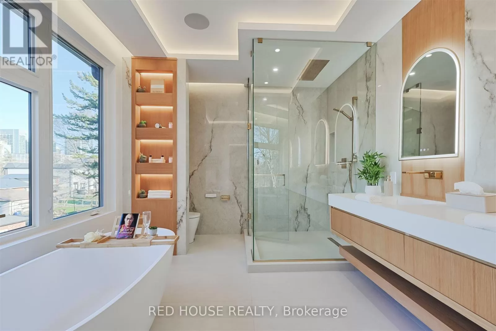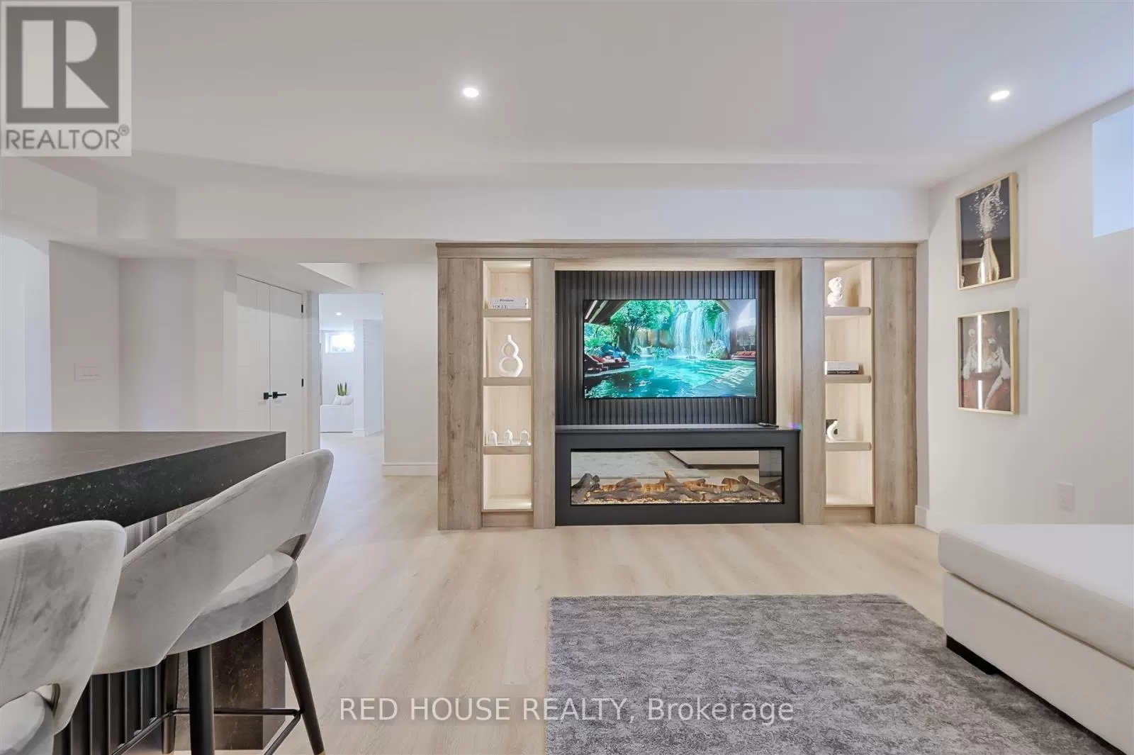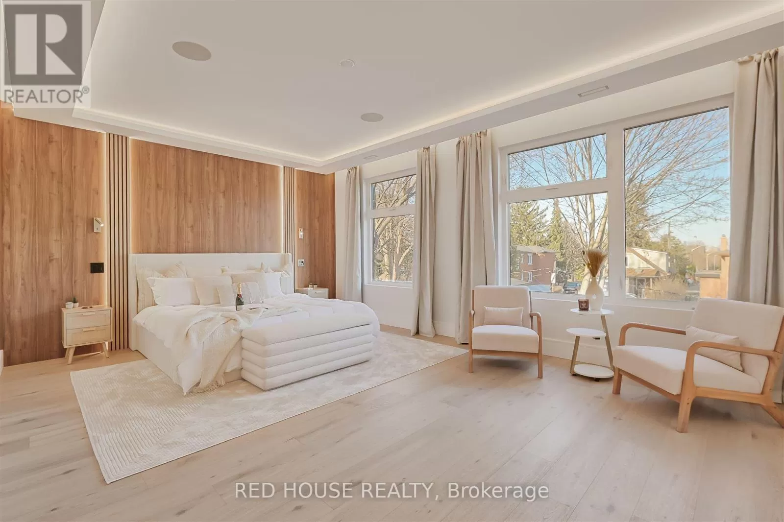 Cross Streets: Parklawn Rd And The Queensway. ** Directions: 27 Inverlegh Drive, Toronto. Welcome to this show-stopping custom-built home in one of Toronto's most desired communities steps to top-rated schools, scenic parks, skating rinks, tennis courts, fine dining and more! Designed for the modern family and elevated entertainer, this nearly 5,000 sq.ft. masterpiece blends timeless architecture with future-proof smart home technology. Step inside to discover rich Canadian white oak flooring, soaring ceilings, and a striking façade wrapped in natural indiana limestone and premium Canadian aluminum panels. The heart of the home is a chefs dream: a designer kitchen with built-in Jenn Air appliances and sleek cabinetry, overlooking a spectacular open-concept living space; excellent for both relaxation and entertainment! With 5 expansive bedrooms, 5.5 luxury bathrooms, every detail is intentional and inspiring including the jaw-dropping primary suite with a stunning closet and spa-like ensuite. Step outside to a serene entertainers oasis on a 45 x 137 lot featuring a custom patio, covered dining area, built-in Napoleon BBQ, and professionally landscaped grounds. Bonus: 7 separate speaker zones, modern & timeless wine cellar, a double garage with 14-ft ceiling with hoist potential, 3 fireplaces, voice-activated automated curtains throughout and all the space you need to live exquisitely. (id:27476)