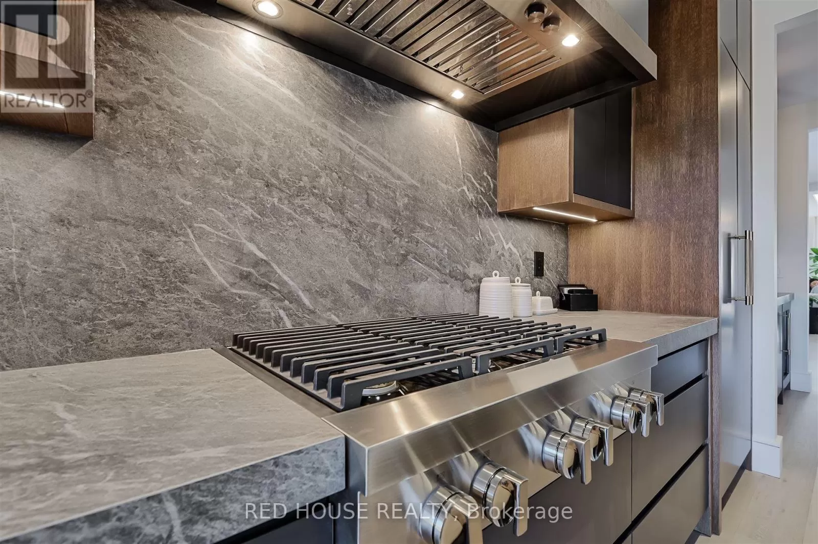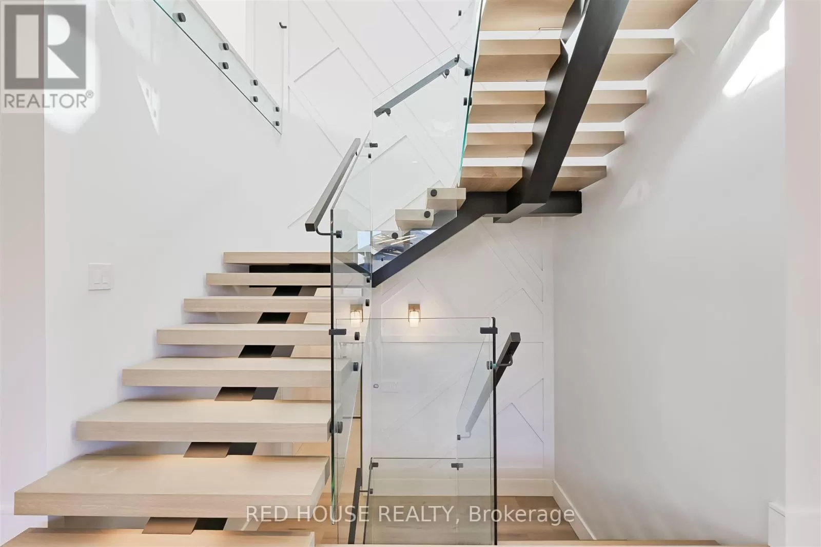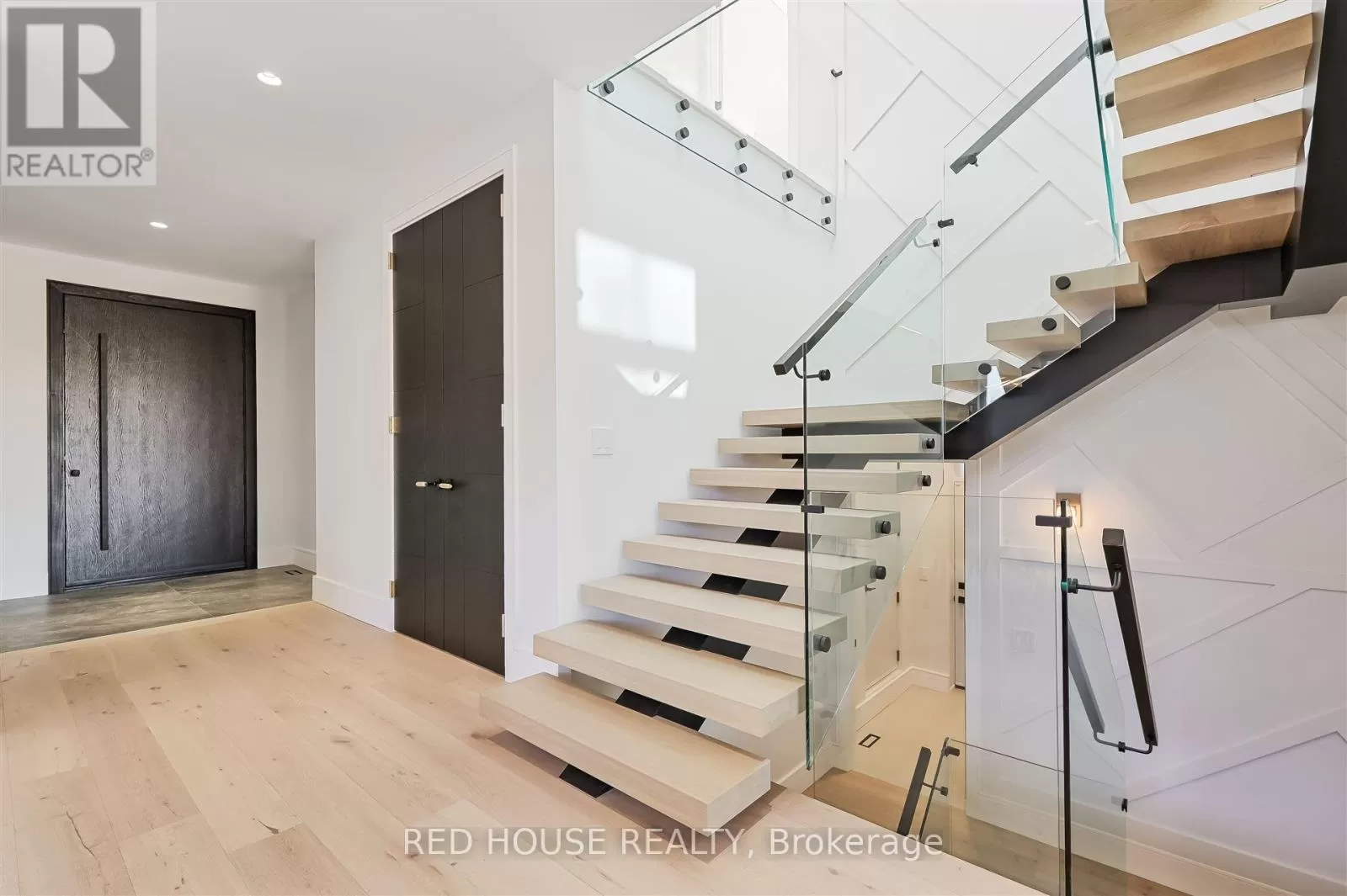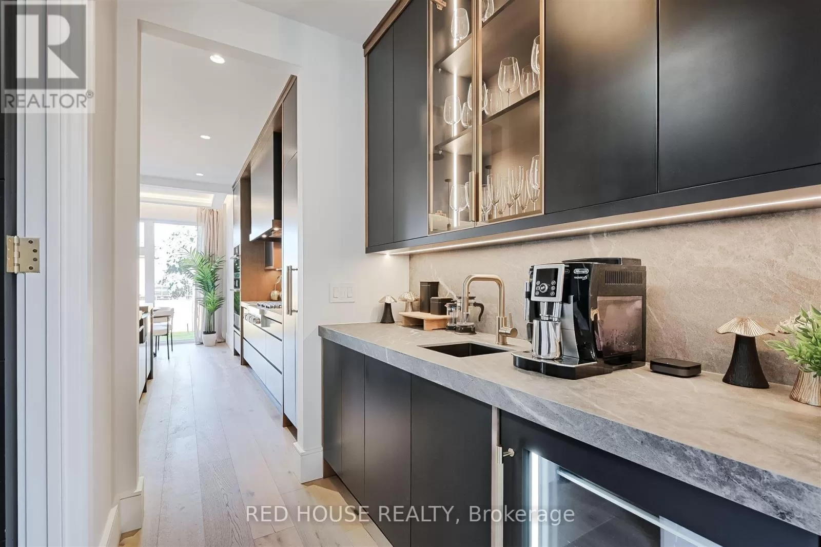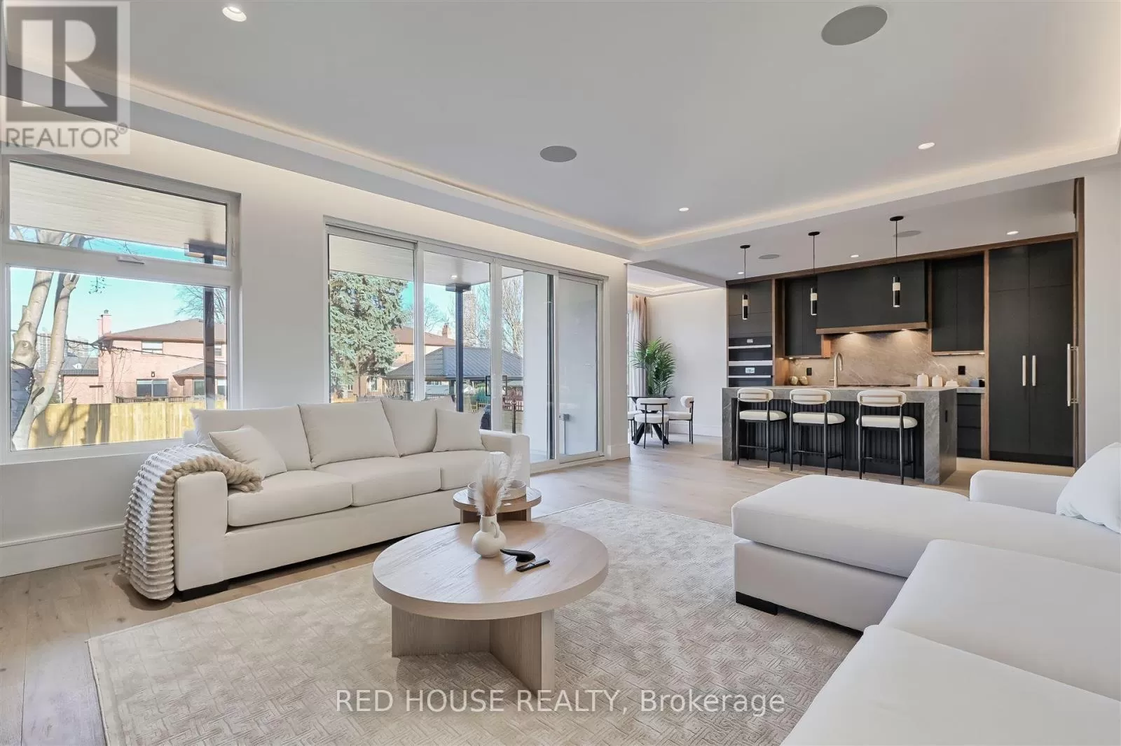 Cross Streets: Parklawn Rd And The Queensway. ** Directions: 27 Inverlegh Drive, Toronto. Welcome to this show-stopping custom-built home in one of Toronto's most desired communities steps to top-rated schools, scenic parks, skating rinks, tennis courts, fine dining and more! Designed for the modern family and elevated entertainer, this nearly 5,000 sq.ft. masterpiece blends timeless architecture with future-proof smart home technology. Step inside to discover rich Canadian white oak flooring, soaring ceilings, and a striking façade wrapped in natural indiana limestone and premium Canadian aluminum panels. The heart of the home is a chefs dream: a designer kitchen with built-in Jenn Air appliances and sleek cabinetry, overlooking a spectacular open-concept living space; excellent for both relaxation and entertainment! With 5 expansive bedrooms, 5.5 luxury bathrooms, every detail is intentional and inspiring including the jaw-dropping primary suite with a stunning closet and spa-like ensuite. Step outside to a serene entertainers oasis on a 45 x 137 lot featuring a custom patio, covered dining area, built-in Napoleon BBQ, and professionally landscaped grounds. Bonus: 7 separate speaker zones, modern & timeless wine cellar, a double garage with 14-ft ceiling with hoist potential, 3 fireplaces, voice-activated automated curtains throughout and all the space you need to live exquisitely. (id:27476)