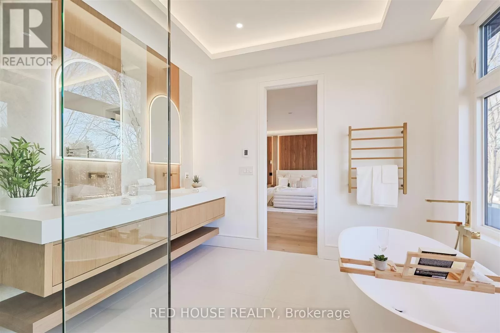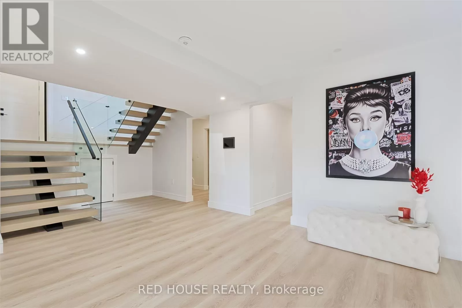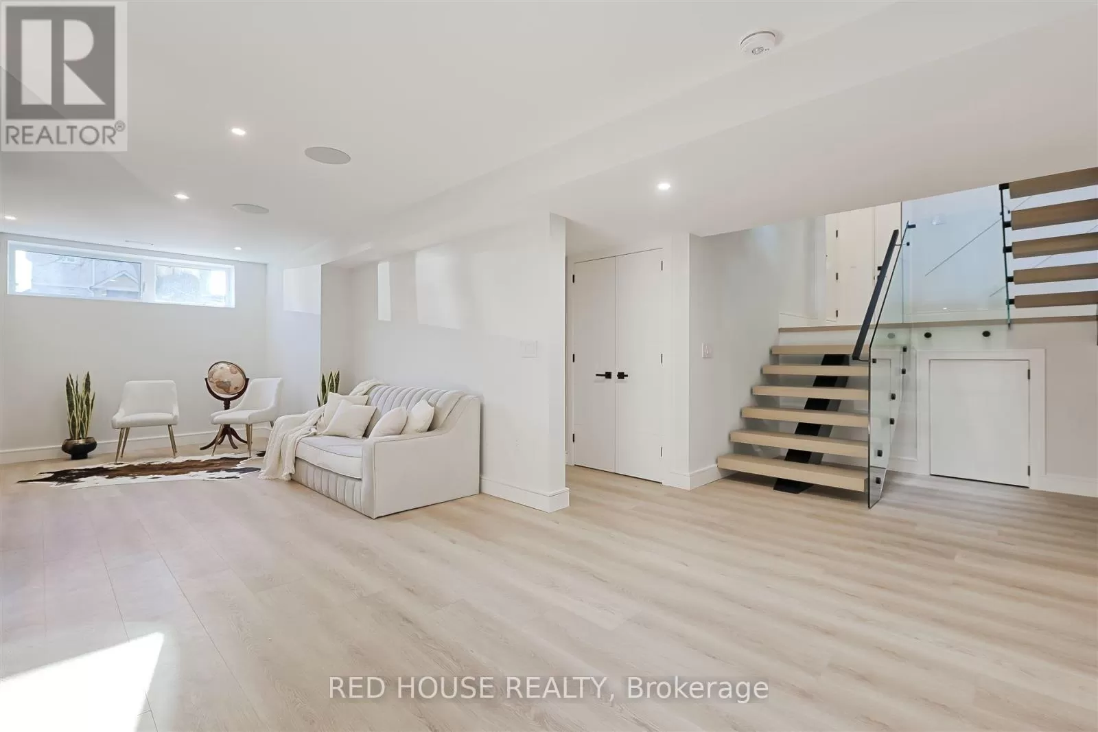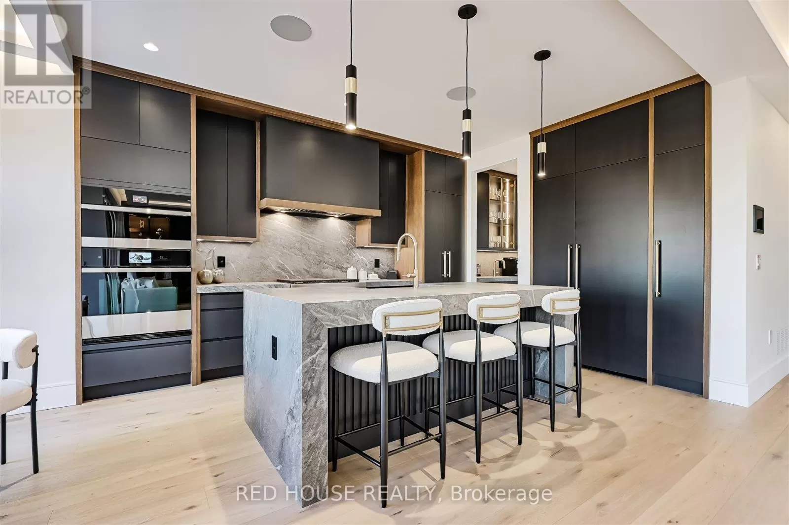 Cross Streets: Parklawn Rd And The Queensway. ** Directions: 27 Inverlegh Drive, Toronto. Welcome to this show-stopping custom-built home in one of Toronto's most desired communities steps to top-rated schools, scenic parks, skating rinks, tennis courts, fine dining and more! Designed for the modern family and elevated entertainer, this nearly 5,000 sq.ft. masterpiece blends timeless architecture with future-proof smart home technology. Step inside to discover rich Canadian white oak flooring, soaring ceilings, and a striking façade wrapped in natural indiana limestone and premium Canadian aluminum panels. The heart of the home is a chefs dream: a designer kitchen with built-in Jenn Air appliances and sleek cabinetry, overlooking a spectacular open-concept living space; excellent for both relaxation and entertainment! With 5 expansive bedrooms, 5.5 luxury bathrooms, every detail is intentional and inspiring including the jaw-dropping primary suite with a stunning closet and spa-like ensuite. Step outside to a serene entertainers oasis on a 45 x 137 lot featuring a custom patio, covered dining area, built-in Napoleon BBQ, and professionally landscaped grounds. Bonus: 7 separate speaker zones, modern & timeless wine cellar, a double garage with 14-ft ceiling with hoist potential, 3 fireplaces, voice-activated automated curtains throughout and all the space you need to live exquisitely. (id:27476)