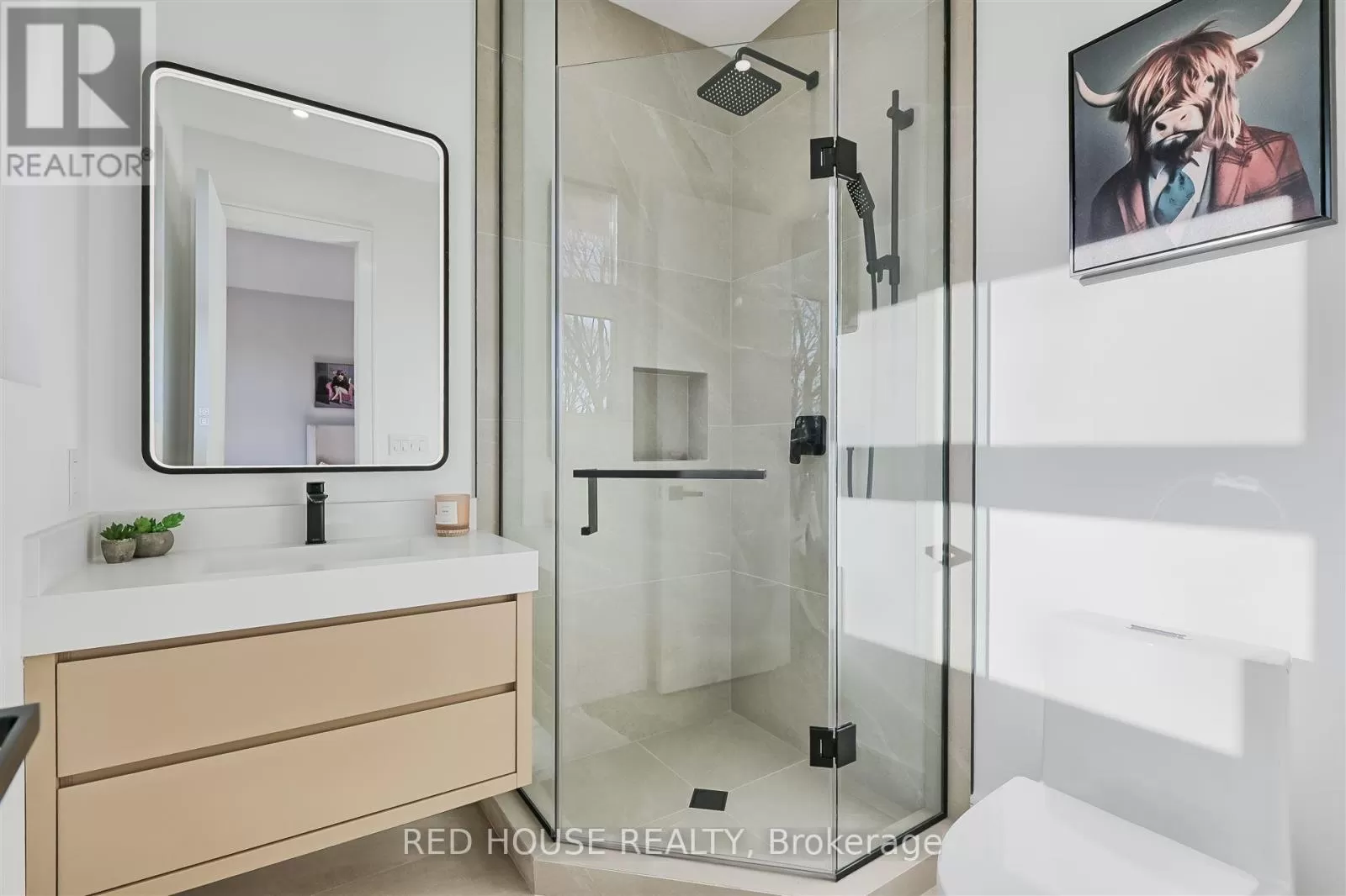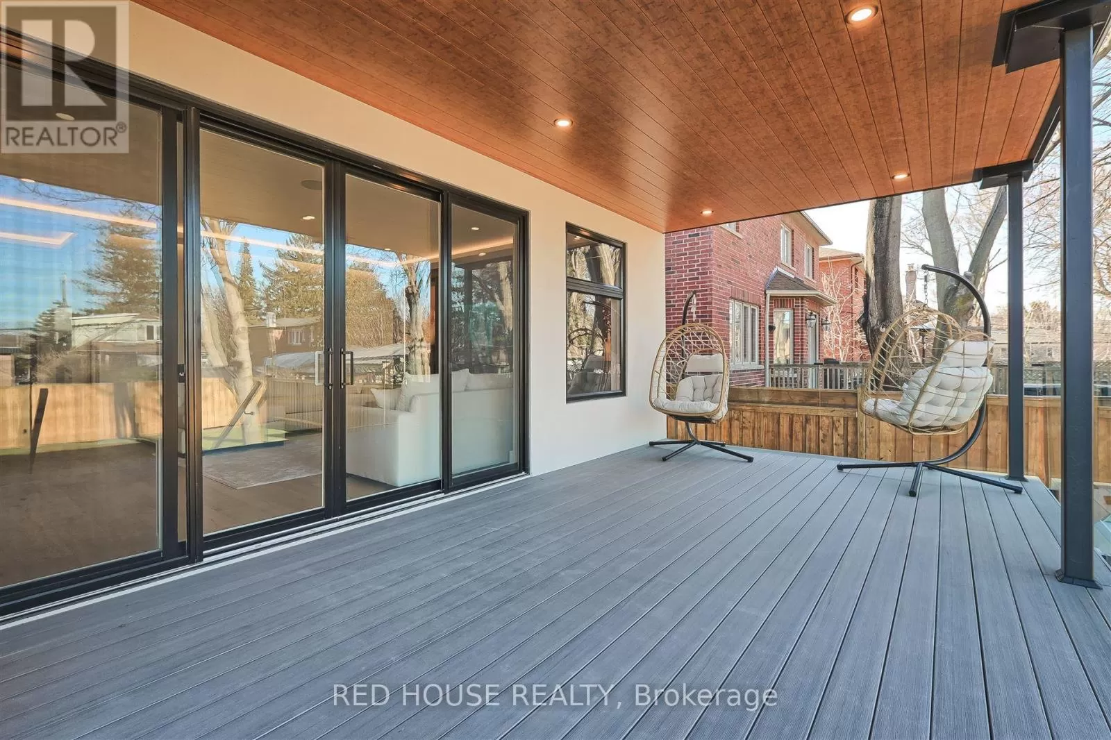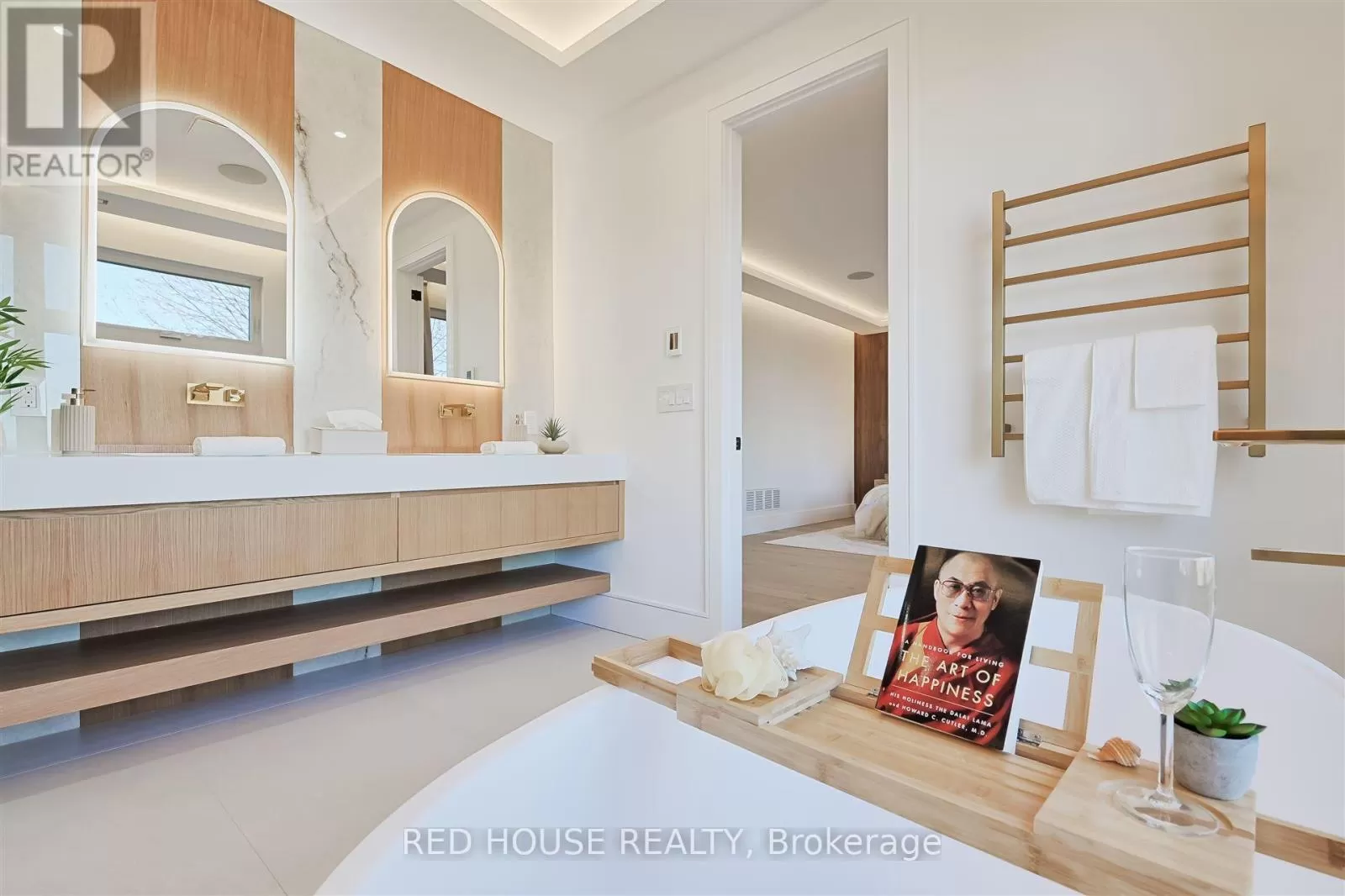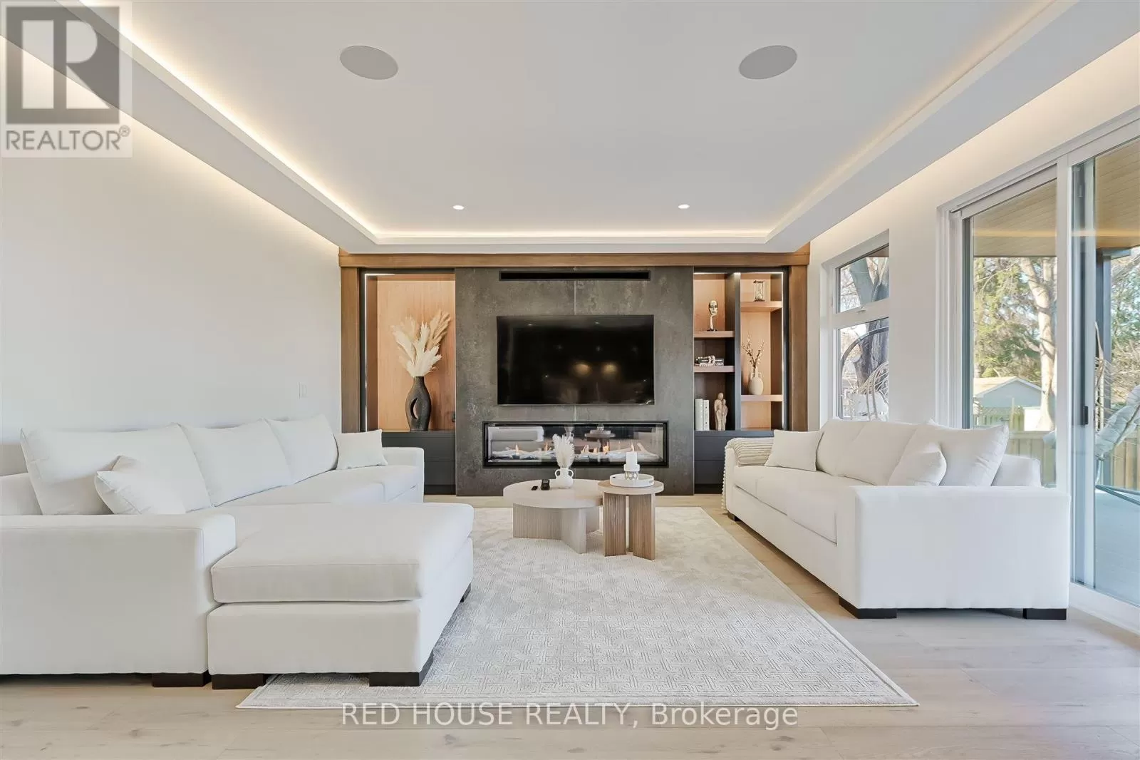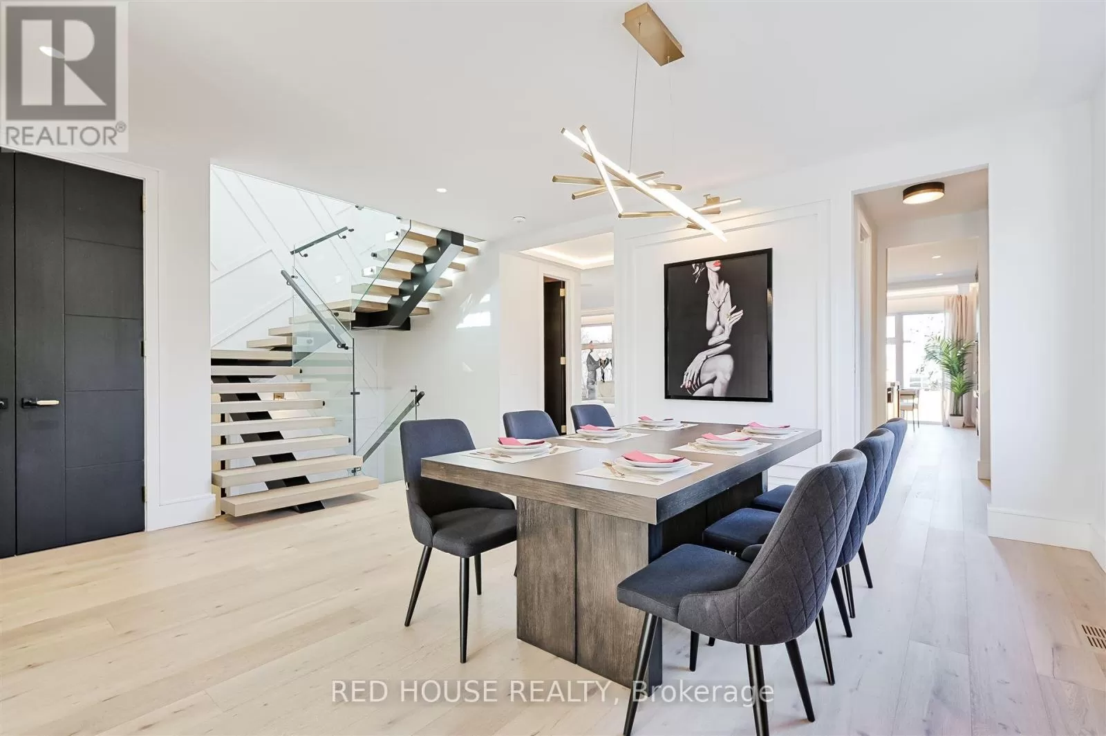 Cross Streets: Parklawn Rd And The Queensway. ** Directions: 27 Inverlegh Drive, Toronto. Welcome to this show-stopping custom-built home in one of Toronto's most desired communities steps to top-rated schools, scenic parks, skating rinks, tennis courts, fine dining and more! Designed for the modern family and elevated entertainer, this nearly 5,000 sq.ft. masterpiece blends timeless architecture with future-proof smart home technology. Step inside to discover rich Canadian white oak flooring, soaring ceilings, and a striking façade wrapped in natural indiana limestone and premium Canadian aluminum panels. The heart of the home is a chefs dream: a designer kitchen with built-in Jenn Air appliances and sleek cabinetry, overlooking a spectacular open-concept living space; excellent for both relaxation and entertainment! With 5 expansive bedrooms, 5.5 luxury bathrooms, every detail is intentional and inspiring including the jaw-dropping primary suite with a stunning closet and spa-like ensuite. Step outside to a serene entertainers oasis on a 45 x 137 lot featuring a custom patio, covered dining area, built-in Napoleon BBQ, and professionally landscaped grounds. Bonus: 7 separate speaker zones, modern & timeless wine cellar, a double garage with 14-ft ceiling with hoist potential, 3 fireplaces, voice-activated automated curtains throughout and all the space you need to live exquisitely. (id:27476)