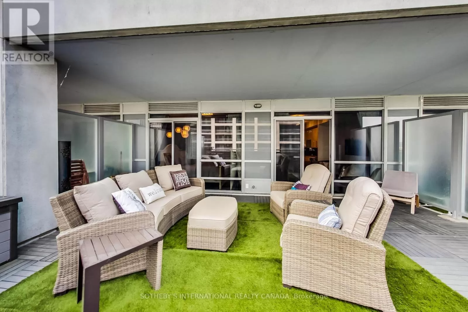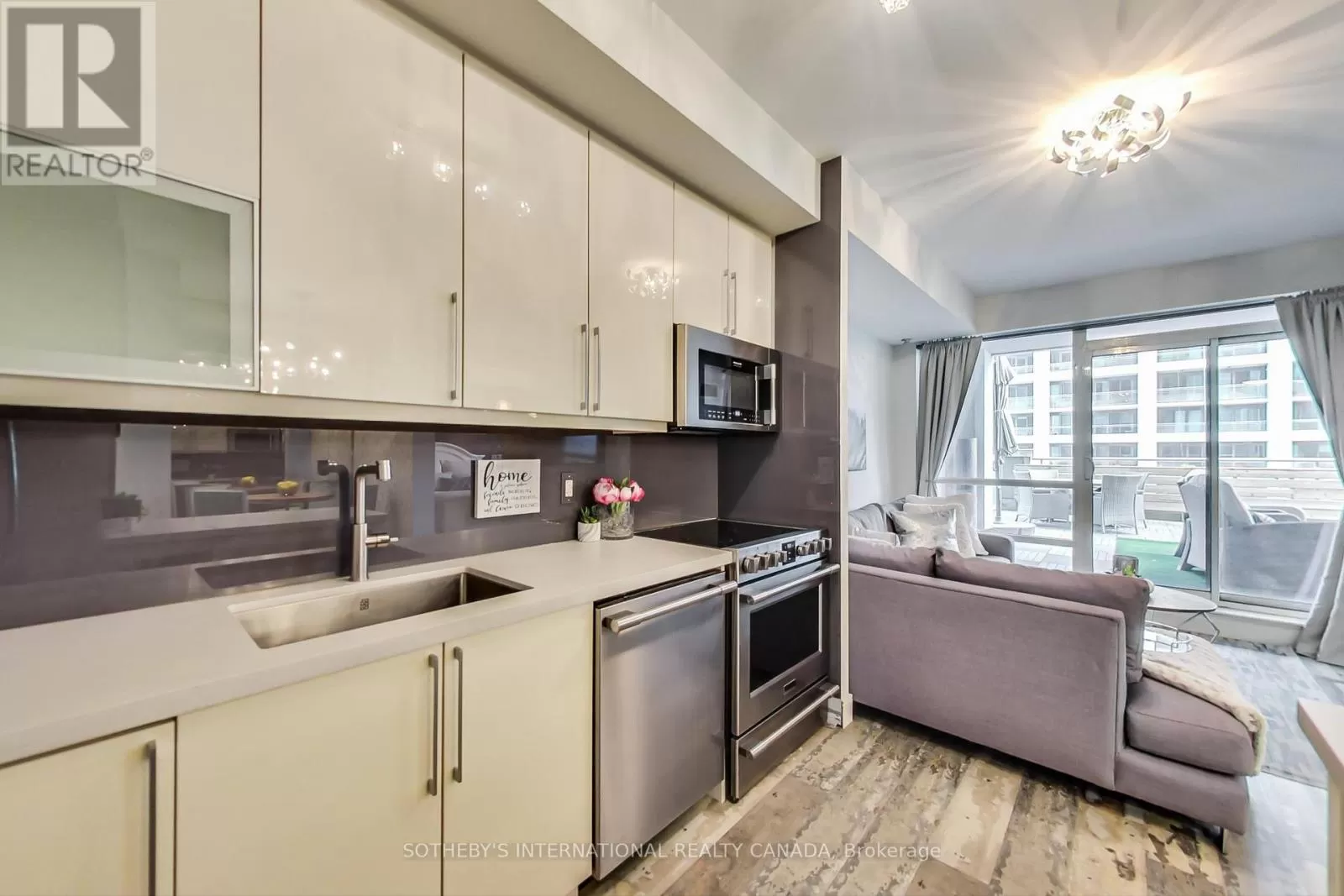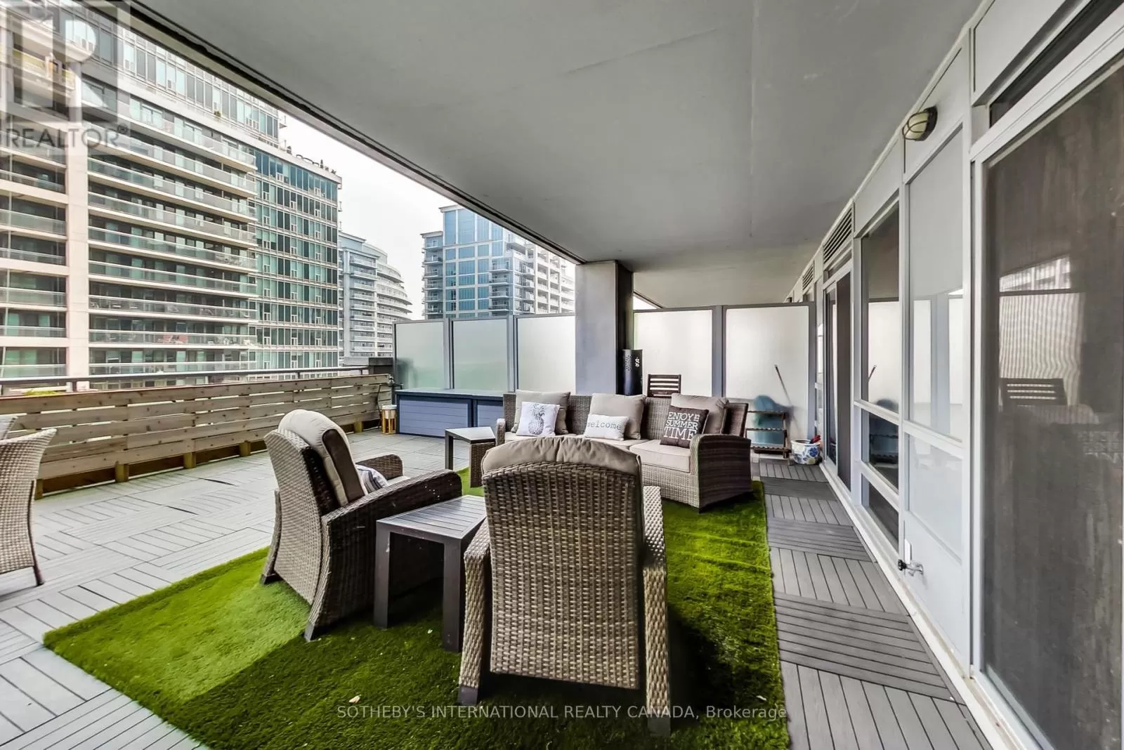 Lakeshore Blvd W./ Park Lawn This is a wonderful opportunity to live in this fabulous and stylish 1 + den unit featuring a large 507 sq ft terrace with incredible lake views. The spacious open concept layout allows for easy entertaining, or enjoy your morning coffee or evening cocktails on the large terrace that is almost as large as the unit itself - only select units in the whole building have a terrace this size. The corner kitchen allows for extra countertop space and the custom kitchen island comes with the unit. Working from home? The den can be used as a desk/ office area or dining area. Worried about where to put all of your clothes? The bedroom has a large walk-in closet and there is plenty of other storage in the long foyer closet with built-in custom organisers inside. Had a long day at work? Relax in the jacuzzi bath. This unit has it all. Parking and locker included. Low maintenance fees. Move in and be on the terrace all Summer long.Humber Bay is one of the most in demand neighbourhoods in the city. Close enough to downtown Toronto, and with all of the benefits of living by the lake and green space. Amazing restaurants and bars and brunch spots are on your doorstep with the Westlake Village a few mins walk away - Metro supermarket, LCBO, banks, gyms and more, or stroll to the famous San Remo bakery on a Saturday morning for those amazing doughnuts. Lake Ontario waterfront is steps from the front of the building with running & cycling paths to downtown Toronto, Mississauga & beyond. The streetcar runs just outside the building. Be on the Gardiner in less than 5 mins. This is a smoke free building (condo rules), no smokers allowed of any sort, even on the terrace. Amenities - indoor pool, sauna, gym, hot tub, billiards room, theatre, BBQ area, party room with kitchen, car wash, guest suites, visitor parking, 24 hr security. (id:27476)
