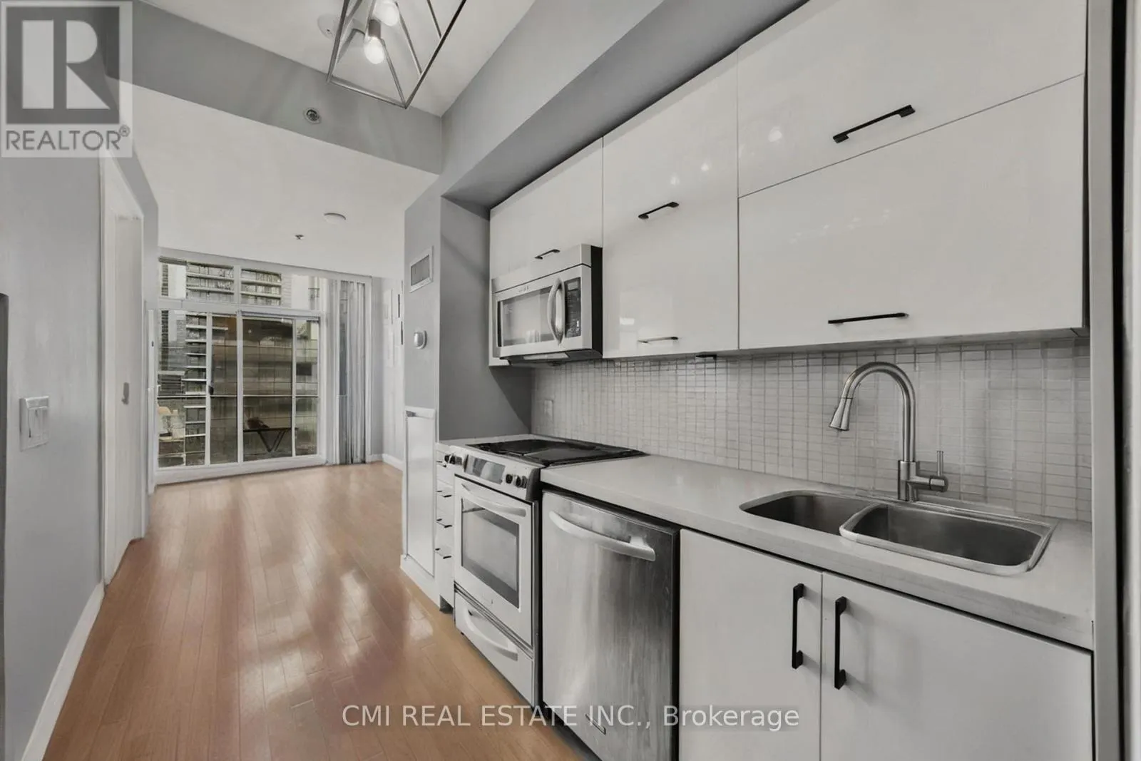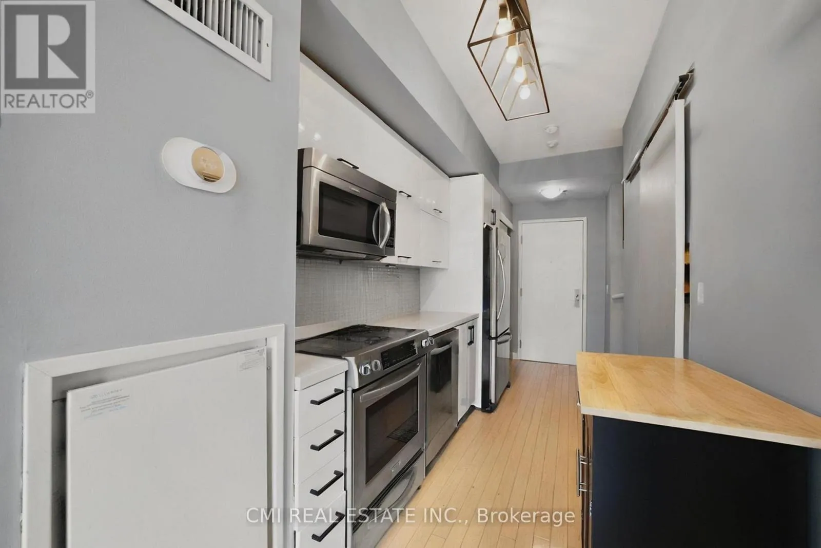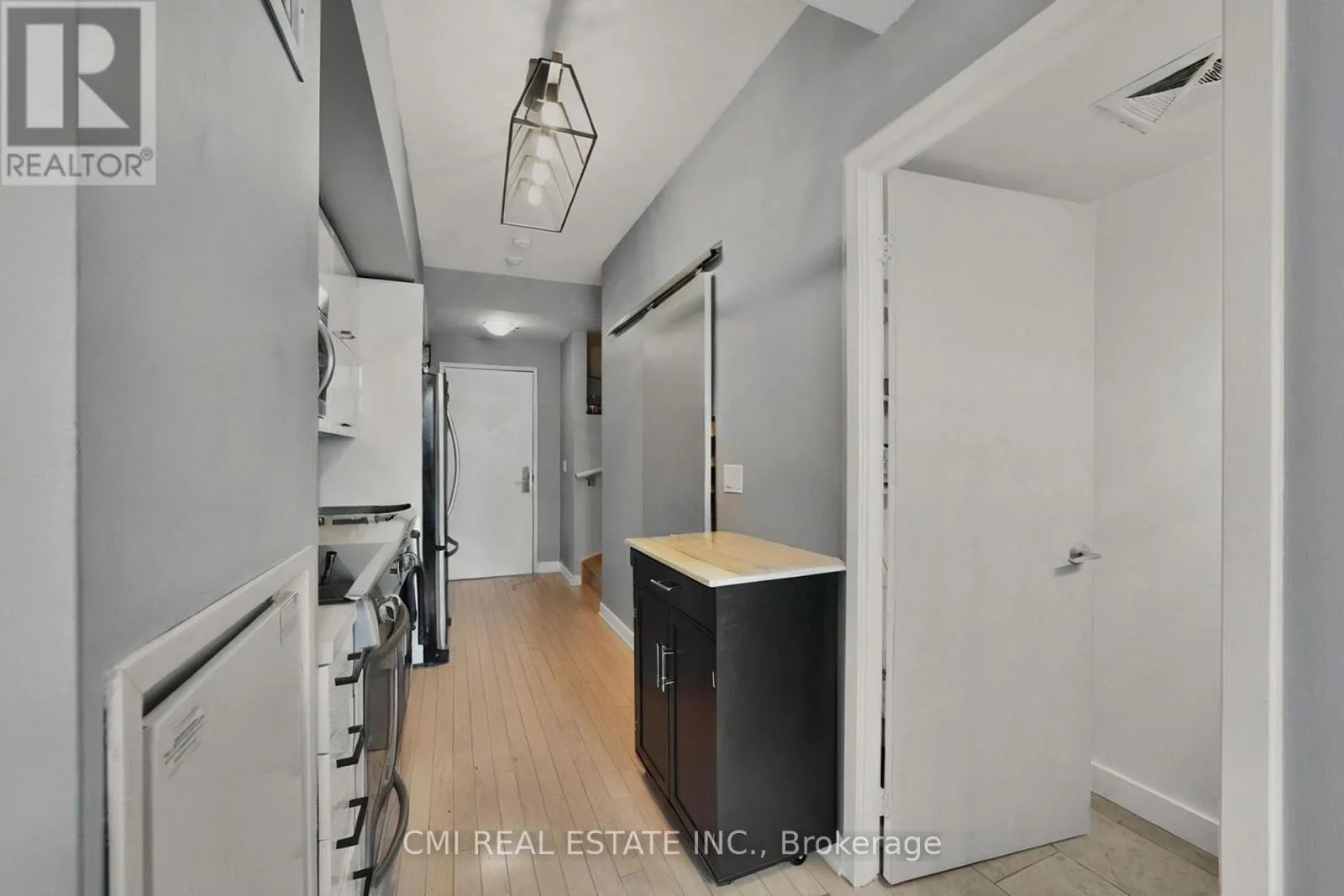 University Ave/ Adelaide St W Boutique Condos by renowned Urban Capital! Inspired by the look, feel & amenities of chic Boutique Hotels across Toronto! Located in the heart of Downtown mins to Financial & Entertainment district, TTC Osgoode Station at your doorstep making commute a breeze, steps to restaurants, shopping, recreational amenities, short drive to Gardiner. * Enjoy everything Toronto has to offer * Presenting this Lower Penthouse 2-storey loft offering 1bed, 2baths over 600sqft of sleek stylish living space w/ parking & locker. Bright airy foyer presenting open-concept layout. * 10ft ceilings & Hardwood flooring thru-out * Chef's kitchen upgraded w/ tall modern gloss cabinetry, quartz counters, SS appliances, tile backsplash, & Pantry. Grand sun-filled living room w/ soaring near 20ft ceilings W/O to balcony ideal for morning coffee or evening drinks offering gorgeous South views. Venture upstairs to find loft-style bedroom over-looking the living space w/ 4-pc resort style ensuite & convenient upper laundry. Must See! Pictures virtually de-cluttered to protect tenant privacy (id:27476)