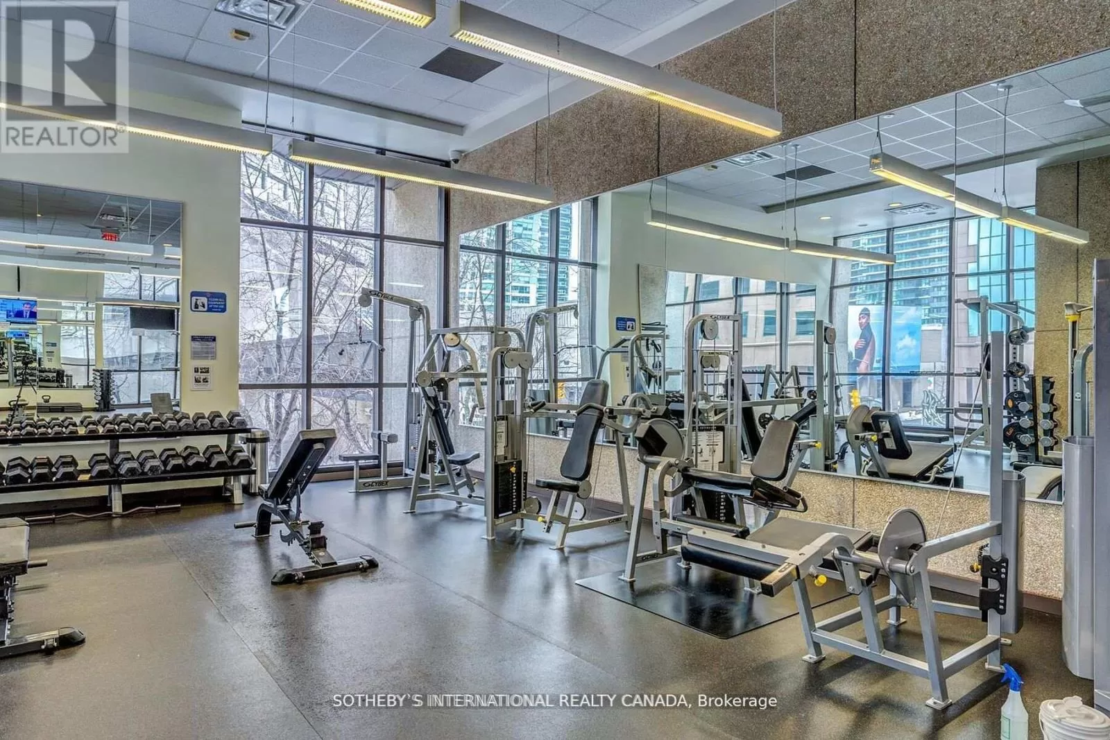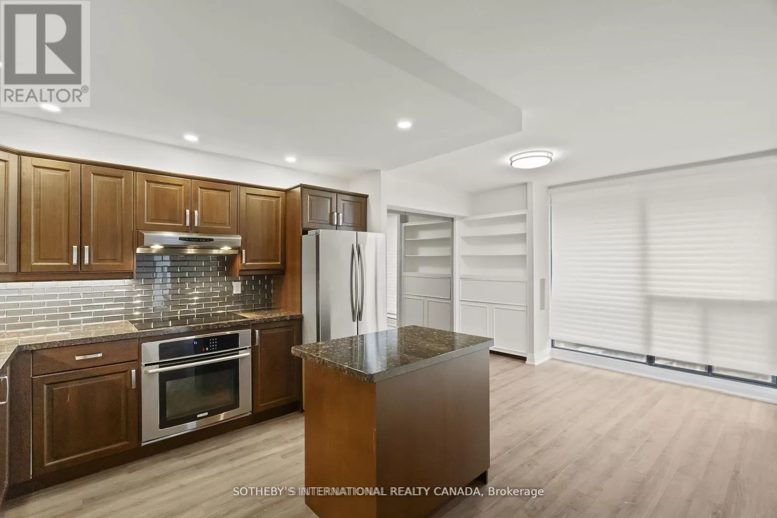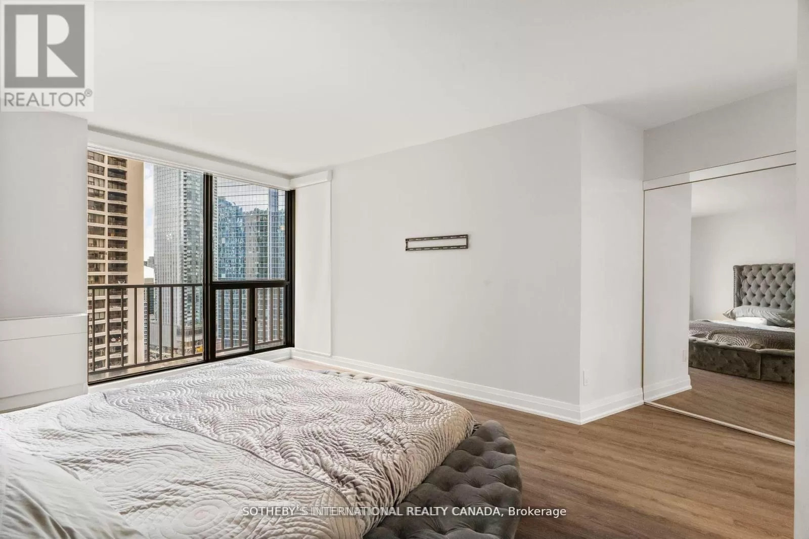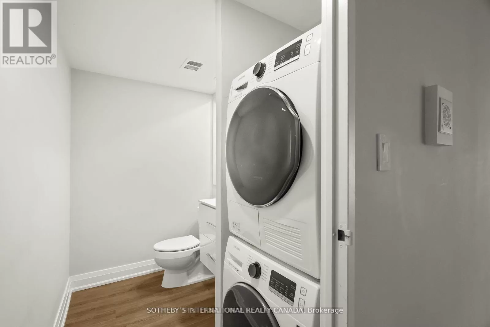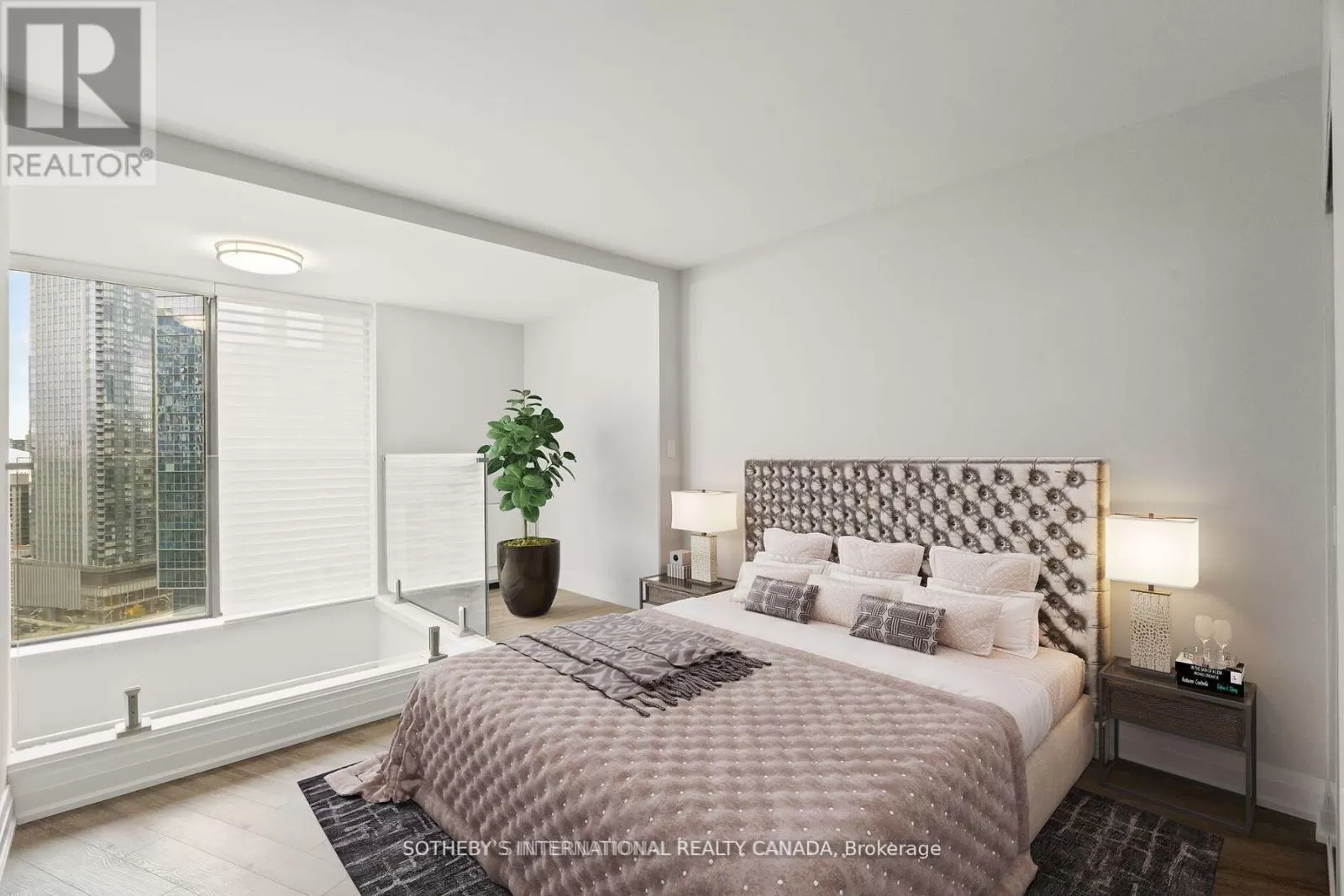 Queens Quay / Bay Immerse yourself in spectacular waterfront luxury living at Harbour Square with this two-storey, quality-updated and redesigned suite spanning approximately 1500 sq ft. The stunning stainless steel and glass staircase welcomes you into a space where modern elegance meets functionality. Enjoy the seamless blend of design and technology, 2 1/2 baths, ensuite laundry in 2pc guest bathroom, and an eat-in kitchen equipped with high-end appliances. Revel in the convenience of smartphone-operable remote blinds and Lutron lighting, while recessed lighting in the kitchen adds a touch of sophistication. Luxury vinyl flooring flows throughout, complemented by extra storage cleverly tucked under the staircase. Get a restful nights sleep in the Primary suite offering a large closet with built-ins and a spa-like 3pc ensuite bath. There is a second floor open-concept study/den, 2nd bedroom with large closet with organizers, large broom closet and linen closet and 4pc bath. Capture beautiful northwest city views from the comfort of your home. Elevate your lifestyle with this meticulously crafted residence that redefines contemporary urban living on the waterfront. Excellent building amenities include Party Room, fully equipped Gym, Indoor Pool on 35th floor, and Concierge Services. (id:27476)