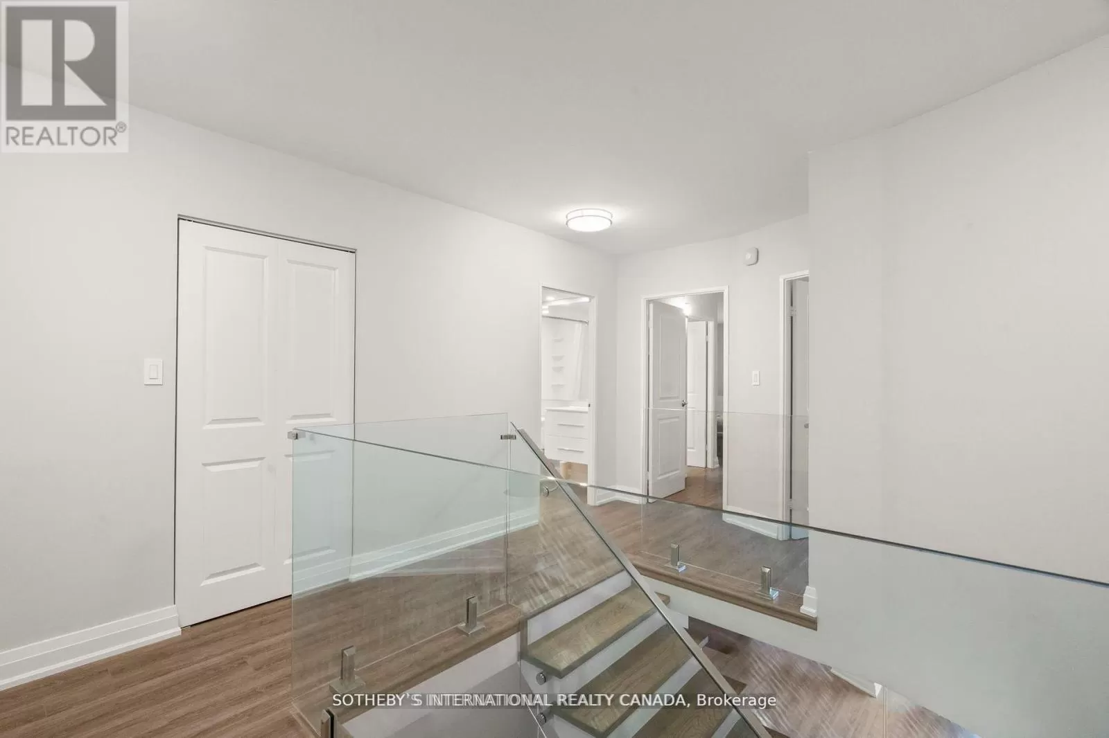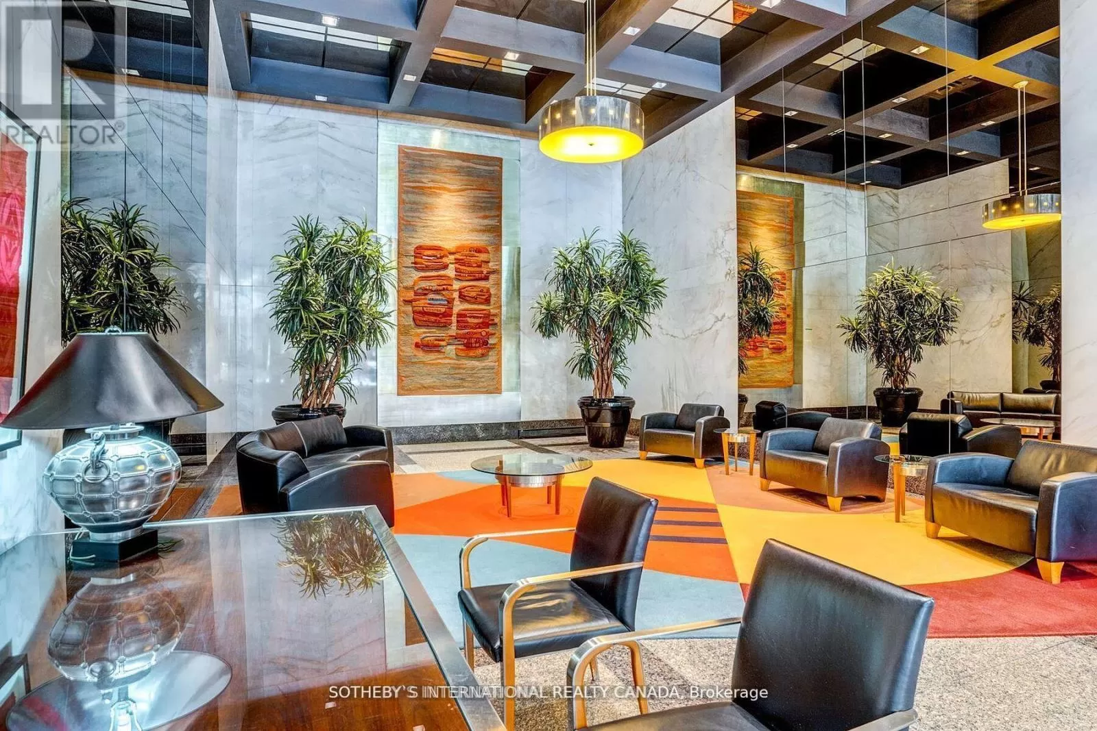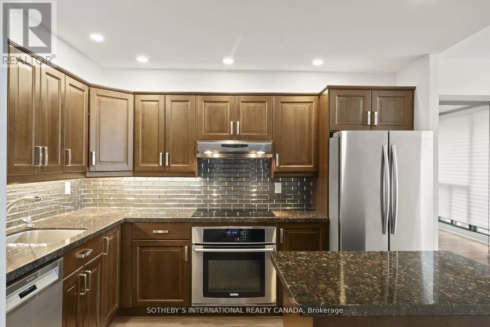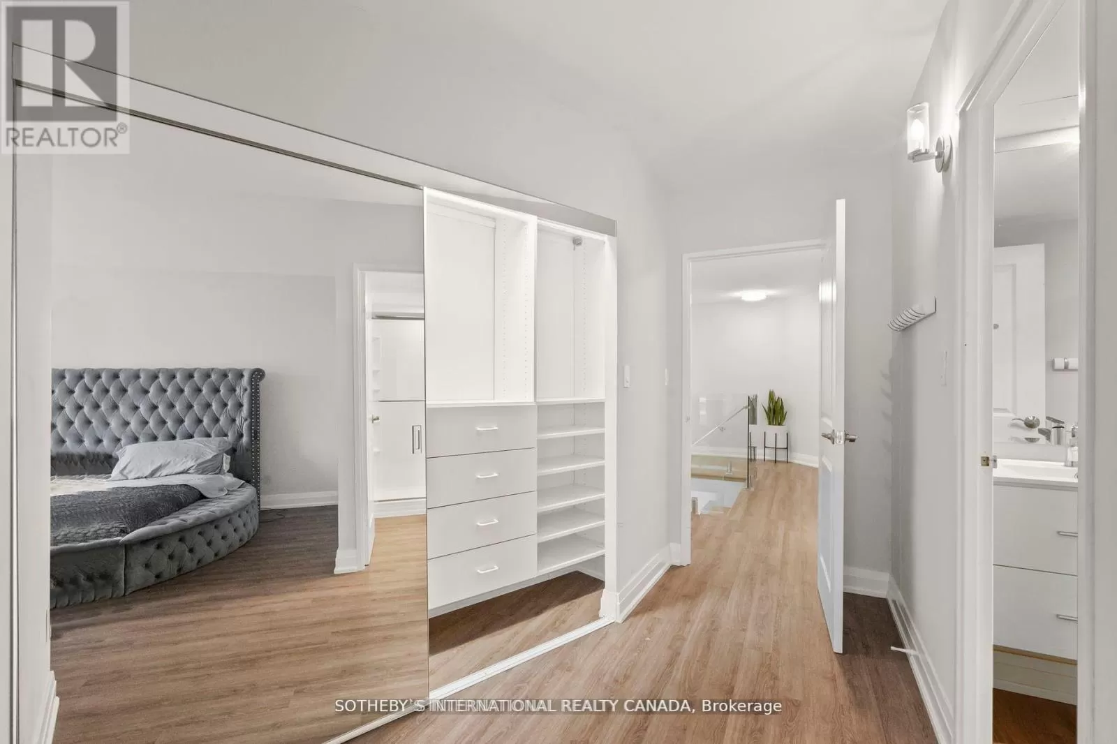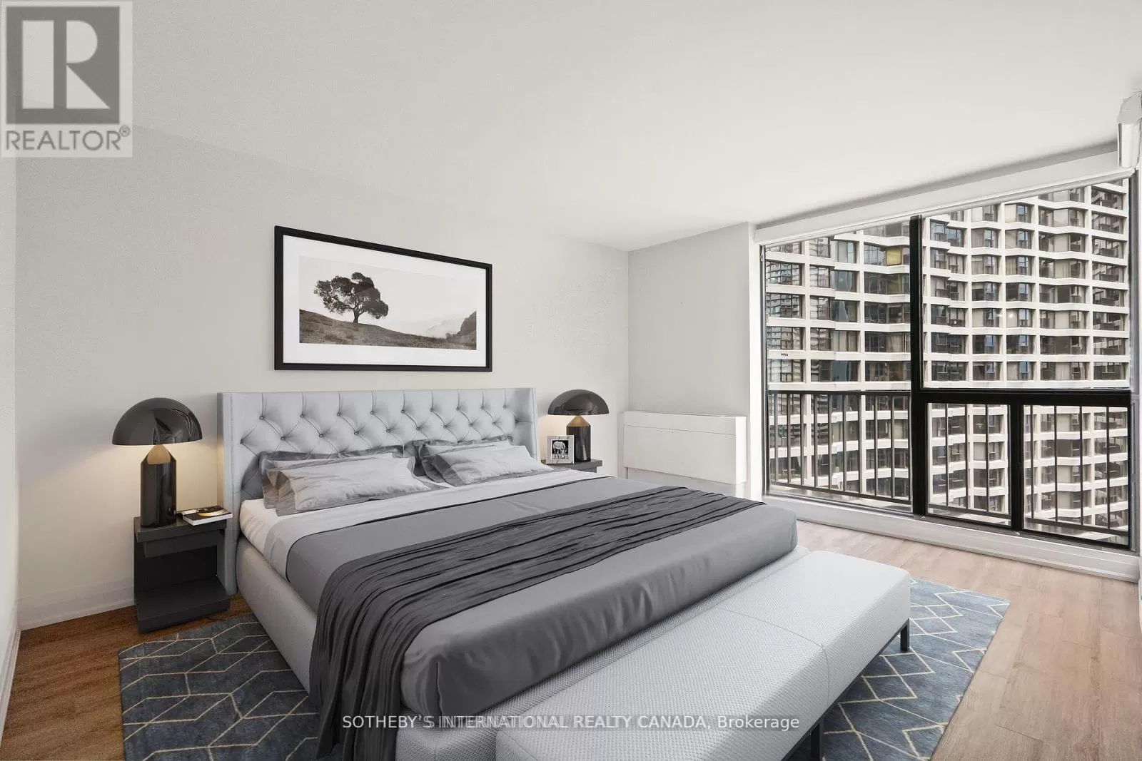 Queens Quay / Bay Immerse yourself in spectacular waterfront luxury living at Harbour Square with this two-storey, quality-updated and redesigned suite spanning approximately 1500 sq ft. The stunning stainless steel and glass staircase welcomes you into a space where modern elegance meets functionality. Enjoy the seamless blend of design and technology, 2 1/2 baths, ensuite laundry in 2pc guest bathroom, and an eat-in kitchen equipped with high-end appliances. Revel in the convenience of smartphone-operable remote blinds and Lutron lighting, while recessed lighting in the kitchen adds a touch of sophistication. Luxury vinyl flooring flows throughout, complemented by extra storage cleverly tucked under the staircase. Get a restful nights sleep in the Primary suite offering a large closet with built-ins and a spa-like 3pc ensuite bath. There is a second floor open-concept study/den, 2nd bedroom with large closet with organizers, large broom closet and linen closet and 4pc bath. Capture beautiful northwest city views from the comfort of your home. Elevate your lifestyle with this meticulously crafted residence that redefines contemporary urban living on the waterfront. Excellent building amenities include Party Room, fully equipped Gym, Indoor Pool on 35th floor, and Concierge Services. (id:27476)