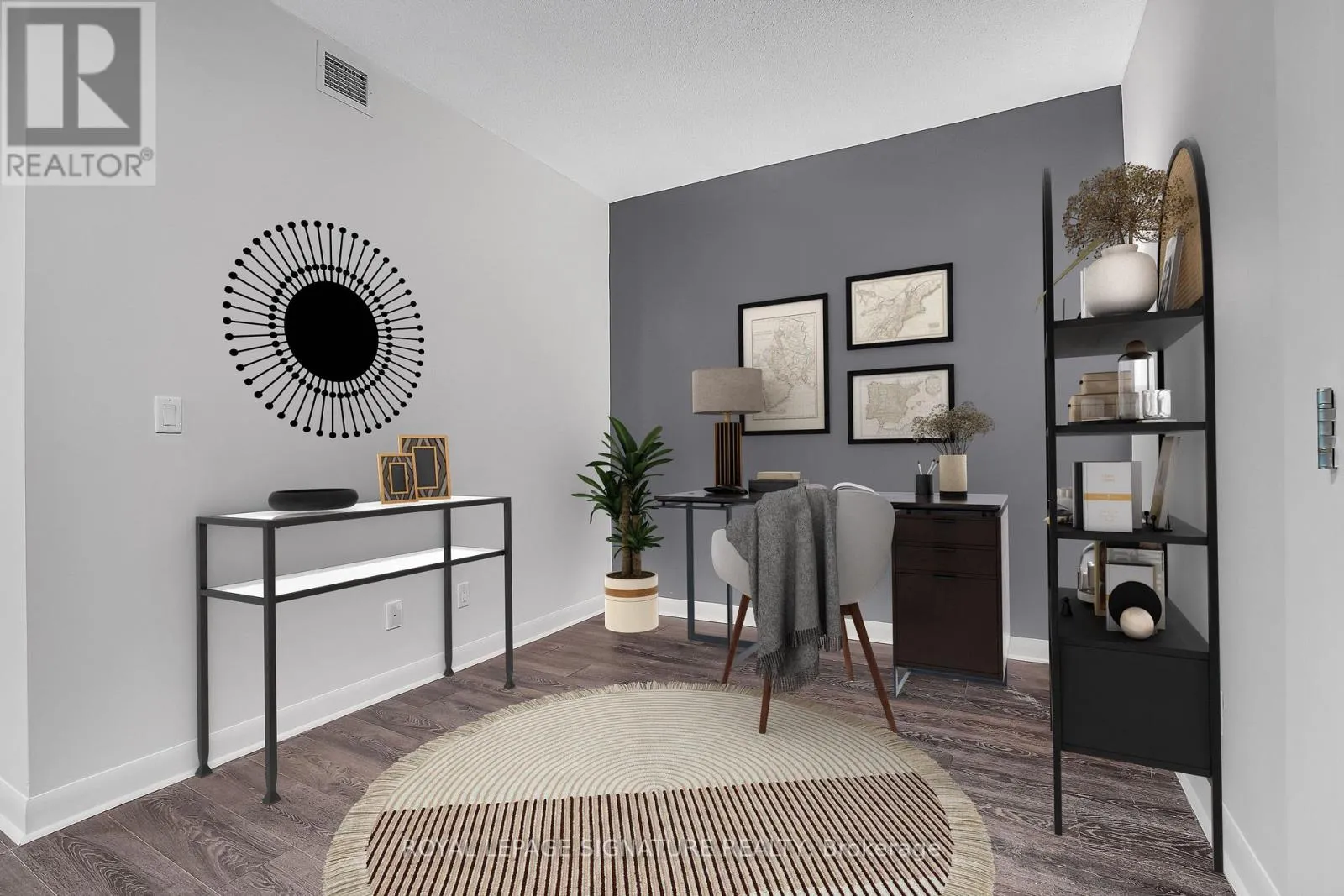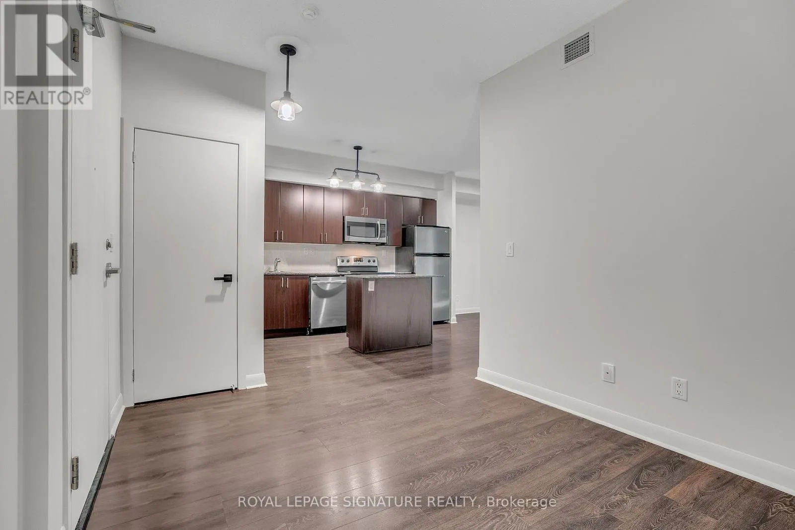 Cross Streets: Bathurst/Lakeshore. ** Directions: North of Lakeshore/West of Bathurst. Spacious 1+ den condo with walk-out balcony in a prime downtown location with parking & locker. This bright and functional 1+den layout features a spacious living room with walk-out to a private balcony, a modern kitchen with granite countertops, stainless steel appliances, and a centre island with breakfast bar perfect for entertaining or casual meals. The primary bedroom impresses with wall-to-wall, floor-to-ceiling windows and a large walk-in closet. Stylish laminate flooring flows throughout the unit. Amenities include: Concierge, fitness centre, party/meeting room, rooftop garden, visitor parking. Situated in a centrally located boutique building near the Lake, Billy Bishop Airport, CNE, major sports stadiums, financial and entertainment districts, plus steps to the grocery store and LCBO. Ideal for professionals, investors, or anyone seeking vibrant downtown living! (id:27476)