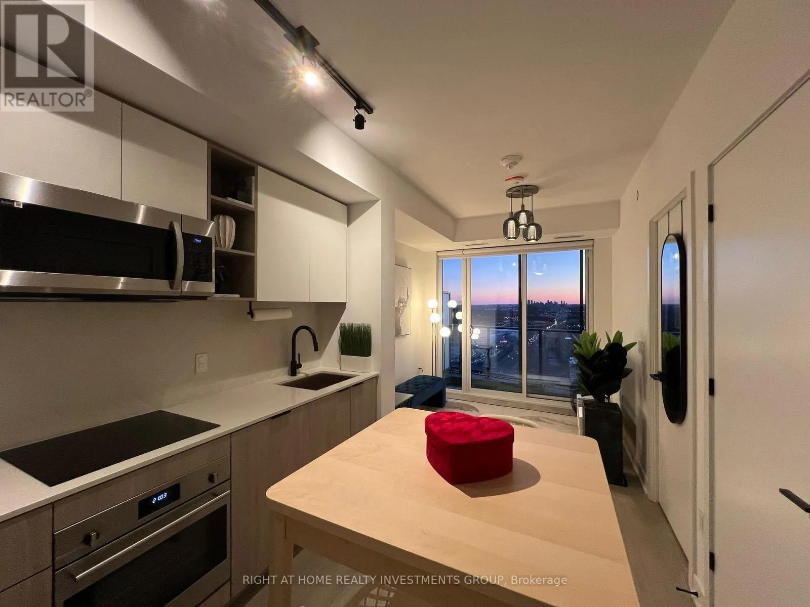 The Queensway & Kipling Ave Welcome to elevated living in this beautifully upgraded one-bedroom suite perched on the 32nd floor, offering breathtaking, unobstructed west facing views. Bathed in natural light, this unit features a thoughtfully designed layout with modern finishes and premium upgrades throughout. Enjoy a sleek, contemporary kitchen, spacious open-concept living area, and a private balcony perfect for sunset views. The generously sized bedroom offers comfort and functionality, complemented by ample storage. This unit includes a dedicated parking space and secure locker for added convenience. Perfect for dog lovers. Steps away from the off-leash dog park with dog splash pad. Located in a well-maintained building with top-tier amenities including pet spa, you're just steps away from transit, shopping, dining, and more. Free shuttle to Kipling station for the residents. Ideal for professionals or investors this is high-rise living at its finest. (id:27476)