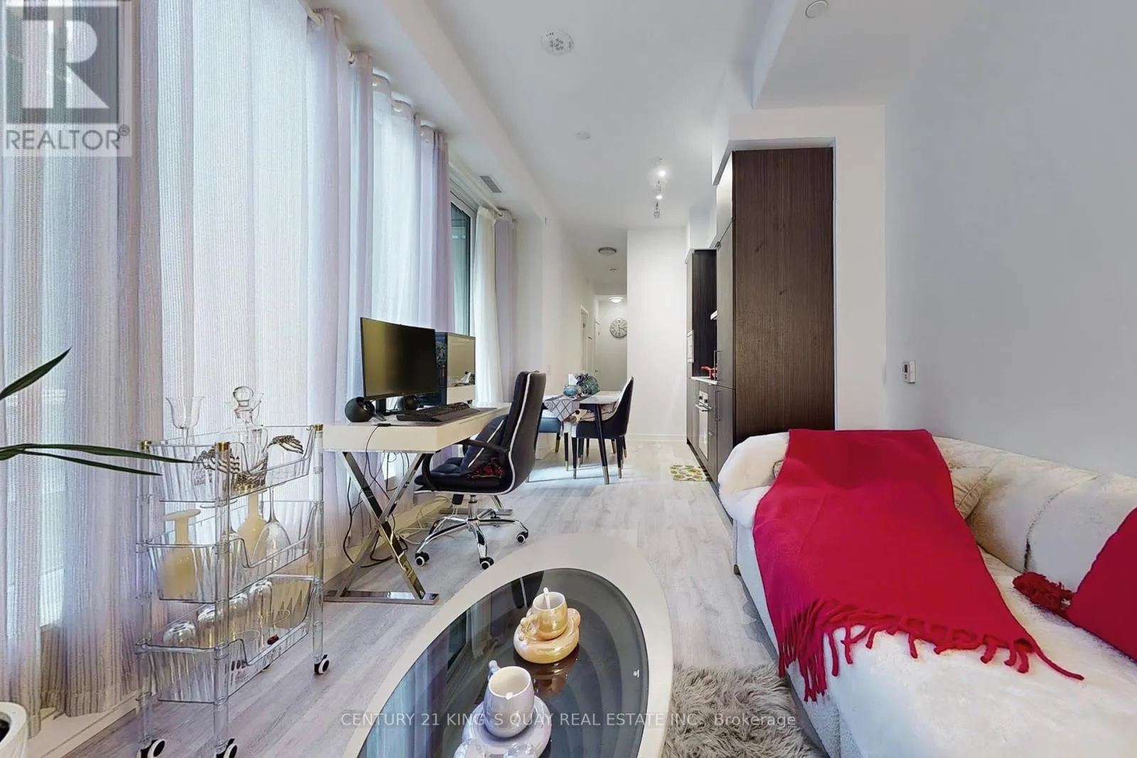 Cross Streets: Yonge/Finch. ** Directions: East of Yonge/North of Finch. Welcome to this cozy one bedroom unit at M2M North Tower in the heart of North York. Less than one year new, unique layout with 609 SqFt interior and walk-out to quiet & private terrace overlooking landscaped rooftop garden. 9 ft ceilings and laminate flooring through-out, mirrored closet in extra wide foyer, integrated high-end stainless steel appliances in kitchen, large walk-in closet in primary bedroom. State-of-the-art amenities include Theatre Room, Multi-Purpose Entertainment Room, Yoga Studio, Cardio Fitness Centre, Fitness Centre, Sauna, Children's Play Area, Outdoor Play Area on 3rd/4th floors; Party Room & Lounge, Dining Room w/ Full Chef's Kitchen, Lounge Area, BBQ & Outdoor Dining Area, Infinity Pool w/ Waterfall Feature on 9th floor; H-Mart coming soon on ground floor. M2M is en route to anywhere in the Greater Toronto Region, Hop on the subway, GO transit or expressway and arrive with ease and speed. Also close to parks, schools, library, shops and countless restaurants with flavours from all around the world. (id:27476)