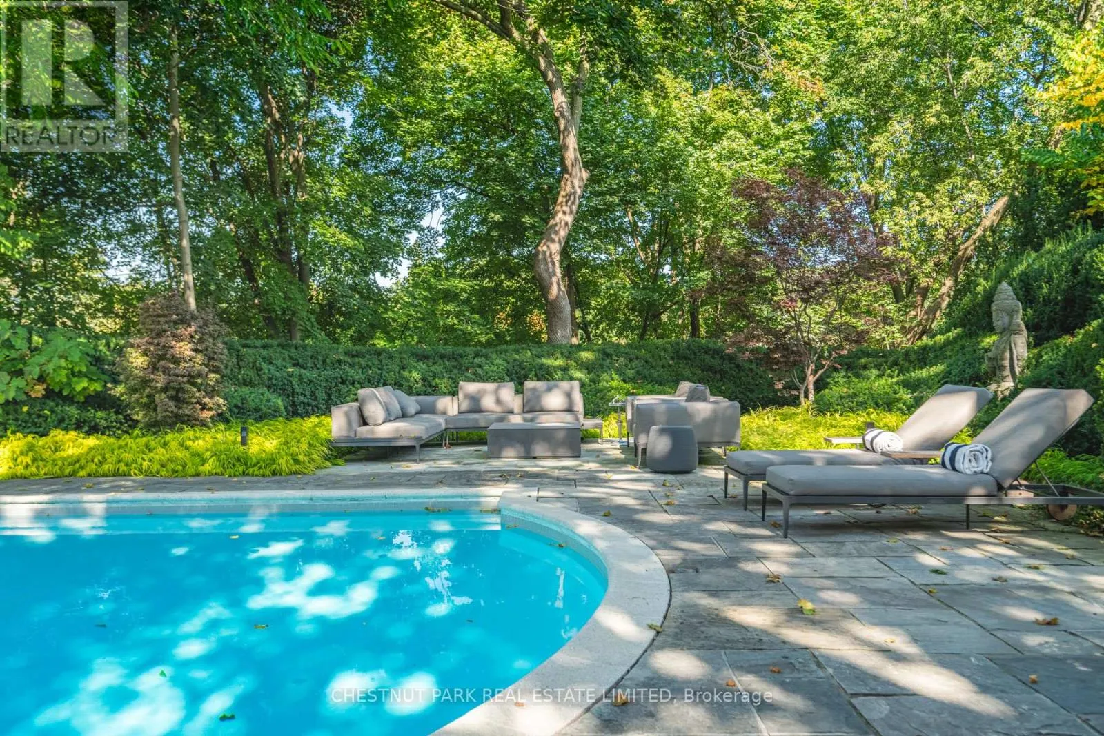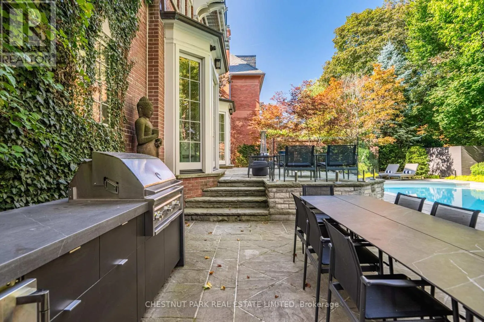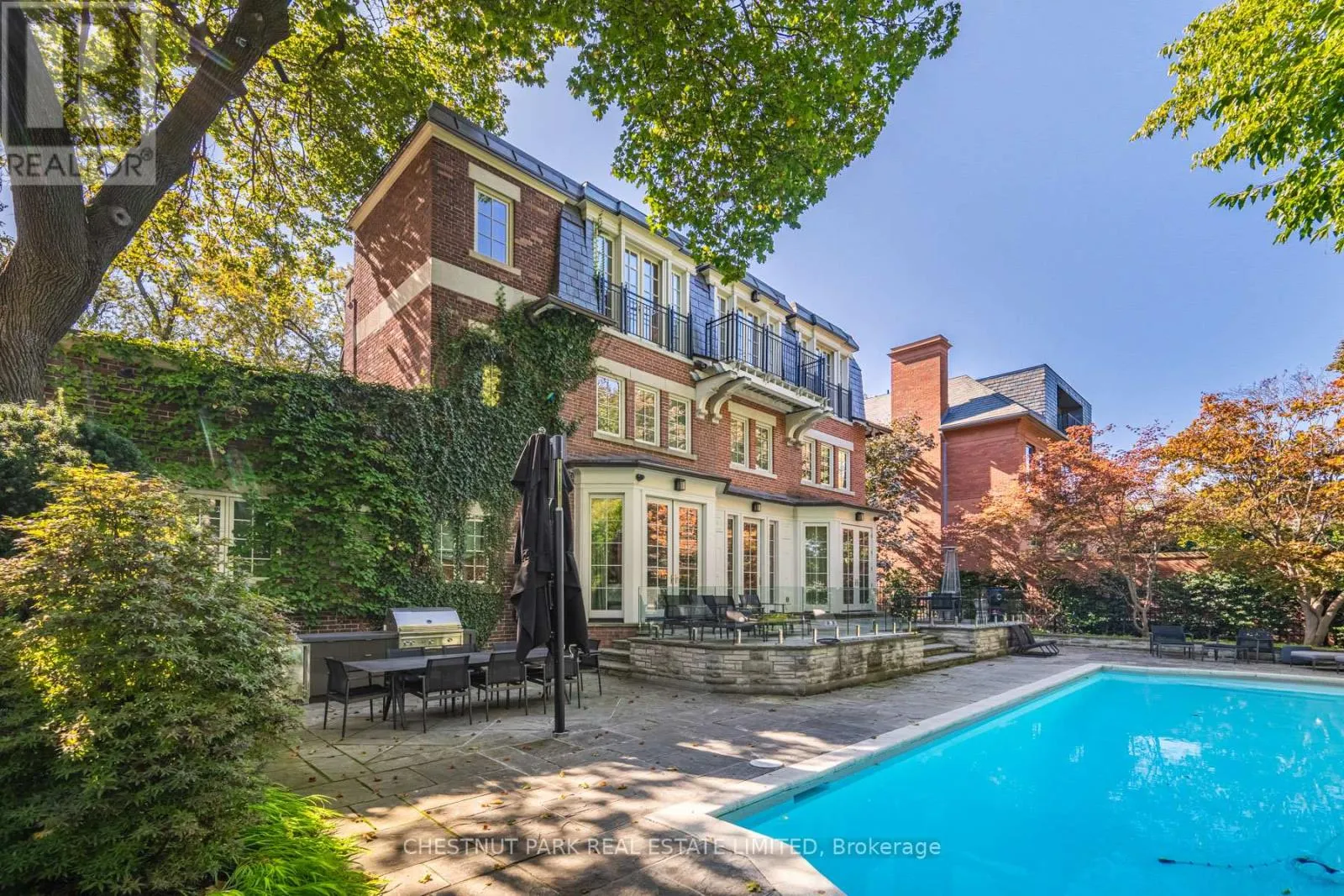 Cross Streets: Roxborough/Mount Pleasant. ** Directions: East of Yonge, north of Roxborough Street East. Endless Summer in a Poolside Paradise with 7-Star Resort-Style Luxury! Experience the ultimate retreat in the highly sought-after Rosedale neighborhood, west of Mt. Pleasant. This expansive 85-foot-wide tableland property sits atop the exclusive Chestnut Park ravine, overlooking serene parkland below. A true garden oasis, the stunning oversized pool is virtually irreplaceable in this area, creating an idyllic opportunity for a captivating & private escape. Spanning nearly 8,000 square feet, this elegant Georgian residence is in a picture-perfect position on this magically lamp-lit street just 2 blocks from Yonge. The home features stunning multiple terraces for sitting, dining, and entertaining, complete with an outdoor kitchen. Inside, discover serene, curated interiors & an exceptionally sumptuous primary suite with his & her separate dressing rooms. This trophy property blends timeless grace, alluring charm, & unparalleled privacy with the convenience of everyday luxury in a prized neighborhood. Additional highlights include an ELEVATOR, generator, garage with lift, & ensuite bathrooms in all bedrooms. Set beneath a lush, treed canopy, you are just steps from the subway, top private & public schools, premier shopping, area parks, tennis, skating & hiking & biking trails extending to the lake. Plus, Yorkville & the city center are only a 10-minute drive away. (id:27476)