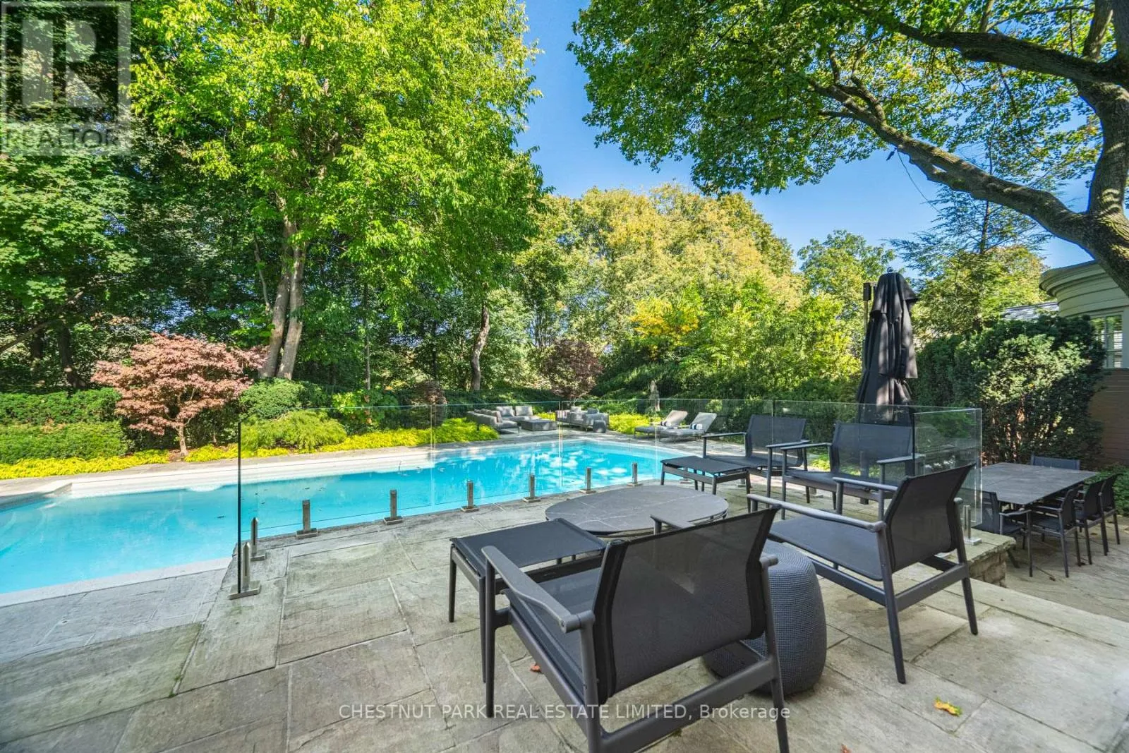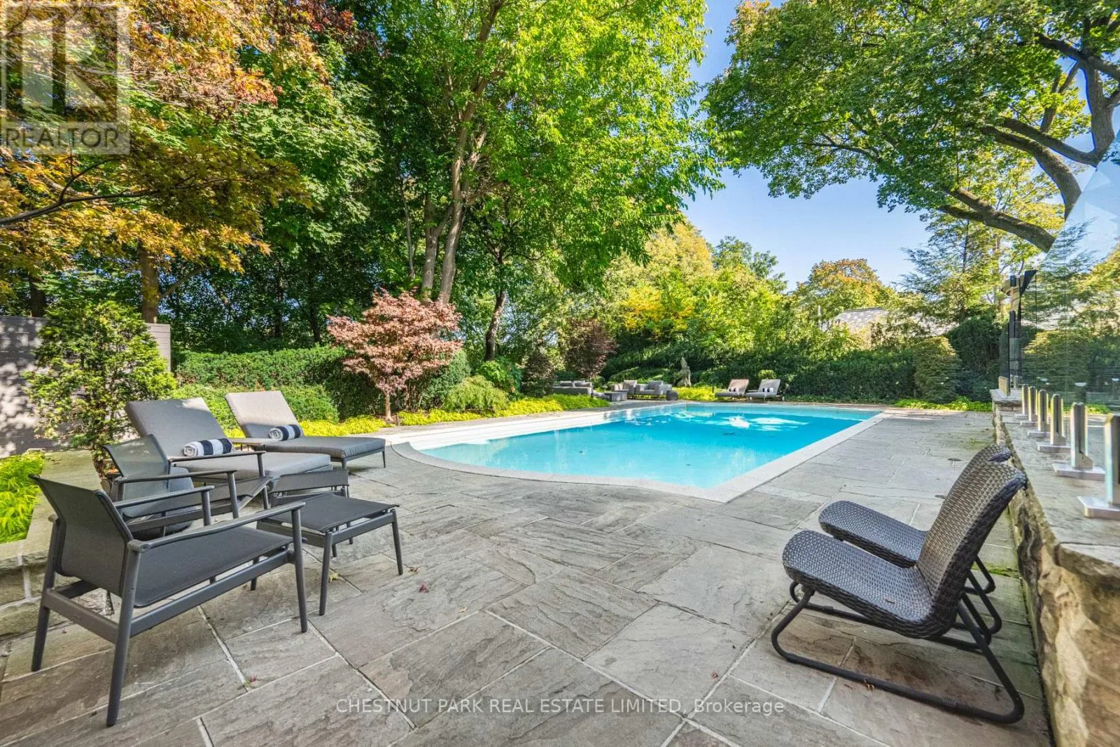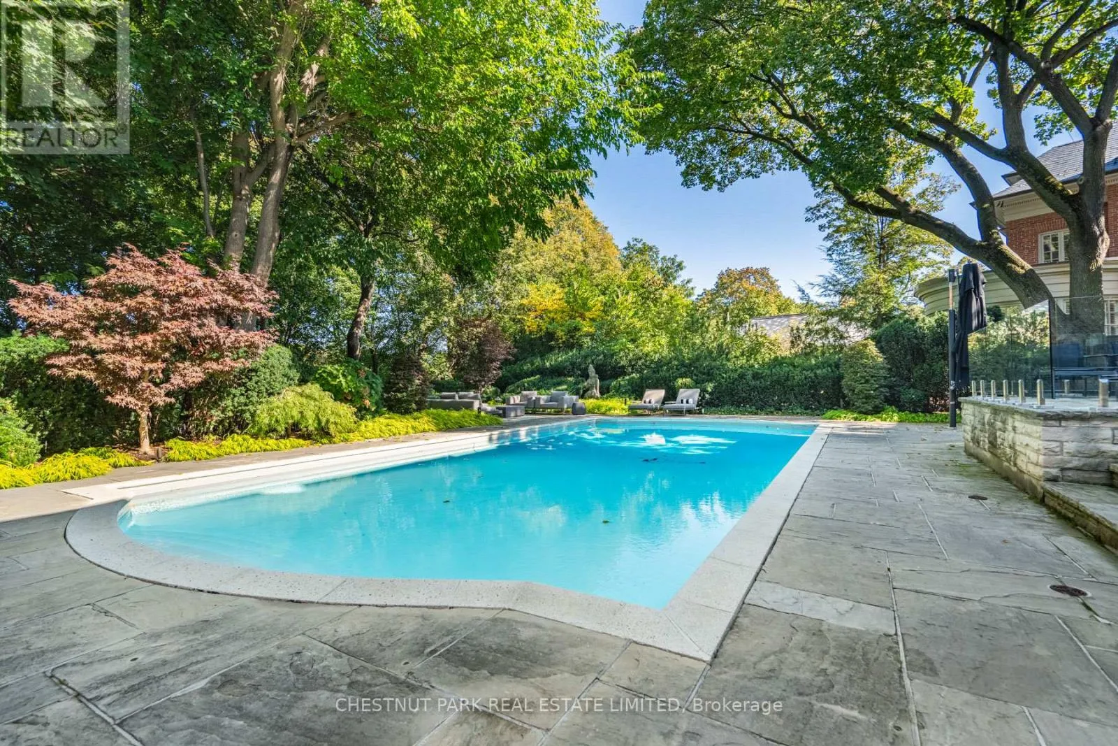 Cross Streets: Roxborough/Mount Pleasant. ** Directions: East of Yonge, north of Roxborough Street East. Endless Summer in a Poolside Paradise with 7-Star Resort-Style Luxury! Experience the ultimate retreat in the highly sought-after Rosedale neighborhood, west of Mt. Pleasant. This expansive 85-foot-wide tableland property sits atop the exclusive Chestnut Park ravine, overlooking serene parkland below. A true garden oasis, the stunning oversized pool is virtually irreplaceable in this area, creating an idyllic opportunity for a captivating & private escape. Spanning nearly 8,000 square feet, this elegant Georgian residence is in a picture-perfect position on this magically lamp-lit street just 2 blocks from Yonge. The home features stunning multiple terraces for sitting, dining, and entertaining, complete with an outdoor kitchen. Inside, discover serene, curated interiors & an exceptionally sumptuous primary suite with his & her separate dressing rooms. This trophy property blends timeless grace, alluring charm, & unparalleled privacy with the convenience of everyday luxury in a prized neighborhood. Additional highlights include an ELEVATOR, generator, garage with lift, & ensuite bathrooms in all bedrooms. Set beneath a lush, treed canopy, you are just steps from the subway, top private & public schools, premier shopping, area parks, tennis, skating & hiking & biking trails extending to the lake. Plus, Yorkville & the city center are only a 10-minute drive away. (id:27476)