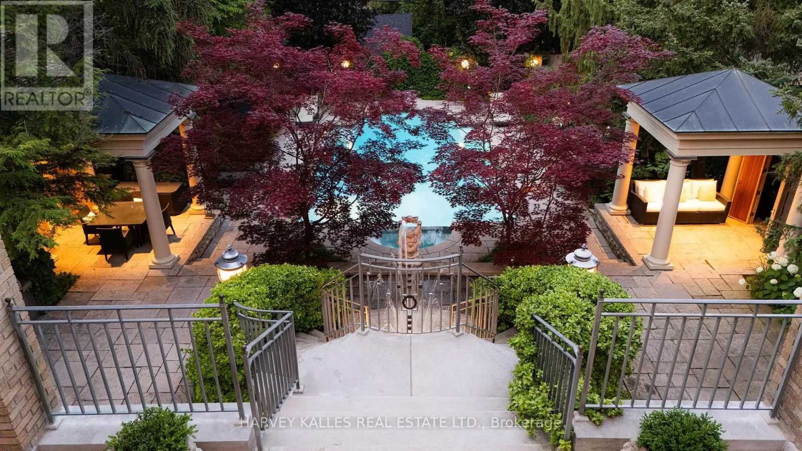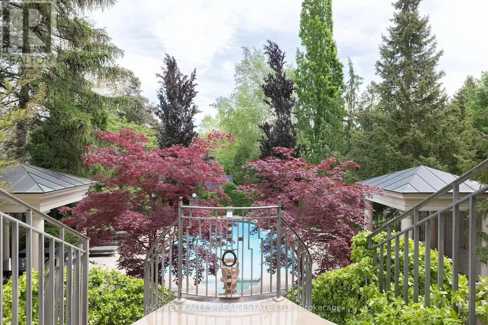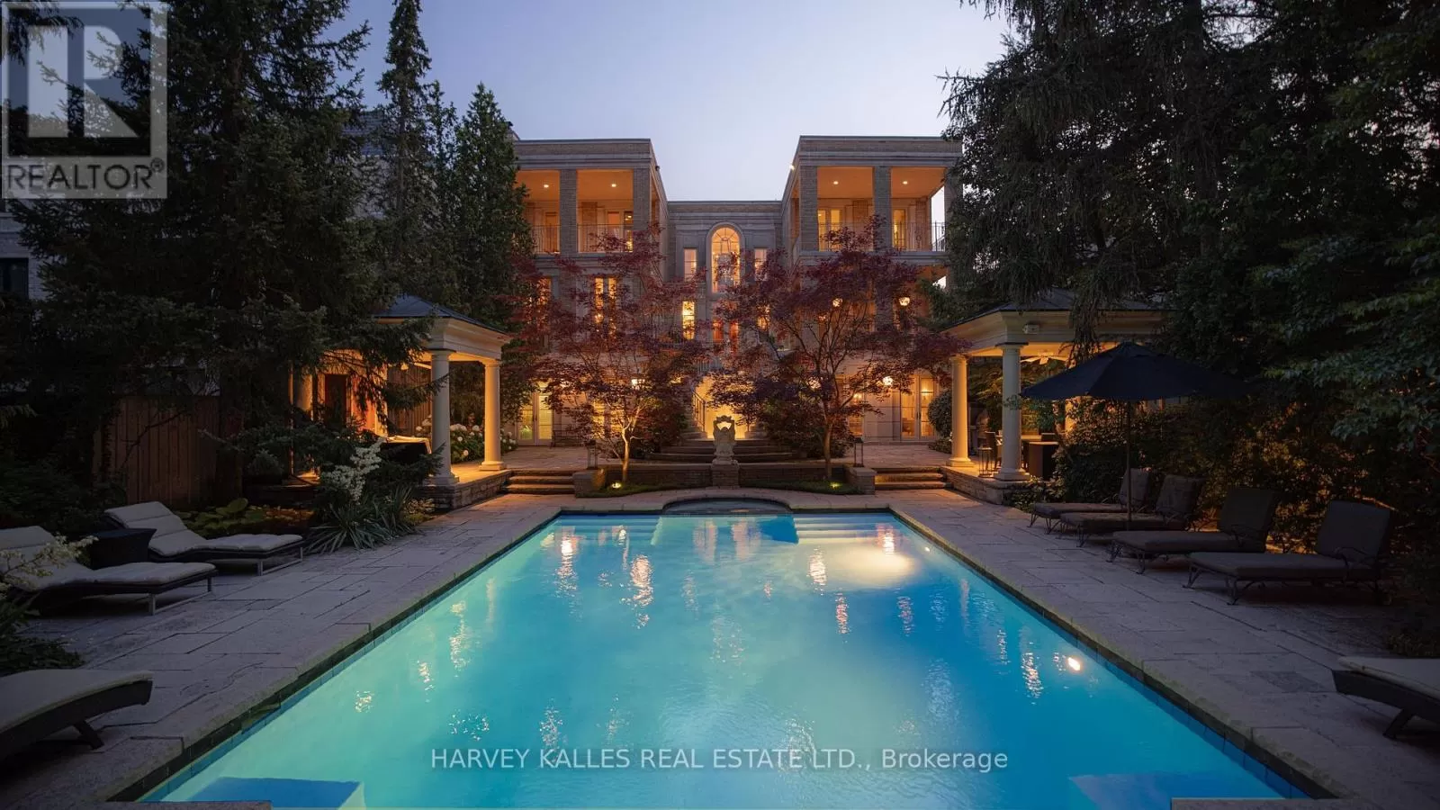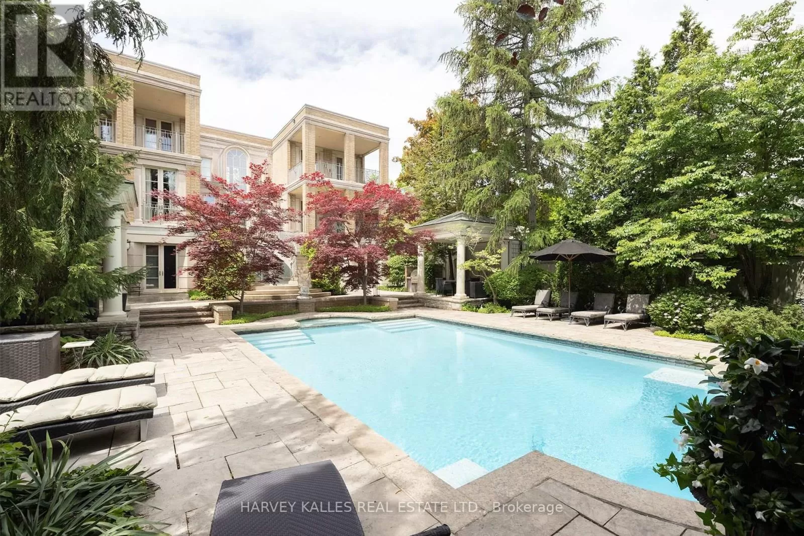 Cross Streets: Kilbarry Rd. ** Directions: Avenue Rd south to Hillholm Rd, west to Dunvegan, north on Dunvegan to 173. Majestically situated on one of Forest Hills most prestigious streets, this captivating residence masterfully designed by world-renowned architect Gordon Ridgely exemplifies timeless elegance and impeccable craftsmanship. Rooted in classical principles of symmetry, proportion, and balance, the home offers a remarkable blend of grandeur and comfort, ideal for both lavish entertaining and refined everyday living. A wealth of floor-to-ceiling windows, French doors, Juliette balconies, and multiple terraces bathe the interior in natural light, creating an airy, seamless flow throughout the living spaces. Exquisite finishes abound, including wide-plank mahogany hardwood floors and Indiana limestone flooring. The mahogany-paneled library, complete with a wood-burning marble fireplace, offers a warm and sophisticated retreat. A dramatic double staircase leads to the second level, where the serene primary suite features its own fireplace, a spacious walk-in dressing room, and walkout to a private covered terrace. The lower level is a haven for relaxation and recreation, boasting a full spa, entertainment and exercise rooms, and walkouts to beautifully landscaped gardens. Outdoor highlights include a charming gazebo, built-in BBQ, elegant fountain, and a stunning pool all shaded beneath a canopy of mature trees, providing an idyllic and private setting. An incomparable sense of privacy radiates timeless grace and charm, offering a sanctuary in the heart of the city. Perfectly positioned in an enviable location, this distinguished address places you within walking distance of Toronto's finest private and public schools, the boutiques and cafés of Forest Hill Village, premier recreational facilities, and just minutes from downtown and the financial district. (id:27476)