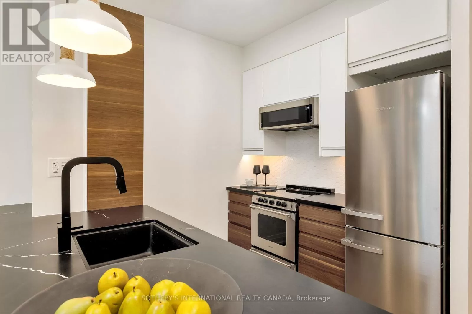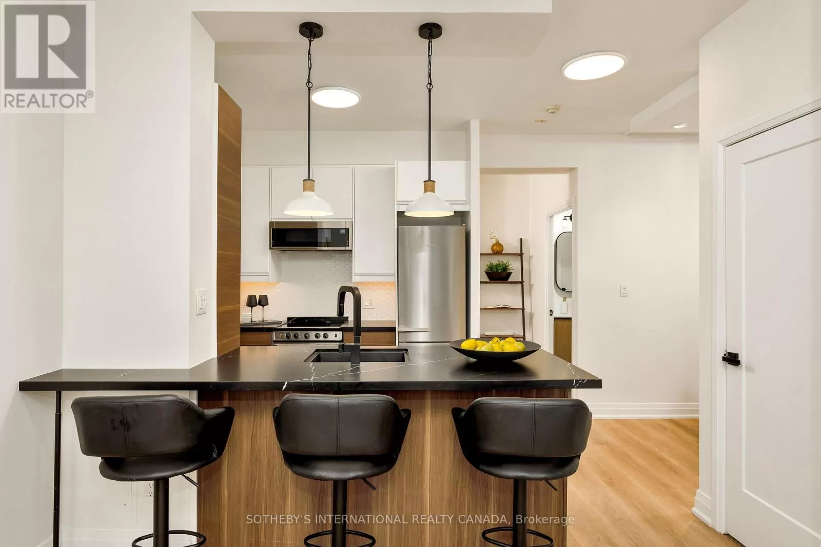 Bloor/Islington Boutique Kingsway condo in a prime location! This fully renovated, south-facing 1 bedroom + den suite is ideally located just steps from Islington Subway Station, offering unmatched convenience and connectivity. Enjoy a vibrant urban lifestyle with Sobeys, cafés, restaurants, and everyday essentials just across the street, plus nearby access to Tom Riley Park and the shops and dining of The Kingsway Village.Inside, the suite has been completely transformed, featuring a custom kitchen with high-end appliances and breakfast bar, a modern bathroom, premium wide-plank vinyl flooring, a new walk-in closet, and more. The 9 ft ceilings and open balcony create a bright, airy atmosphere, while the versatile den can be used as a home office, dining area, or guest space.Residents enjoy access to a concierge, gym, rooftop terrace, party room, and more. Maintenance fees include heat/AC, water, Bell Fibe cable TV, and Bell Fibe high-speed internet. Includes 1 parking spot, 1 locker, and plenty of visitor parking in this well-managed boutique building. A rare opportunity to own a fully upgraded suite in one of Etobicoke's most desirable communities. (id:27476)