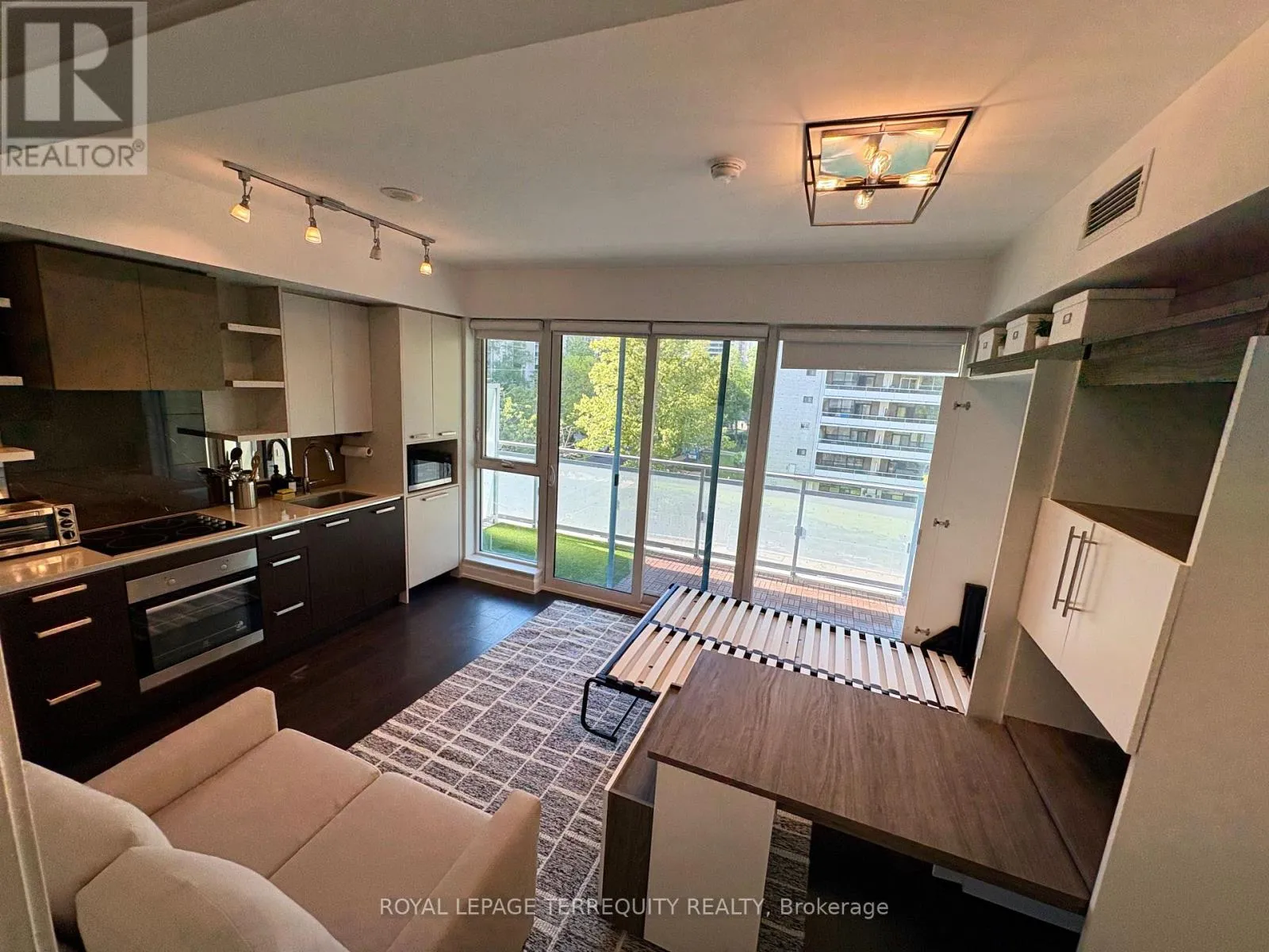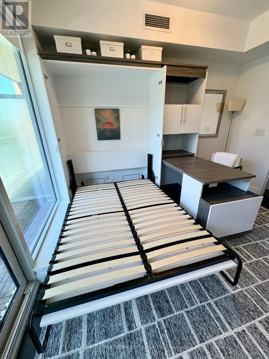 Bloor St / Keele St Live across from High Park in this sleek, semi-furnished studio with smart built-ins & standout amenities. Designed for comfort & function, it features a queen-sized Murphy bed with storage & a built-in desk, ideal for saving space & money. Open layout with a sofa & space for a small dining table, designed for flexible, efficient living. Floor-to-ceiling windows open to a private balcony. In-suite laundry, window blinds, designer lighting & storage locker included. In the award-winning High Park Residences by Daniels, steps from two TTC stations, GO Transit & Bloor West shops & dining. Enjoy 24/7 concierge & resort-style amenities: gym, sauna, theatre, party/meeting rooms, billiards lounge, indoor climbing wall & two rooftop terraces. In-building café, Italian restaurant, convenience store & free visitor parking. Perfect for a single or couple professionals, grad students or remote workers, seeking a versatile home near High Park & Lake Ontario. Move-in ready. No smoking. Hydro extra. (id:27476)