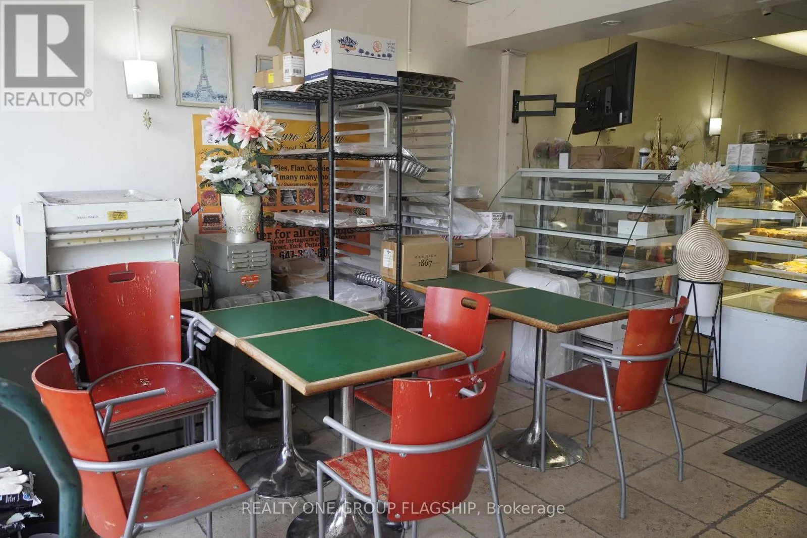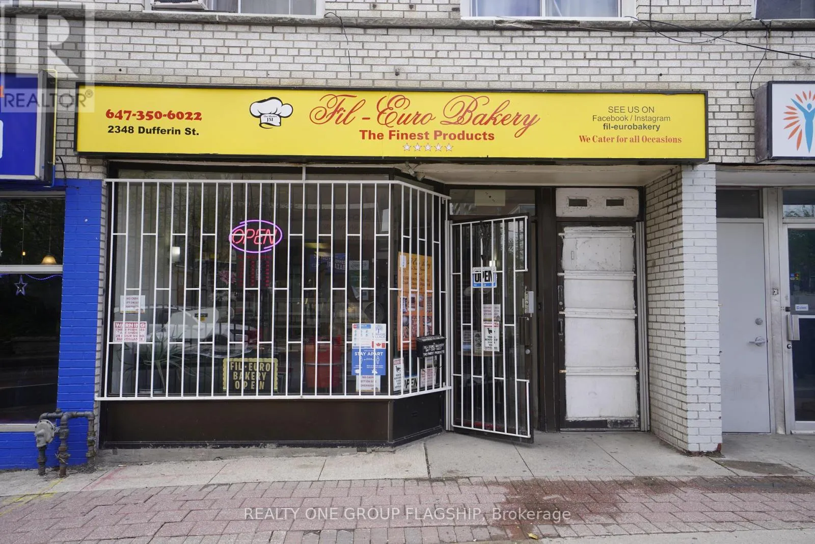 Cross Streets: Dufferin and Eglinton. ** Directions: 2348 Dufferin St, York, ON M6E 3S4. Bakery for Sale Prime Location! Eglinton and Dufferin Street, right in front of the upcoming subway project (opening Fall 2025). This well-established bakery has been a beloved fixture in the community for 12 years, known for its stable income and loyal clientele. The current owners are retiring, presenting a fantastic opportunity for new ownership. Stable Revenue: Consistent income over the past decade. Affordable lease with potential for a new 5-year contract. Operating hours can be adjusted to fit your business model. High Foot Traffic, Located in a bustling area with excellent visibility. Outdoor Patio Space, Perfect for enhancing customer experience. All necessary equipment is included, allowing you to open and operate immediately as a bakery, coffee shop, or pizza restaurant. A detailed list of included equipment is available upon request. Financial statements can also be provided for serious inquiries. (id:27476)