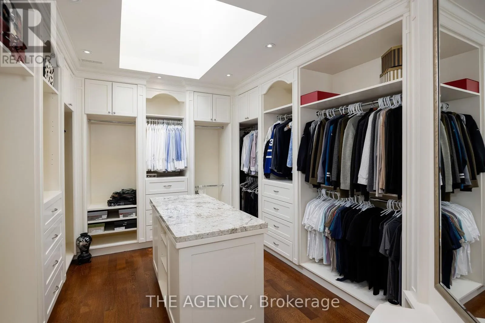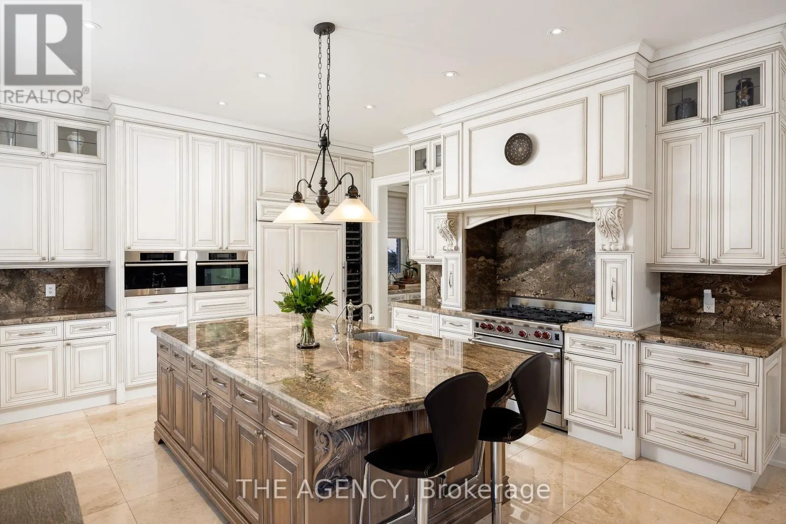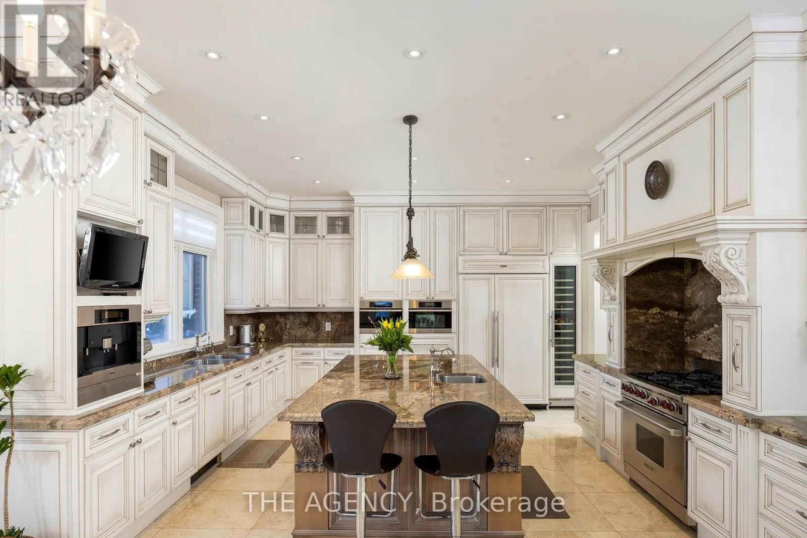 Bayview / Post rd. Client RemarksNestled in Toronto's prestigious Bridle Path community, this exquisite detached two-story home offers over 8,000 sq. ft. of refined living space. Designed for luxury and comfort, this gated estate boasts a circular driveway, double-door garage for 3 cars, and parking for 10 more. Sophisticated design meets functionality with wainscoting panels, coffered ceilings, and heated marble floors. The living, dining, and family rooms provide expansive entertaining spaces, while the family room features walnut coffered ceiling and a cozy fireplace. The chefs kitchen is a culinary masterpiece with granite counters, a Sub-Zero paneled fridge and freezer, Wolf 6-burner stove, built-in Miele coffee machine, wine chiller, and butlers pantry. A private office completes this level. The upper floor, illuminated by a stunning dome-patterned skylight, features 4 bedrooms with vaulted ceilings, walk-in closets, and luxurious ensuites. The primary suite boasts marble heated floors, a steam shower, air jet tub, and a private linen closet. A second-level laundry room with premium appliances adds convenience. The lower level is a retreat with a nanny suite, heated floors, a wet bar, sauna, gym, and recreation area with a fireplace and walk-out to a professionally landscaped 288-ft-deep backyard. An elevator connects all levels. This iconic estate blends timeless sophistication with modern amenities in one of Toronto's most sought-after neighbourhoods. (id:27476)