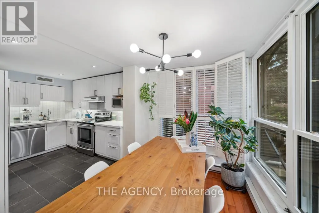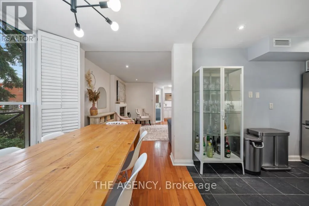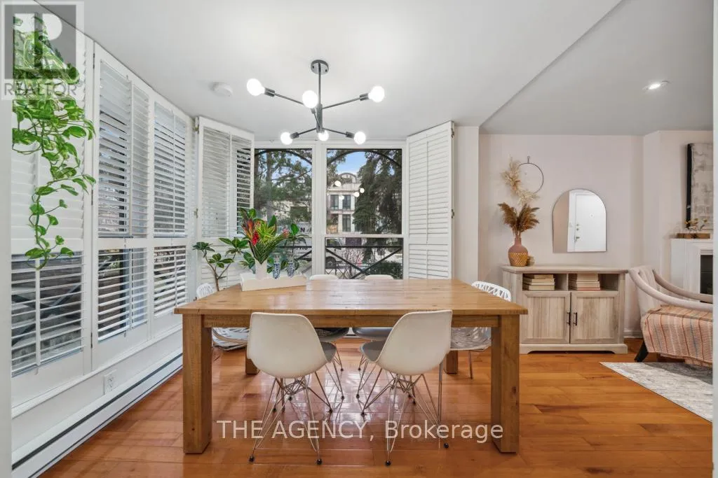 Cross Streets: Avenue Rd, St. Clair Ave W. ** Directions: North of Avenue Rd on St. Clair, east on Heath St W. Elegance at Deer Park! Welcome to 105 Heath St W, an exclusive boutique condo designed by Joe Brennan, offering just 11 unique units on a sprawling 0.4-acre lot in the prestigious Yonge-St. Clair neighborhood. This building seamlessly combines peaceful living with urban convenience; the lushly landscaped communal garden & the wide, stately concrete stairs leading to a private entrance set the tone for its timeless architecture. Ideal for smart-sizers or those seeking understated luxury, this townhome-style, 2-story suite spans 1,125 sqft, with an additional 625 sqft (280 sqft usable area) private patio, featuring a walk-up & gated entry to the street, ideal for indoor-outdoor living. Inside, the inviting living space features a wood fireplace, hardwood floors, a den nook, and a sunlit dining area. The spacious kitchen comes with full-size S/S appliances, brand-new quartz countertops, & tasteful backsplash tiles. An updated 4pc bathroom completes the main level. On the lower level, two spacious bedrooms provide flexibility and comfort. One fits a king bed, has a deep closet, and offers a second entrance. The other, currently a TV/family room, has a walkout to the patio and includes ample storage, laundry closet, and a fully renovated ensuite with a double-sink vanity. Additional interior features include California shutters, pot lights, and smooth ceilings throughout, as well as newly installed patio door & windows. Relax or entertain on the private patio, BBQ, dine al fresco, or unwind in the fenced-in garden. On colder days, light a fire and settle into the warmth. Do not miss this sophisticated pied-a-terre or alternative to cookie-cutter condos. Book a viewing & experience the difference! Located just minutes from the Yonge-St. Clair subway station, this prime address is steps from boutique shops, charming cafes, top-rated restaurants, & esteemed schools. This unit comes with one (1) parking spot & two (2) lockers, plus access to three (3) visitor parking spots. (id:27476)