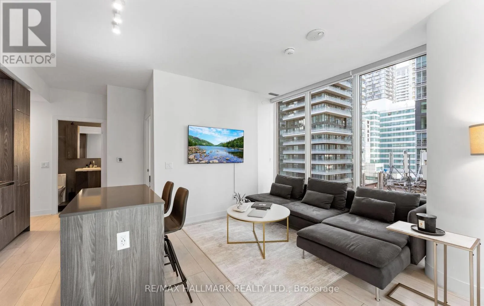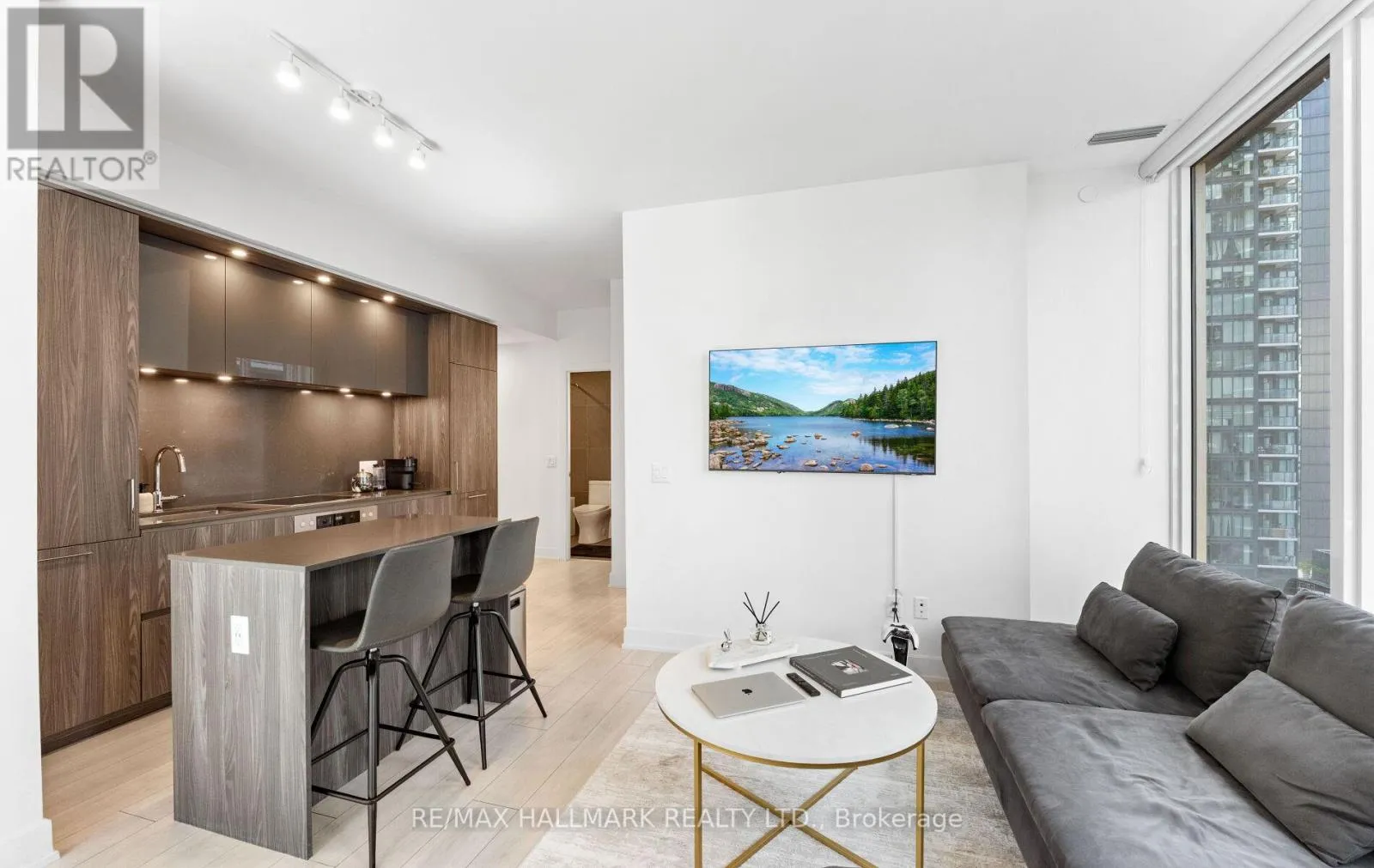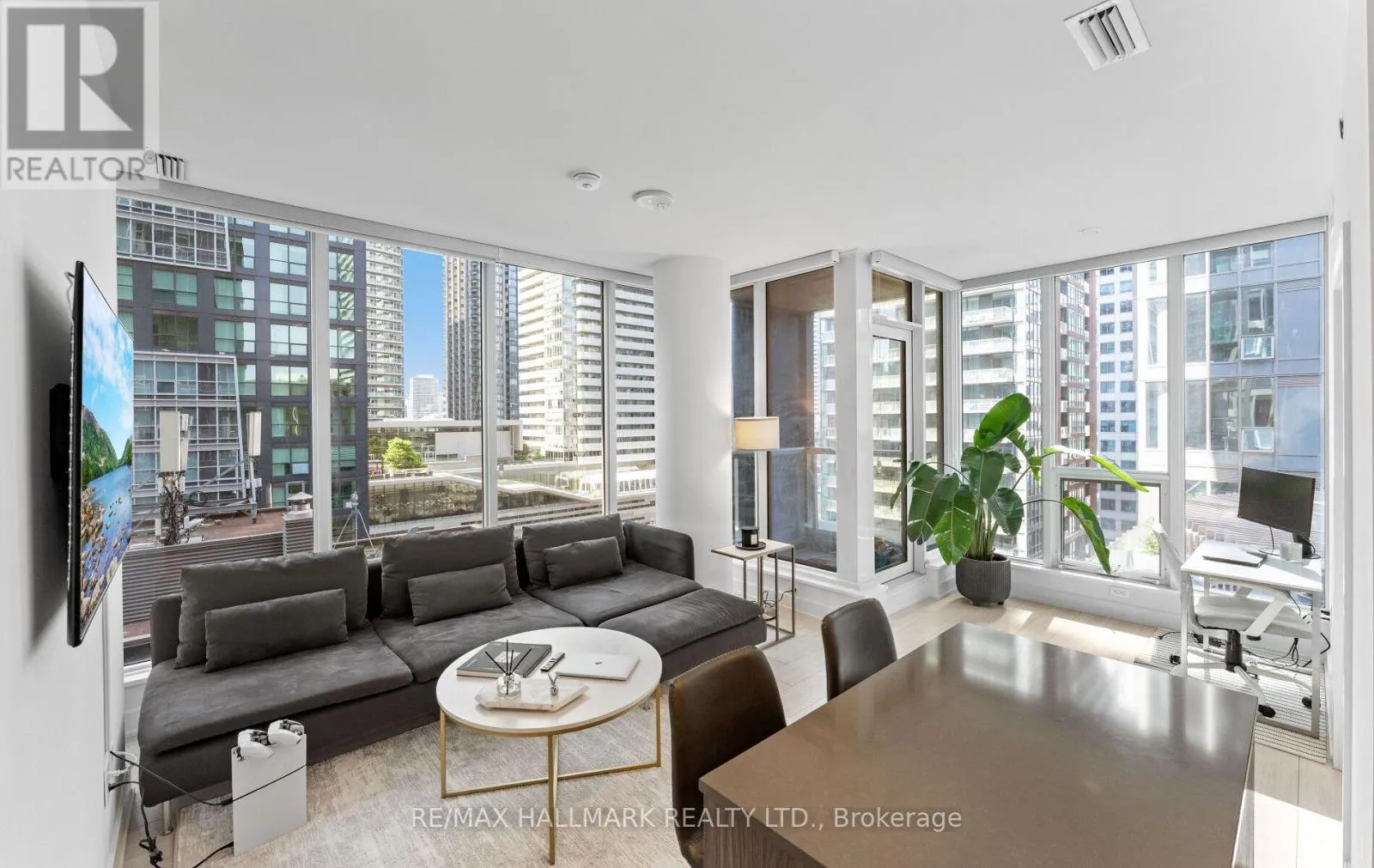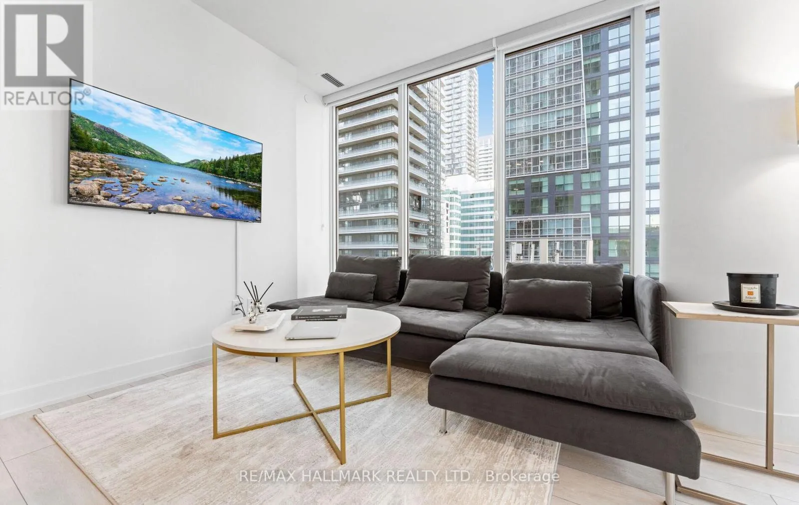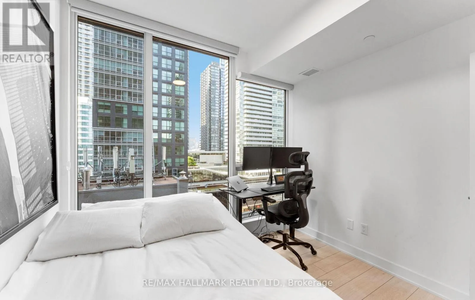 King St W & Blue Jays Way Welcome to the prestigious Nobu Residences, where world-class luxury meets urban sophistication in the heart of Torontos vibrant Entertainment District. This rare 2-bedroom + den, 2-bathroom corner suite offers an exceptional 756 sq. ft. of beautifully designed interior space, complemented by a 28 sq. ft. balcony with breathtaking city views. Soaring 9-foot ceilings, floor-to-ceiling windows, and rich laminate flooring create a light-filled, expansive atmosphere, while the open-concept layout seamlessly connects living, dining, and entertaining spaces. The gourmet kitchen is a chefs dream, complete with integrated Miele appliances, quartz countertops, and a matching backsplash. The spa-inspired bathrooms are adorned with elegant finishes, and the primary suite features a designer ensuite and custom closet organizers. The versatile den offers endless possibilities as a home office, guest room, or reading lounge. Residents enjoy access to five-star amenities including a state-of-the-art fitness centre, hot tub, sauna, yoga studio, private dining, screening room, and the exclusive Nobu Villa terrace. With the iconic NOBU restaurant on-site, and mere steps to the subway, PATH, CN Tower, Rogers Centre, and the Financial District, this is truly elevated urban living at its finest. Dont miss the opportunity to call this architectural masterpiece home. (id:27476)