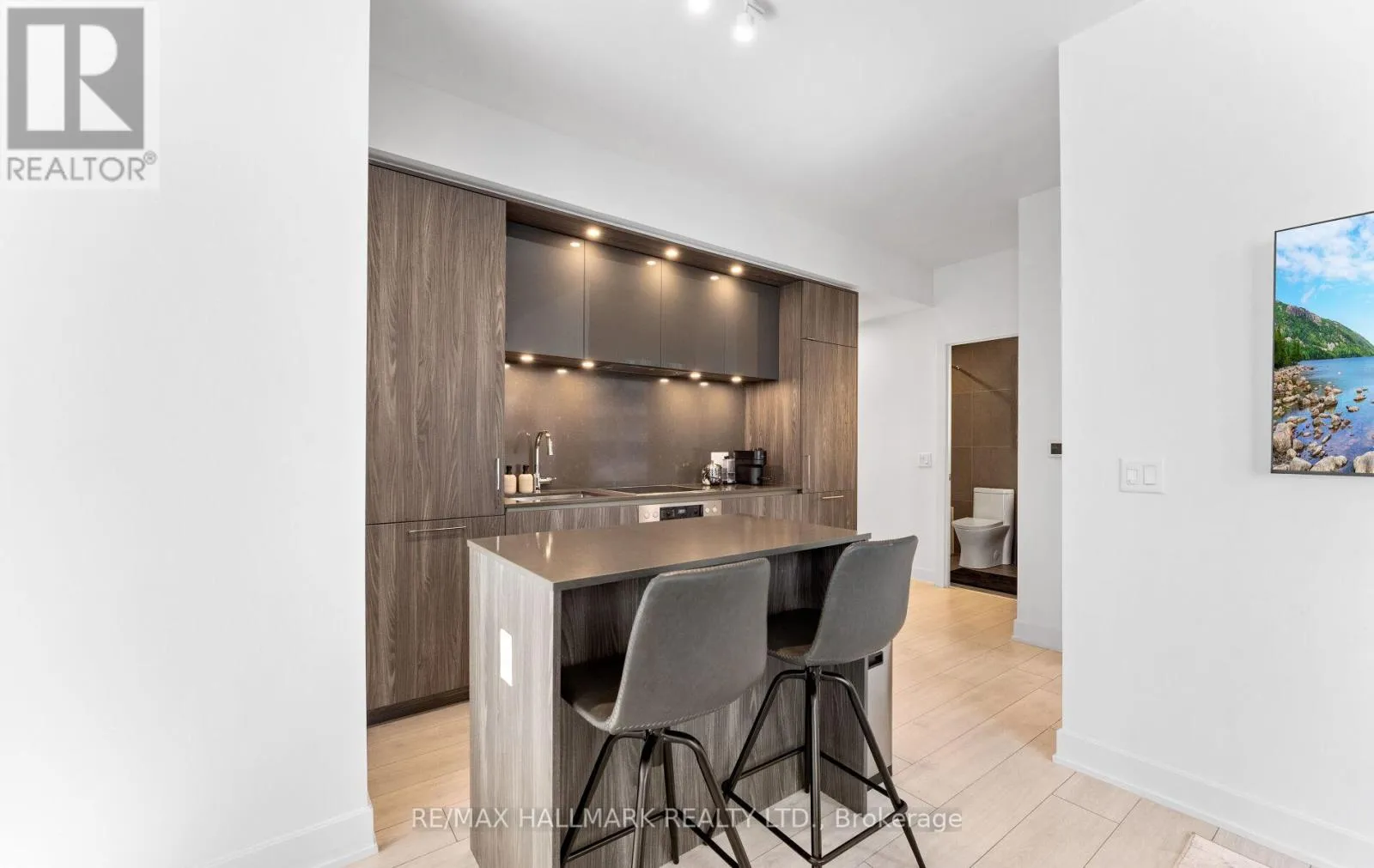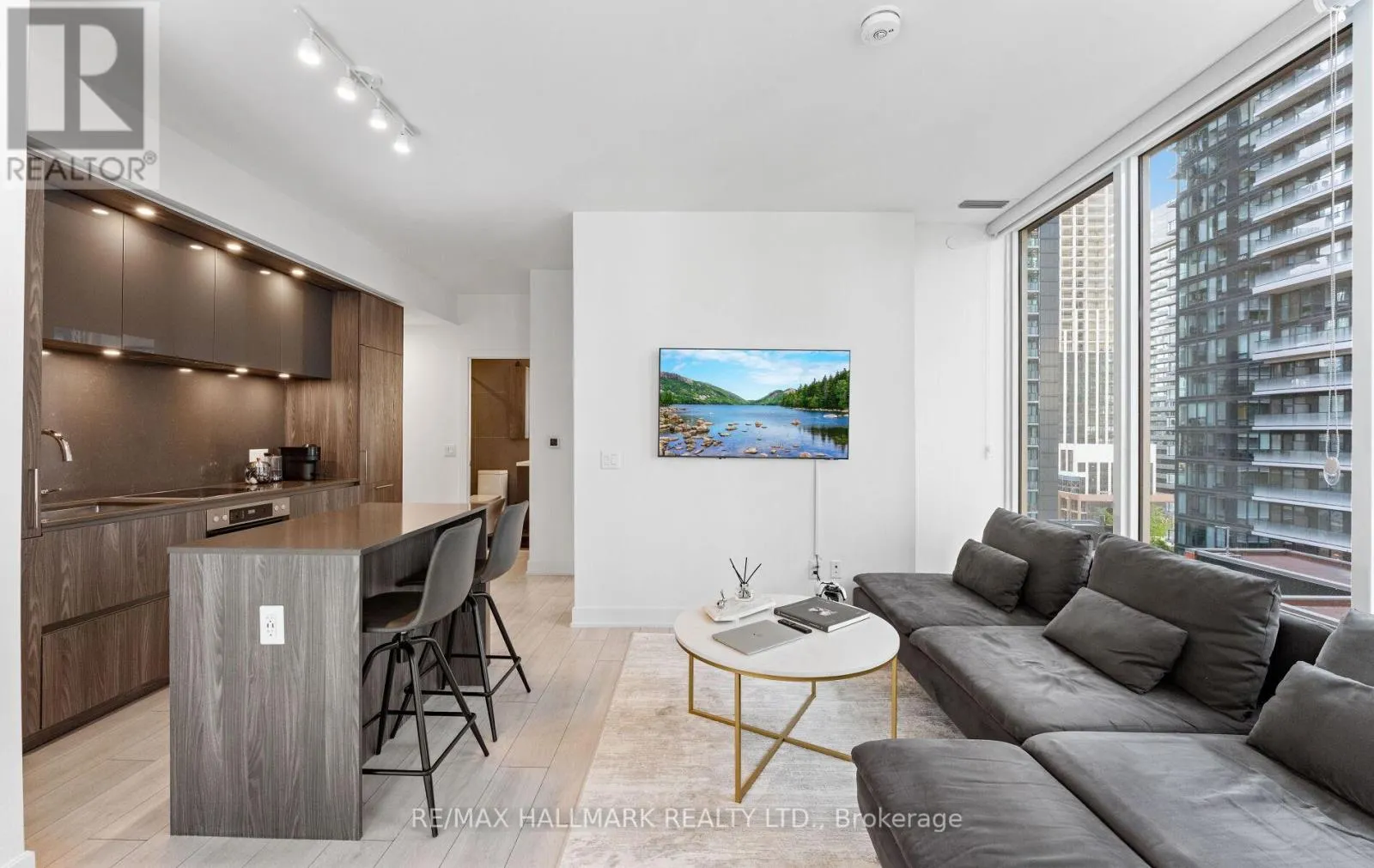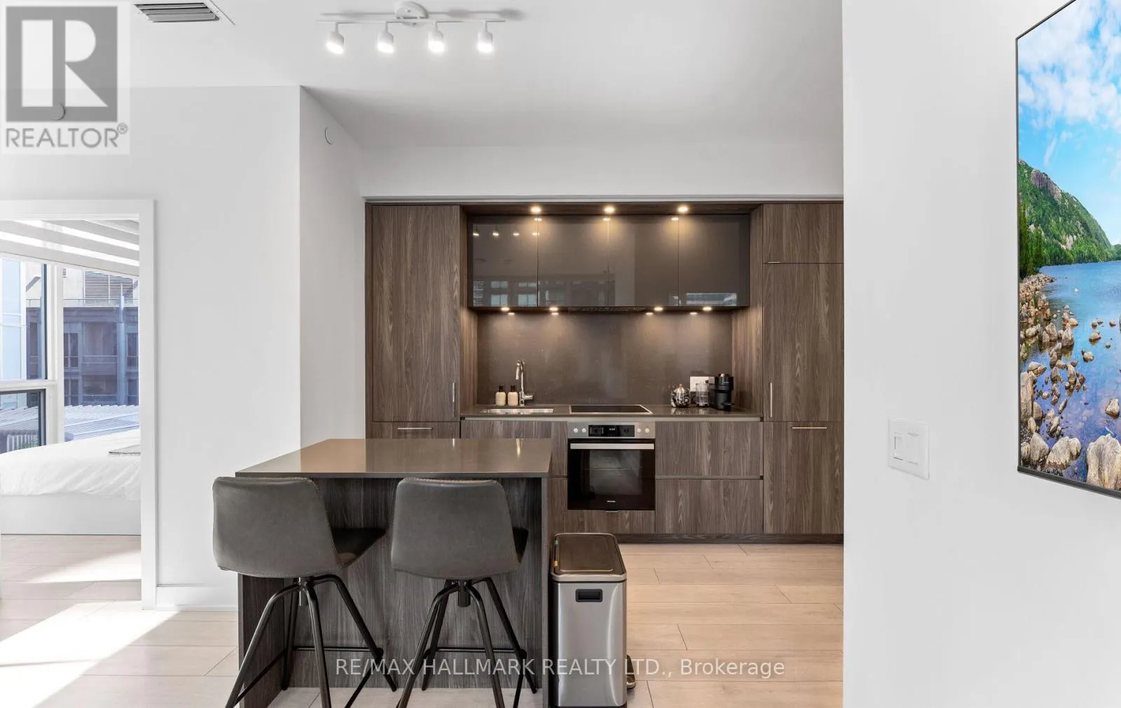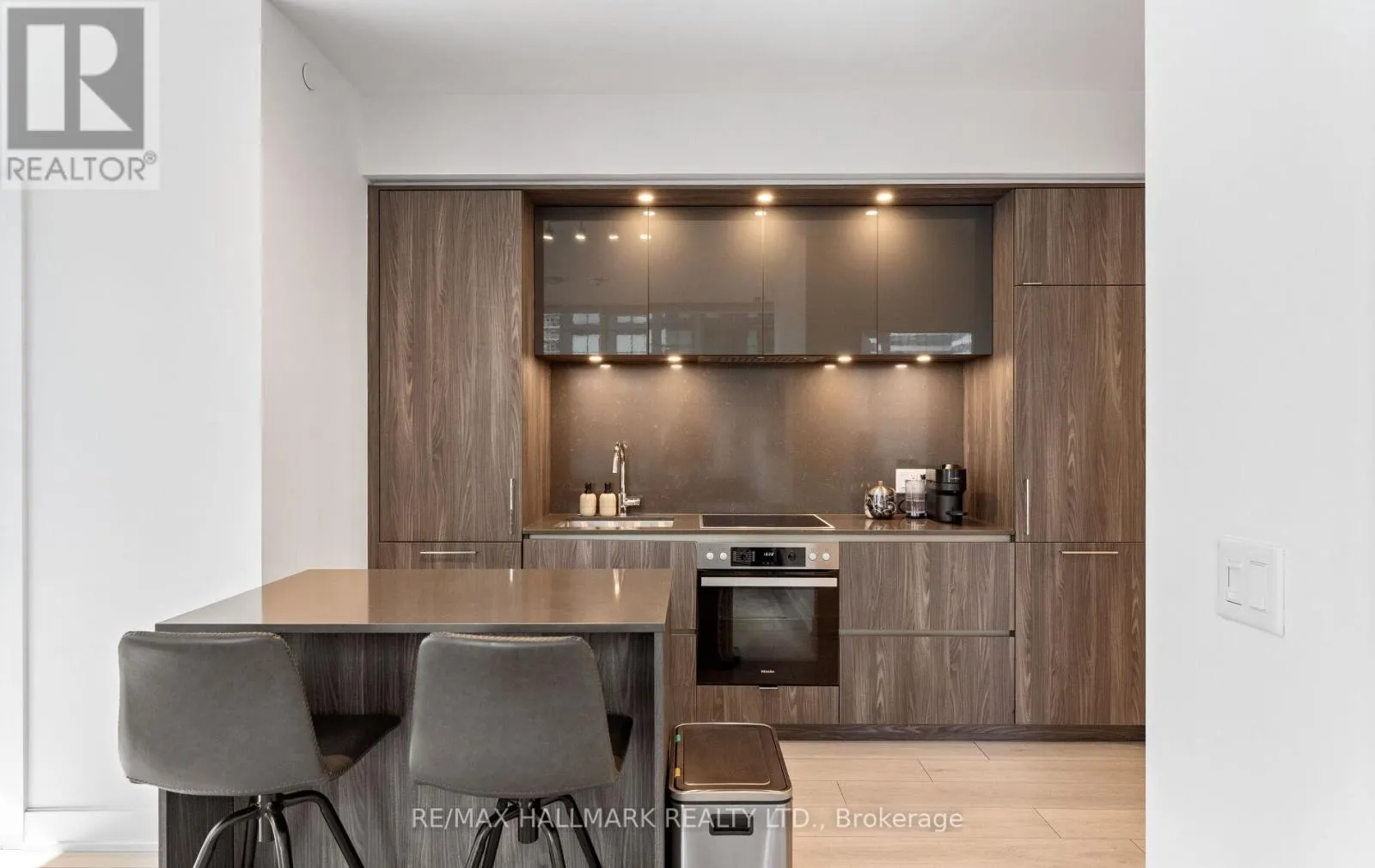 King St W & Blue Jays Way Welcome to the prestigious Nobu Residences, where world-class luxury meets urban sophistication in the heart of Torontos vibrant Entertainment District. This rare 2-bedroom + den, 2-bathroom corner suite offers an exceptional 756 sq. ft. of beautifully designed interior space, complemented by a 28 sq. ft. balcony with breathtaking city views. Soaring 9-foot ceilings, floor-to-ceiling windows, and rich laminate flooring create a light-filled, expansive atmosphere, while the open-concept layout seamlessly connects living, dining, and entertaining spaces. The gourmet kitchen is a chefs dream, complete with integrated Miele appliances, quartz countertops, and a matching backsplash. The spa-inspired bathrooms are adorned with elegant finishes, and the primary suite features a designer ensuite and custom closet organizers. The versatile den offers endless possibilities as a home office, guest room, or reading lounge. Residents enjoy access to five-star amenities including a state-of-the-art fitness centre, hot tub, sauna, yoga studio, private dining, screening room, and the exclusive Nobu Villa terrace. With the iconic NOBU restaurant on-site, and mere steps to the subway, PATH, CN Tower, Rogers Centre, and the Financial District, this is truly elevated urban living at its finest. Dont miss the opportunity to call this architectural masterpiece home. (id:27476)