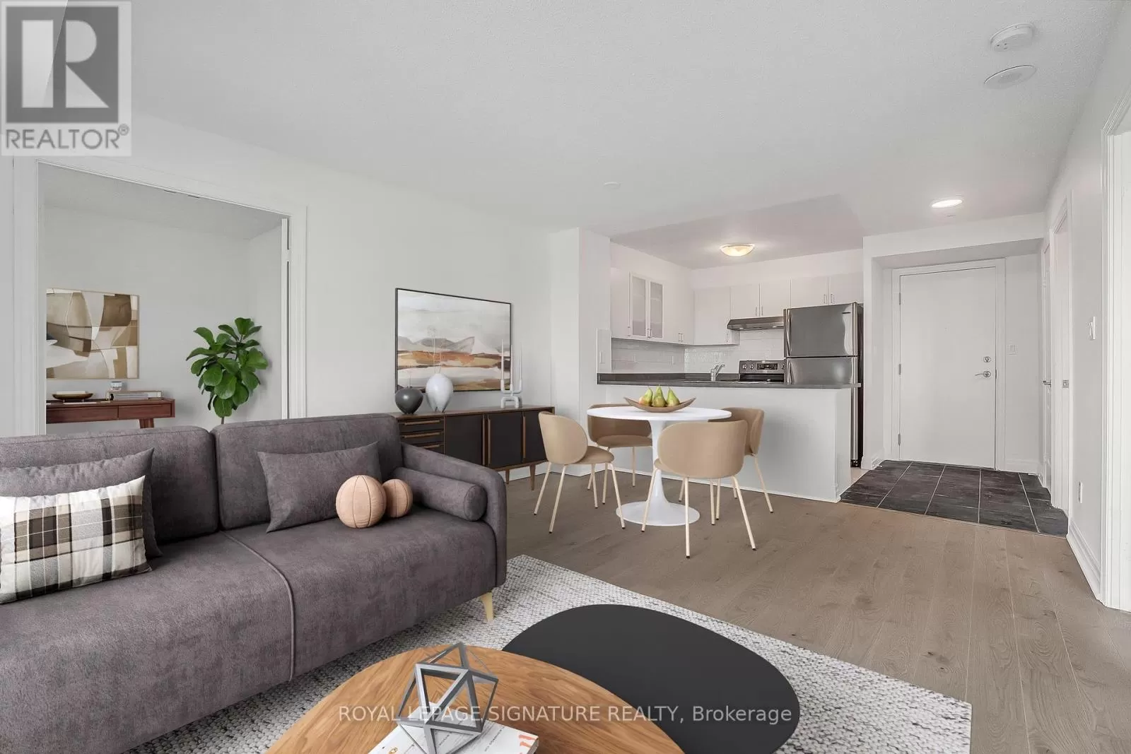 Cross Streets: Yonge/Sheppard. ** Directions: North of Sheppard/East of Yonge. Stylish & Spacious 1+1 Bedroom Condo in Prime North York Ideal for First-Time Buyers or Investors! Freshly updated in 2025 with new engineered hardwood flooring & freshley painted, this bright & modern condo offers the perfect blend of comfort, functionality, & location. The open-concept living and dining area features west-facing views, while the kitchen is outfitted with stainless steel appliances, a breakfast bar, and ceramic finishes. The enclosed den with double doors & a walk-out to a private balcony offers the flexibility of a second bedroom or a dedicated home office. Enjoy premium amenities such as 24-hour concierge, gym, indoor pool, sauna, guest suites, party room, & visitor parking. With a Walk Score of 95, you're steps from the TTC, subway, parks, shops, restaurants, arts & community centres, top-rated schools, & major retailers like Whole Foods & Loblaws. Maintenance fees include heat, water, A/C, parking, & building insurance. Also included is underground parking & a locker. Move-in ready & available for immediate possession. This is a smart buy in one of Torontos most connected & desirable neighbourhoods. (id:27476)