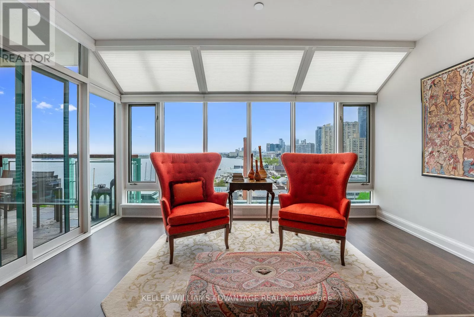 Cross Streets: Queens Quay W & York St. ** Directions: Siri, please take me to 211 Queens Quay West in Toronto!. Welcome to an extraordinary residence where sky, city, and lake converge in a breathtaking panorama. Spanning over 4,000 sq ft across two seamlessly combined suites, this waterfront home redefines luxury living in one of Toronto's most exclusive boutique buildings on Queens Quay. Every room is a front-row seat to awe-inspiring southwest views. Watch the sunrise shimmer over the lake, the sun dip behind the skyline, and yachts glide across the harbour from your soaring floor-to-ceiling windows on one of two private terraces. This is a home that doesn't just offer views, it offers presence. Meticulously reimagined with bespoke finishes and a timeless aesthetic, this four-bedroom + home gym, five-bathroom sanctuary features a custom Scavolini kitchen adorned with Italian ceramic countertops, wide-plank hardwood floors, and spa-inspired bathrooms. The sense of scale and light is unparalleled. Discreet luxury meets five-star convenience with 24-hour concierge, valet service, and a curated suite of amenities. Whether entertaining on a grand scale or enjoying quiet, sunlit mornings, this residence is as versatile as it is striking. Steps from the island airport, the financial core, and the best of downtown, yet utterly removed from the noise. This is more than a home. Its a statement. A rare and remarkable offering that only few will ever call their own. (id:27476)