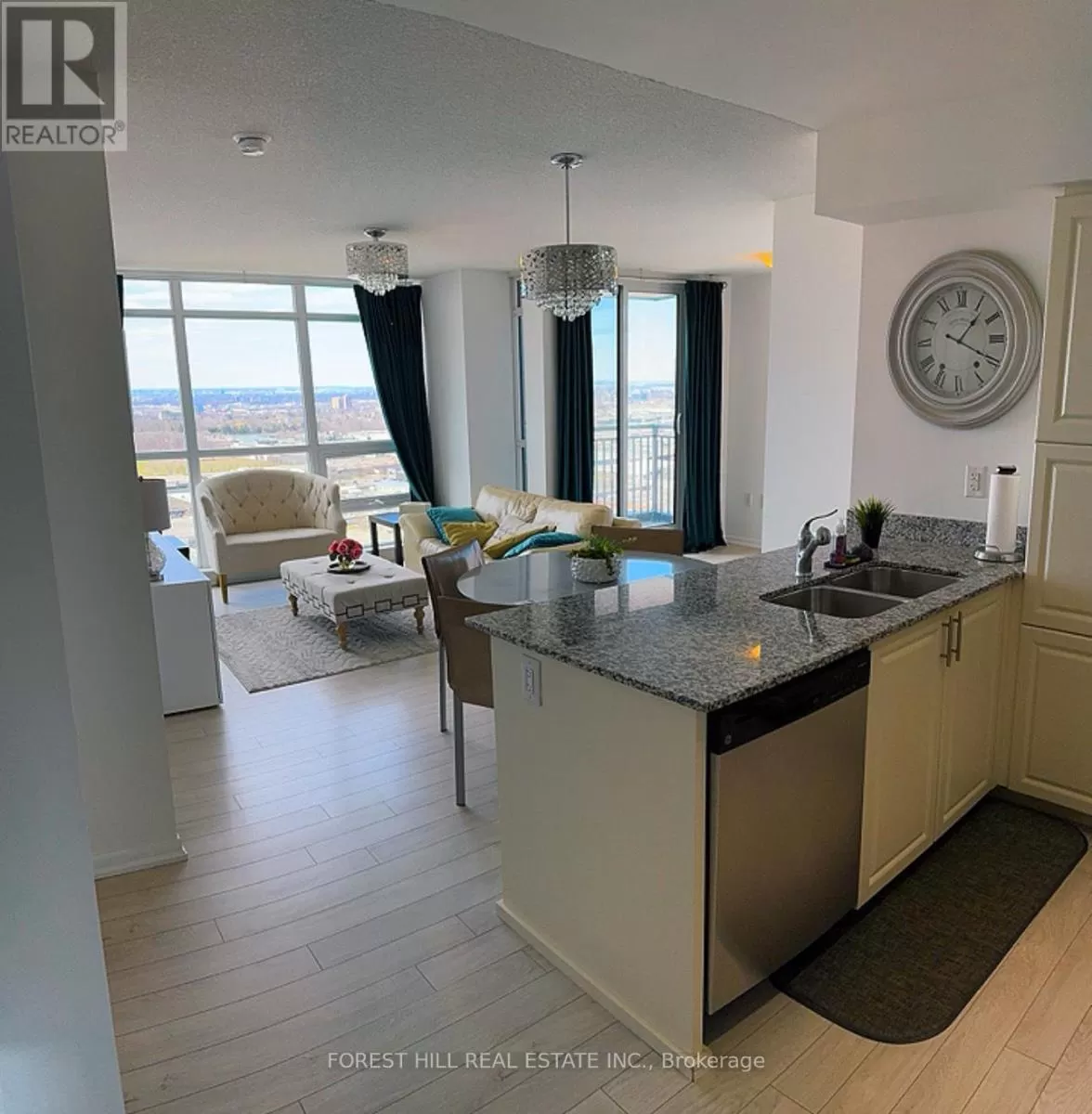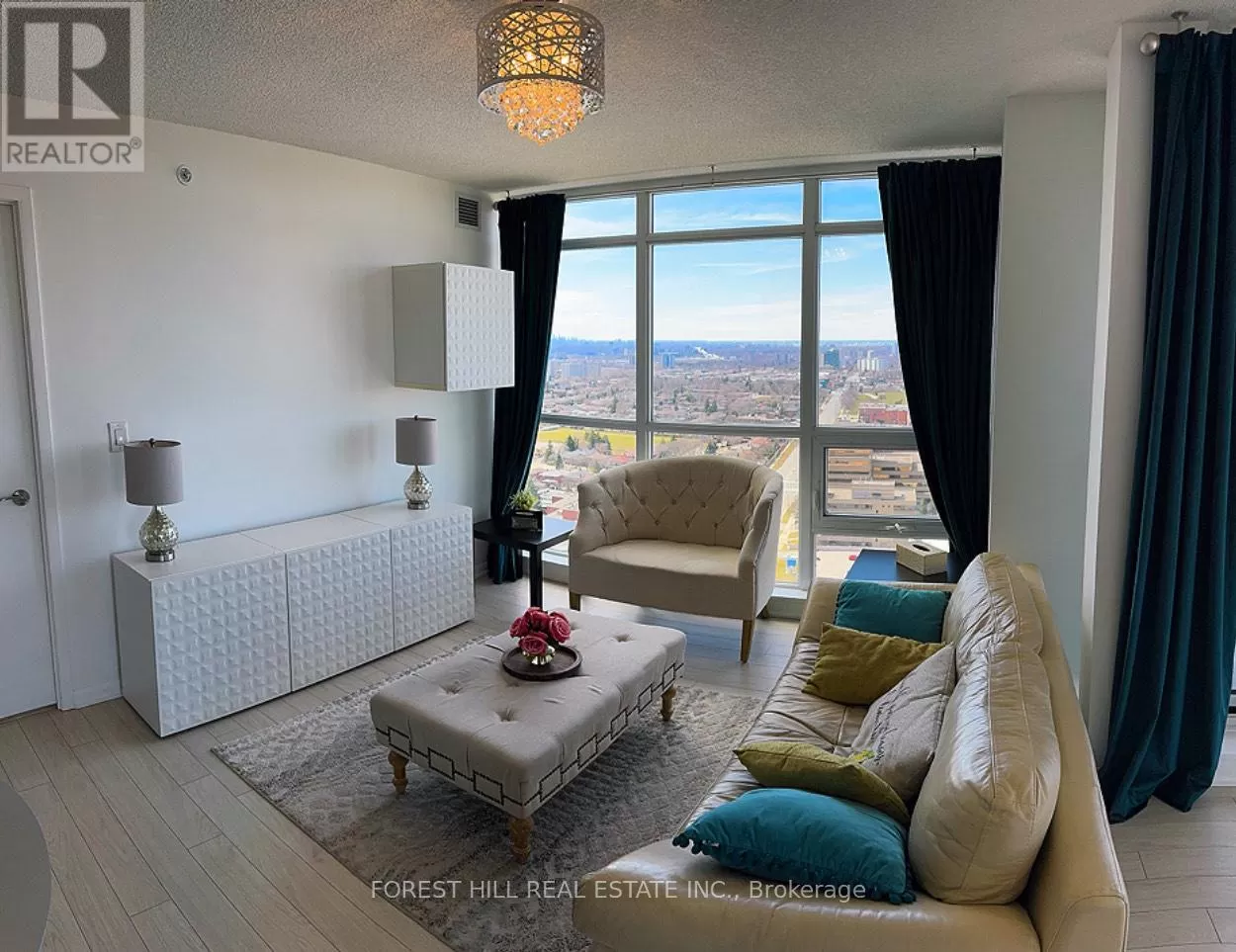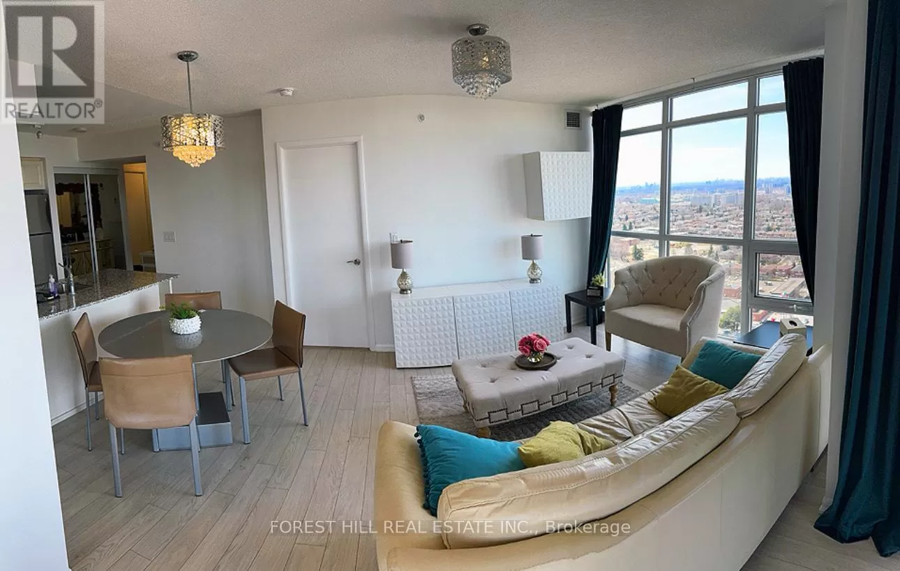 Dufferin And Lawrence A Stylish Corner Unit with Breathtaking Views. This stunning Maranello home is in the highly sought-after Treviso 2. With almost 800 sq. ft. of beautifully designed space, boasts 2-bed + den, 2-bath in a perfect blend of modern elegance and city convenience. Floor-to-ceiling windows flood this home with natural light, offering spectacular panoramic views from every room. The open-concept layout seamlessly connects the living, dining, and kitchen area's ideal for both entertaining and everyday living. Sleek laminate flooring throughout adds a touch of contemporary sophistication. Bright & Spacious Living Area. Unwind while soaking in the breathtaking cityscape. Modern Kitchen Featuring designer cabinetry, premium appliances, and ample counter space for all your culinary adventures. Primary Retreat with expansive windows and a large closet for ultimate comfort. Second Bedroom, Perfect for guests, family, or a stylish home office. Versatile Den is ideal for a workspace, reading nook, or extra guest space tailor it to your lifestyle. Two Contemporary 4-Piece Bathrooms Designed with sleek finishes for maximum comfort. Enjoy the added convenience of a dedicated parking spot and a locker for extra storage. This Treviso corner unit offers an unbeatable combination of style, space, and city views. Whether you're looking for a luxurious home or a prime investment opportunity, this one is a must-see! Schedule your private tour today! (id:27476)