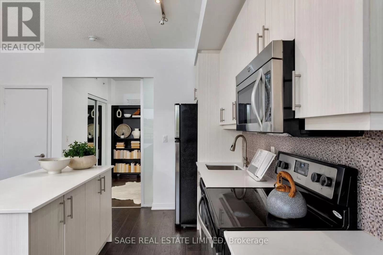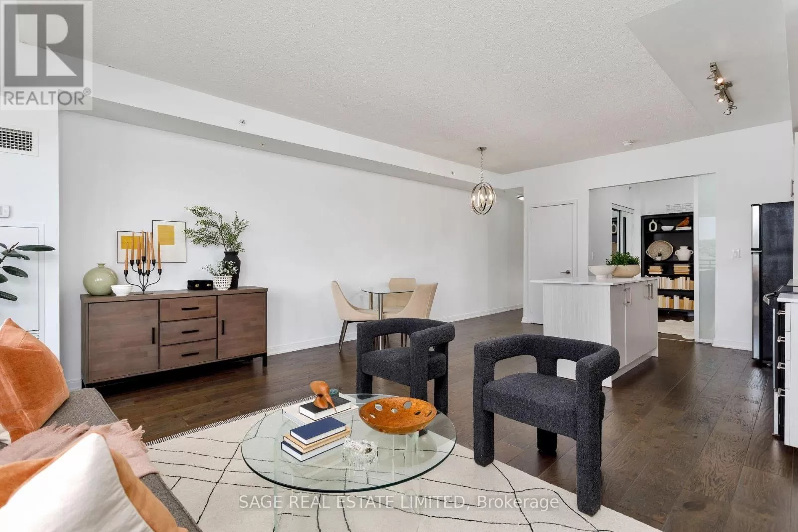The Queensway & Royal York Not Your Average Glass Box in the Sky! Light-Filled. Spacious. Exceptionally Livable.Welcome to 760 The Queensway, where smart design meets everyday comfort in this sun-drenched 2-bedroom, 2-bathroom suite. Far from the typical cookie-cutter condo, this home offers substance and space - with high ceilings, hardwood floors, and a thoughtfully designed layout that actually lives the way you do.The 2-bedroom floor plan provides flexibility and privacy, while the open-concept living area is filled with natural light and opens to a north-facing balcony - perfect for morning coffee or evening people-watching over the park and baseball diamond below.Details That Make a Difference: Inside, wide-plank engineered hardwood adds warmth and durability throughout. The primary bedroom is a true retreat - exceptionally large with floor-to-ceiling windows that flood the space with natural light, plus his-and-hers closets and a spacious 4-piece ensuite. Storage is abundant here, from generous closet space in both bedrooms to an owned locker conveniently located just 10 steps from your front door. And yes - there's owned parking, too.Ste directly across from a major grocery store, just minutes to transit, cafe, and local spots, this location is as practical as it is connected.Comfort, Character, and a layout that works - this is condo living with breathing room. (id:27476)