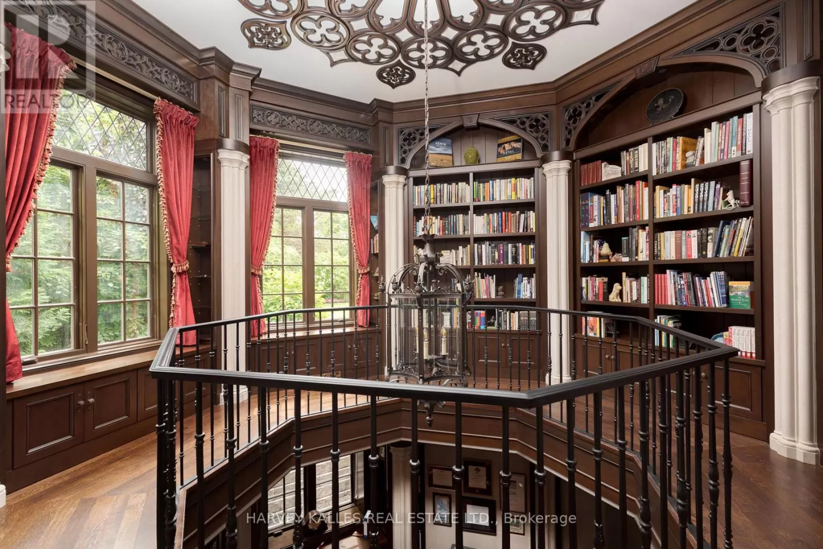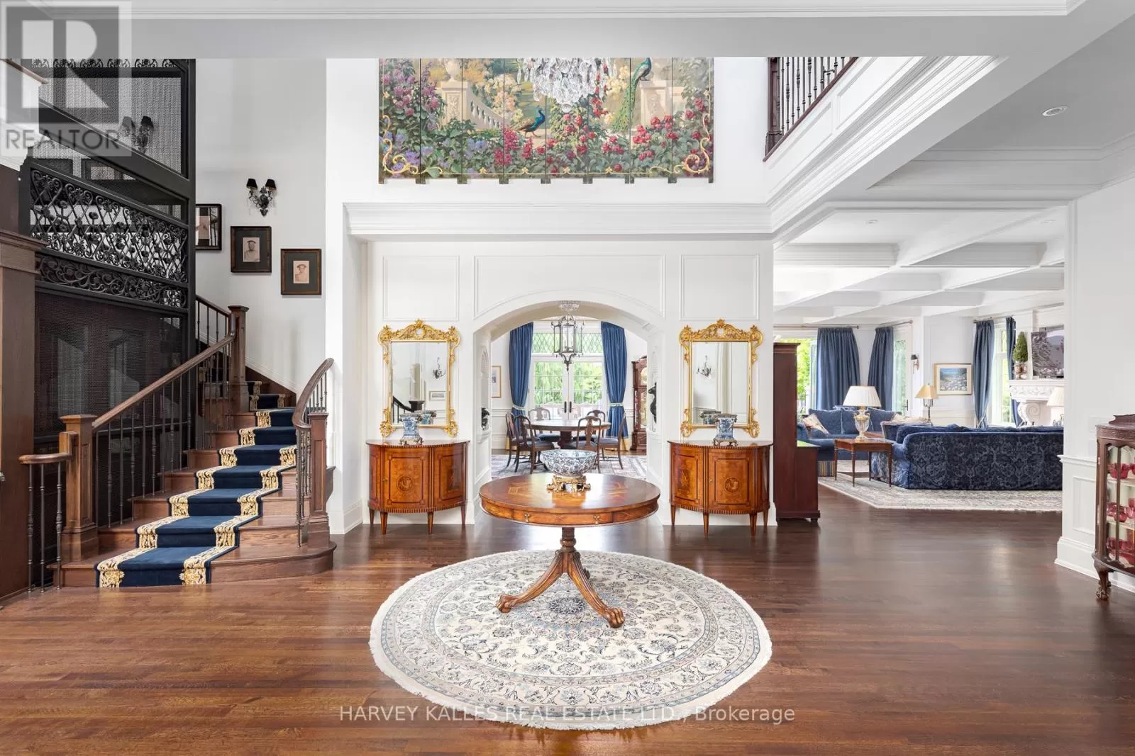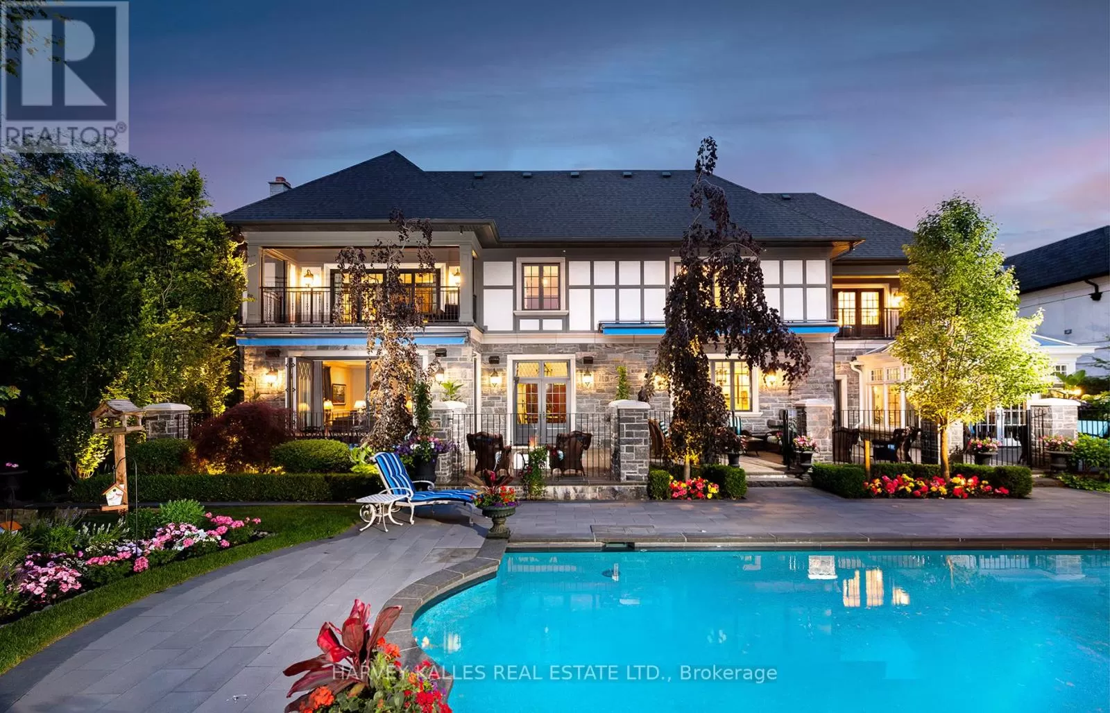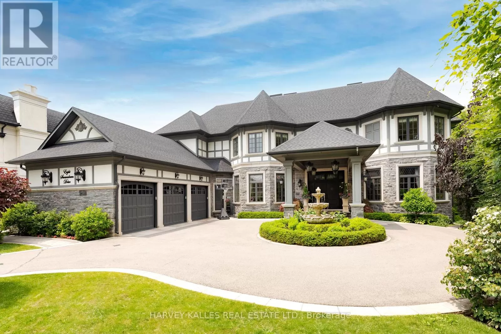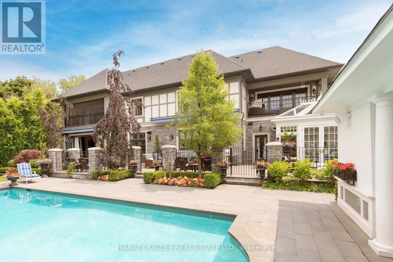 Cross Streets: York Mills and Leslie. ** Directions: N of York Mills and W of Leslie. From vision to fruition, 8 Swansdown Drive stands as a truly unique and masterfully built residence. Every element was carefully chosen with intention, resulting in a home that exudes sophistication, comfort, and timeless beauty.Set on a secluded, lush lot in one of Torontos most prestigious neighbourhoods, the property offers unmatched privacy. A grand circular heated driveway welcomes you and your guests with ease, while a three-car garage securely houses your most prized possessions. The striking freestanding waterfall and manicured gardens create an instant sense of calm and retreat from the city.Inside, the double solid-oak doors open to a breathtaking two-storey foyer with soaring ceilings and open sightlines to the stunning rear gardens. The elegant living room features a wood-burning fireplace and retractable Floridian-style glass doors that open to a stone patio for al fresco dining. The sun-drenched kitchen and breakfast room overlook the lush grounds, while the formal dining room connects via a butlers pantry.The garden solarium is perfect for nurturing plants year-round. Additional main floor highlights include a cheerful office, art studio with water access, and a one-of-a-kind octagonal library with handcrafted detailing, a ceiling medallion, and hidden staircase.The second floor is accessed by a sweeping staircase or a wrought-iron Parisian-style elevator. A skylit hallway leads to four generous bedrooms, each with its own ensuite. A separate two-piece bath, laundry room, and pet spa complete this level.The lower level offers an impressive array of spaces: gym, yoga room, sauna, rec room, large storage, study, soundproof music room, guest suite, and more.Outdoors, enjoy over a million dollars in landscaping, a chlorine pool, fire pit, two covered pavilions (one with bar and bath), and stone pathways weaving through a magical setting.A rare offering. Welcome home. (id:27476)